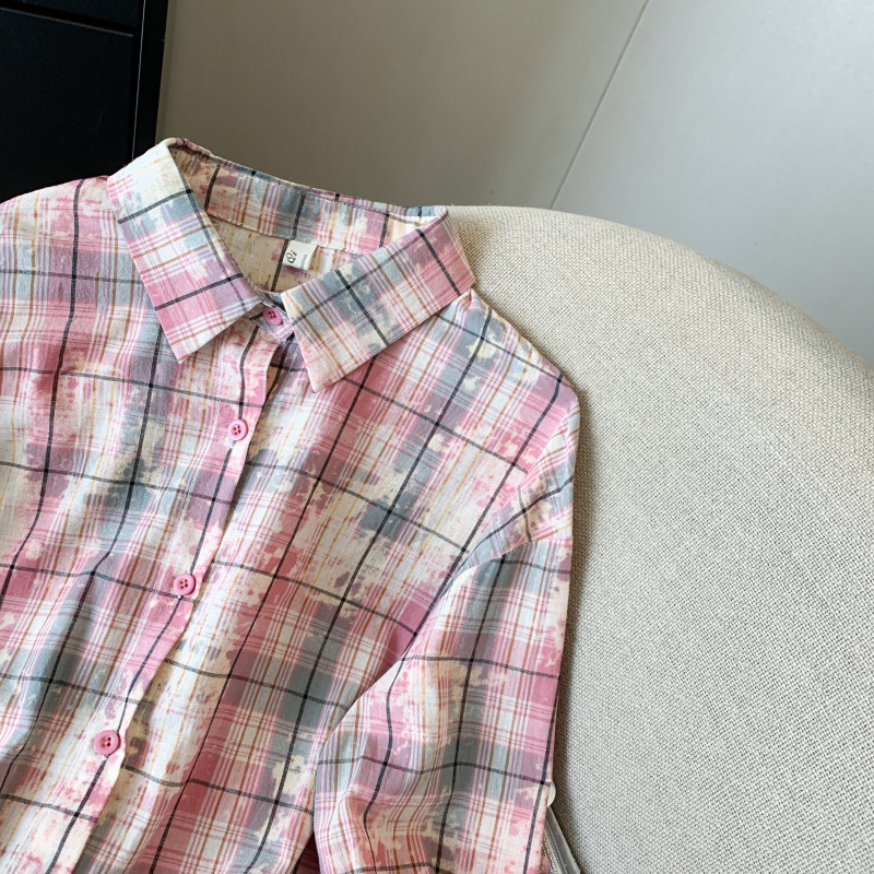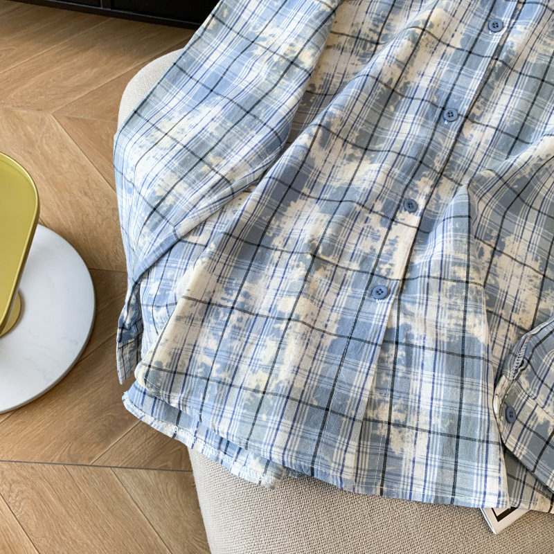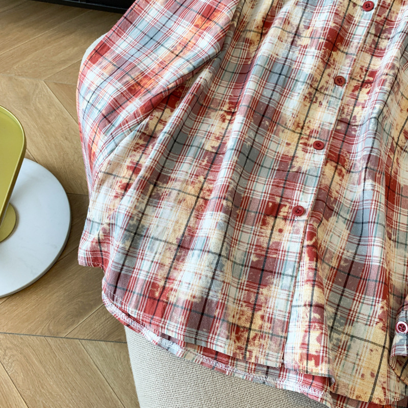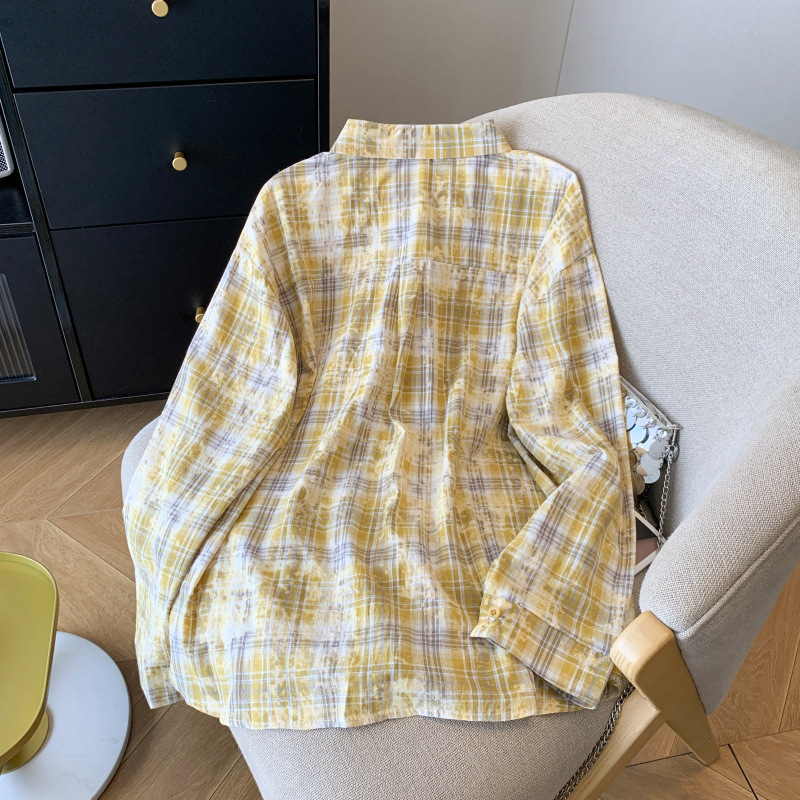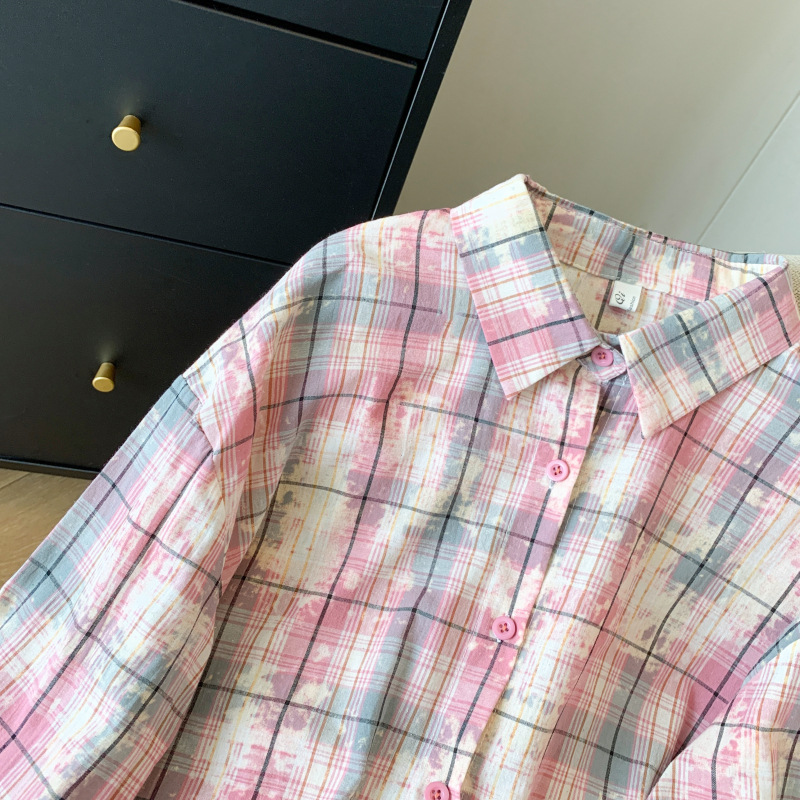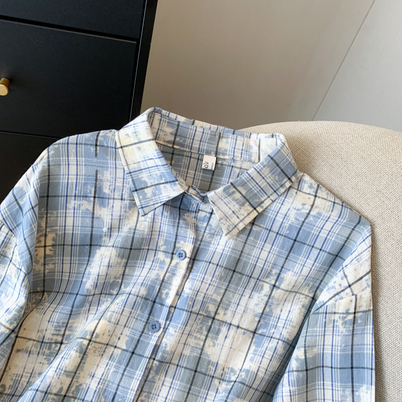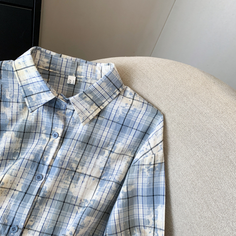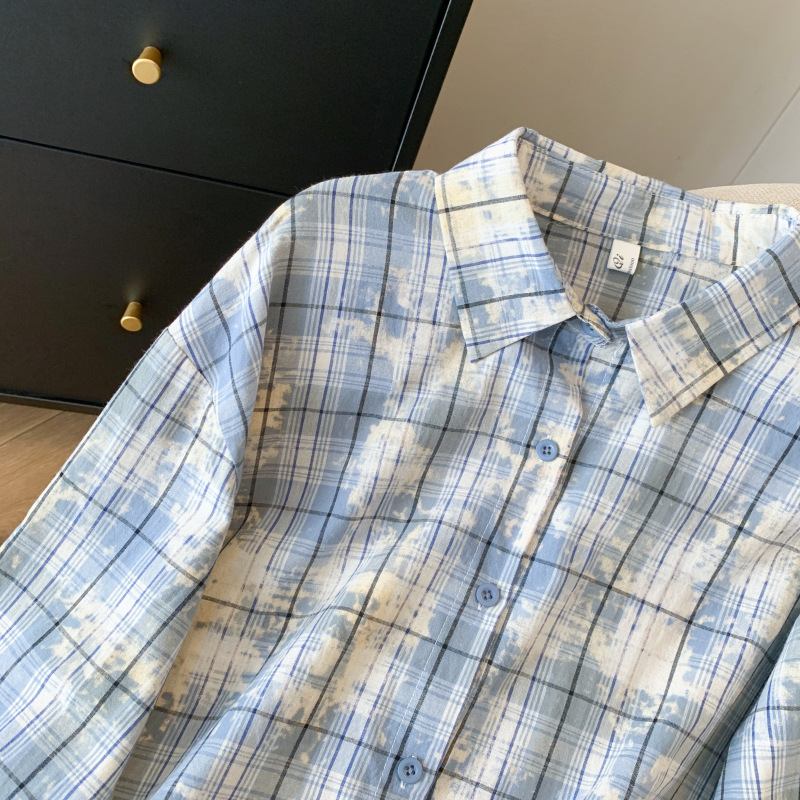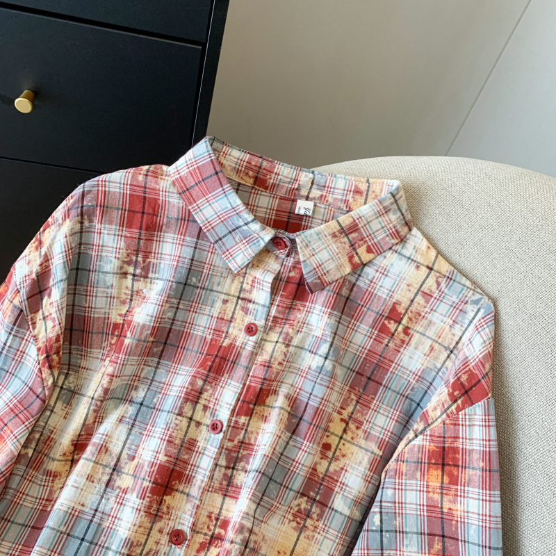 2025 봄 새로운 낙서 격자 무늬 셔츠 재킷 여성 디자인 센스 틈새 느슨한 긴팔 최고 패션 트렌드스토어 가기