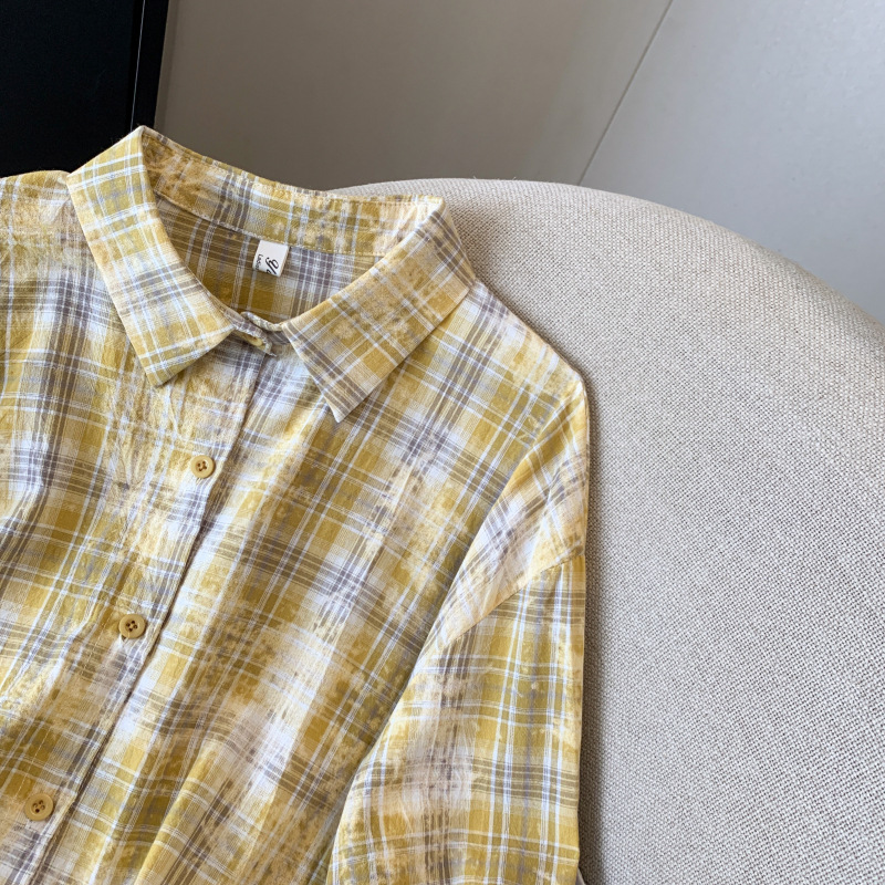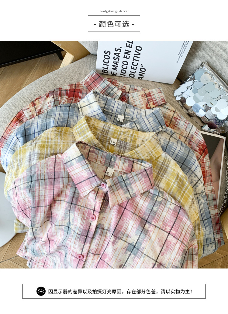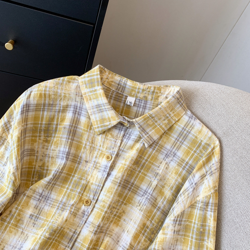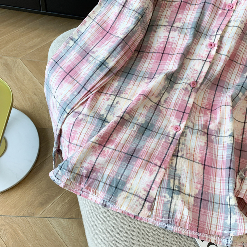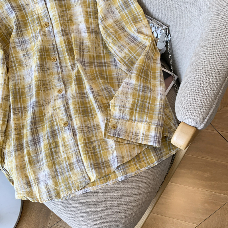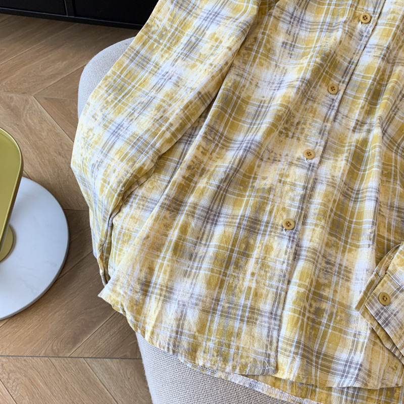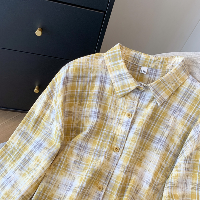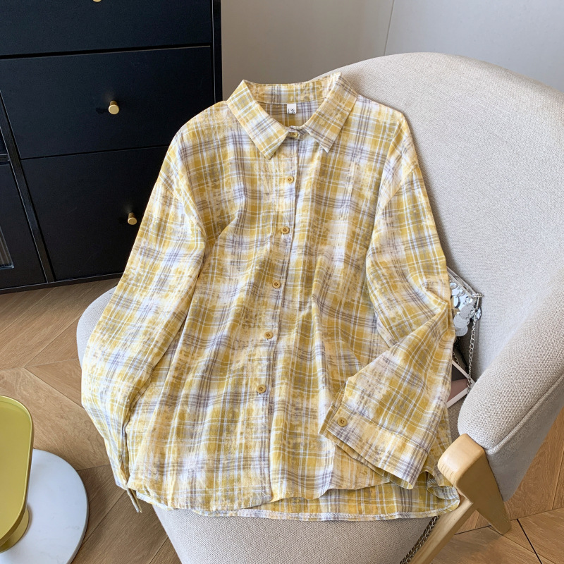 2025 봄 새로운 낙서 격자 무늬 셔츠 재킷 여성 디자인 센스 틈새 느슨한 긴팔 최고 패션 트렌드스토어 가기