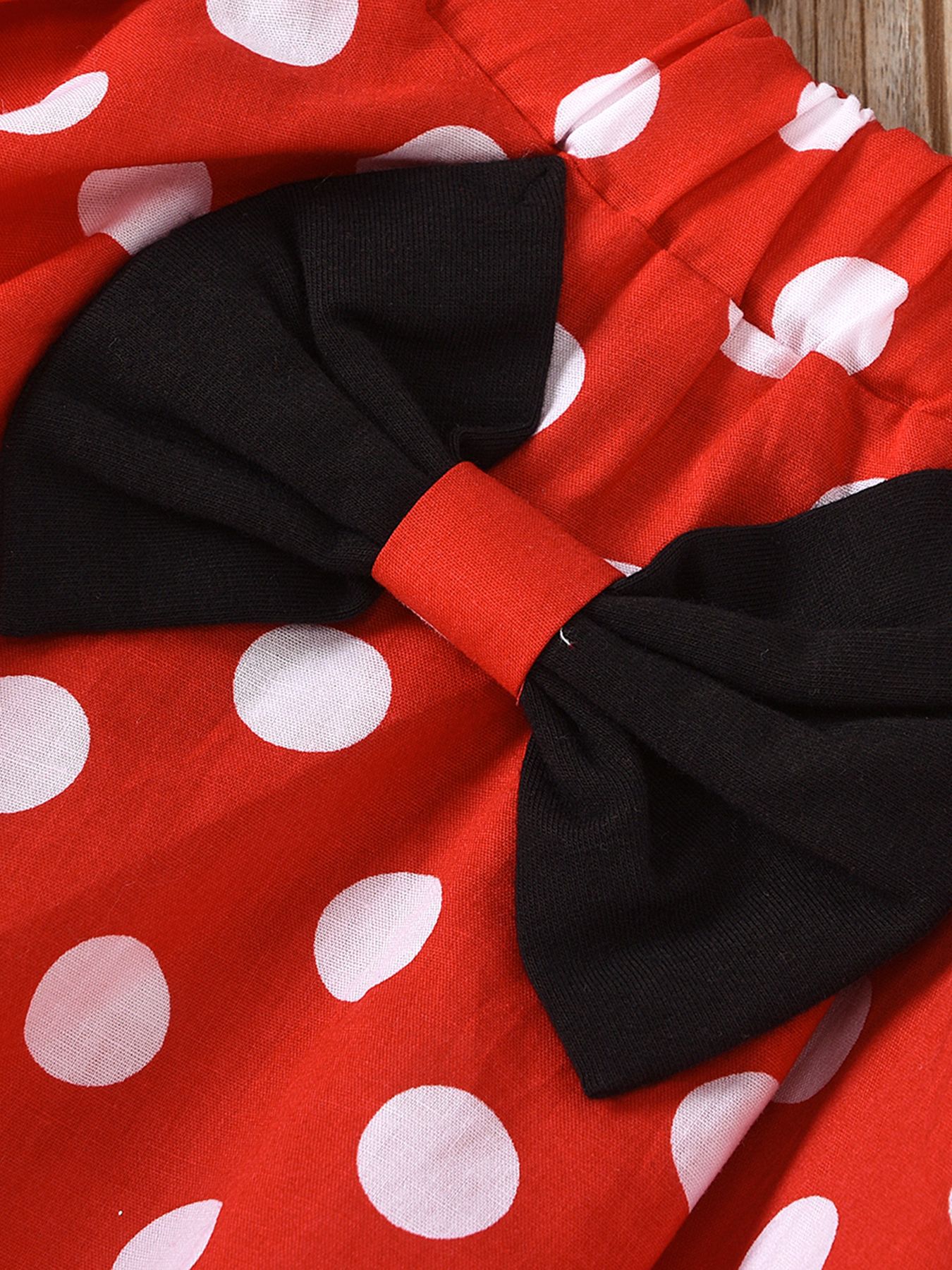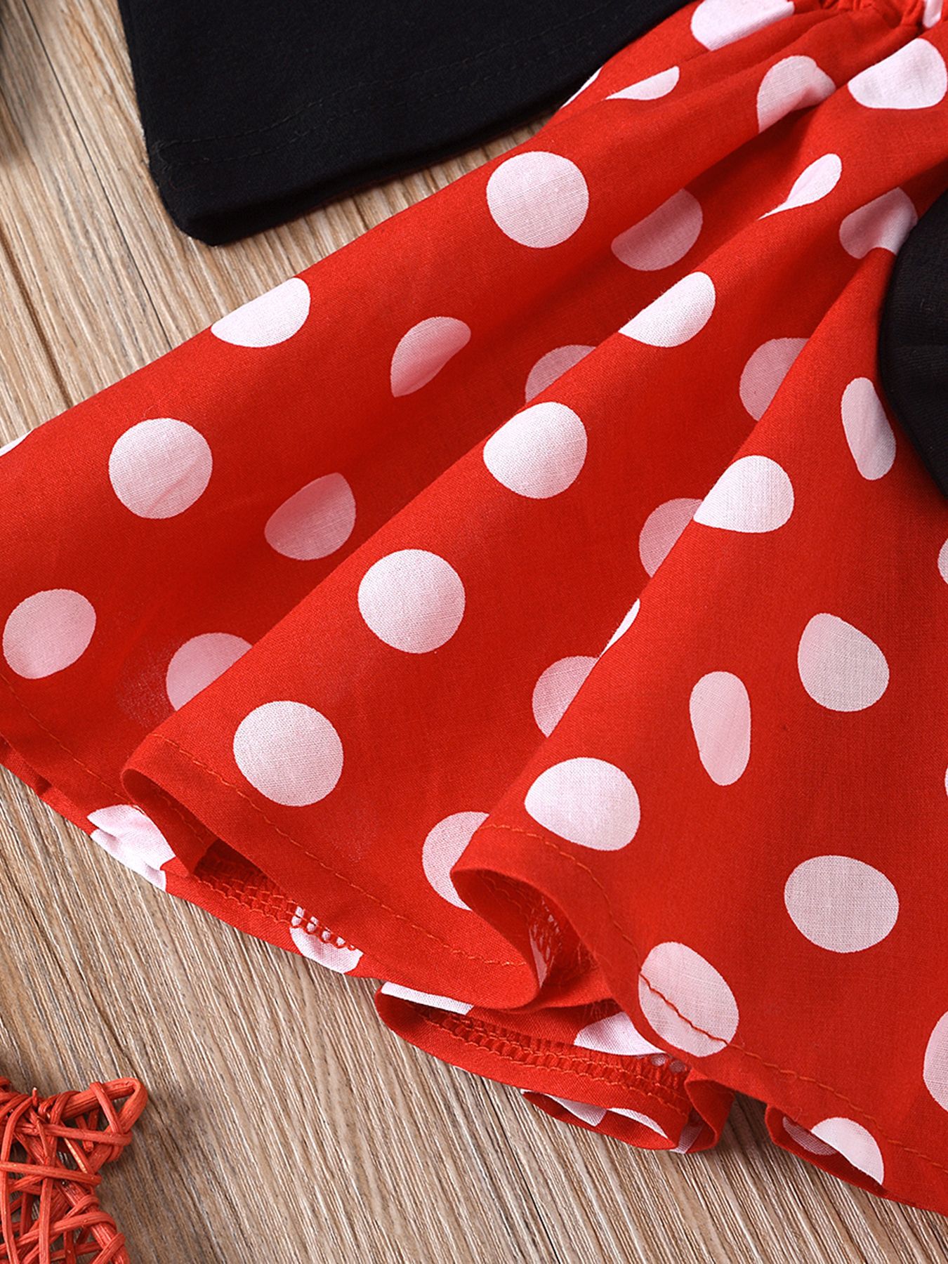 유럽과 미국 스타일의 국경 간 소녀 봄과 가을 폴카 도트 세트 3 피스 세트 귀여운 나비 헤어 밴드 폴카 도트 스트랩 스커트 세트스토어 가기