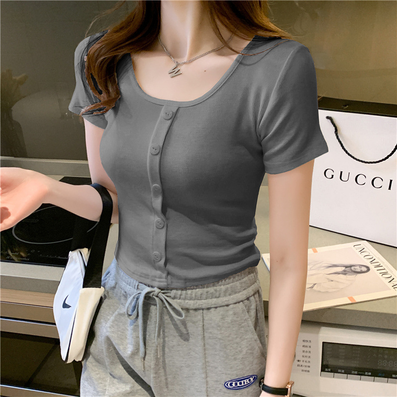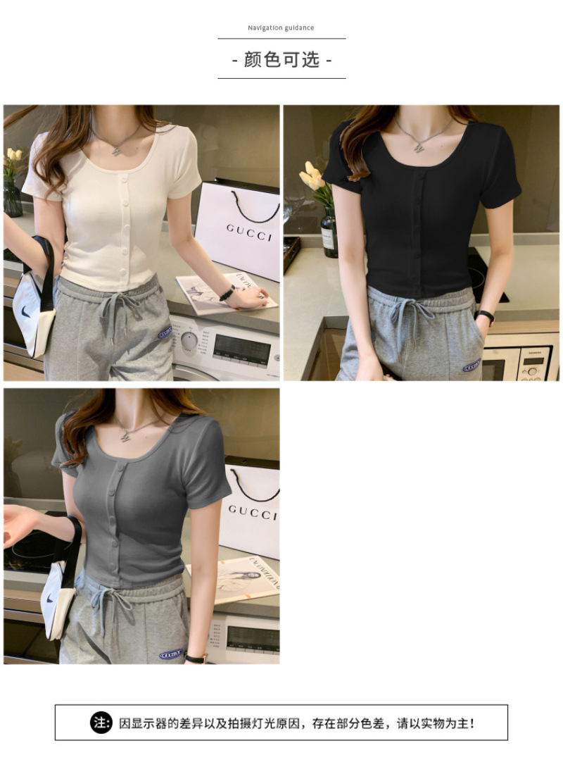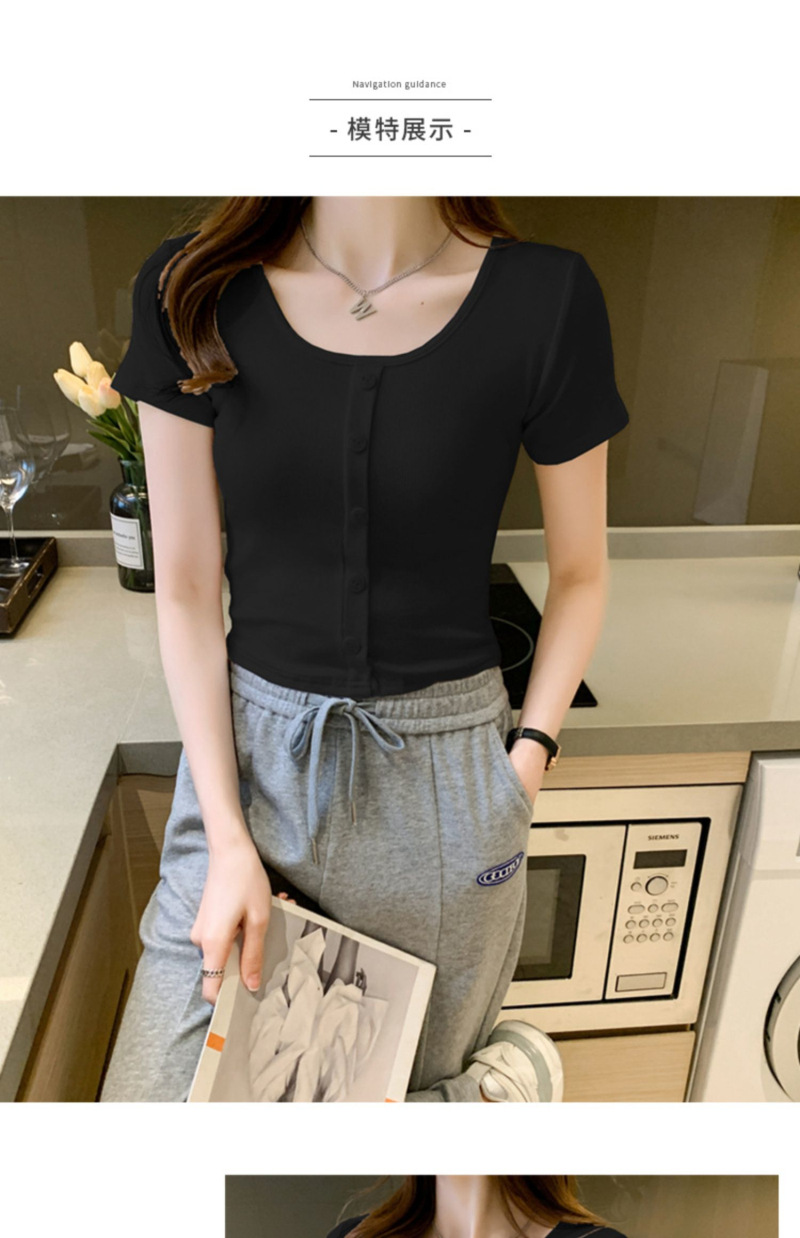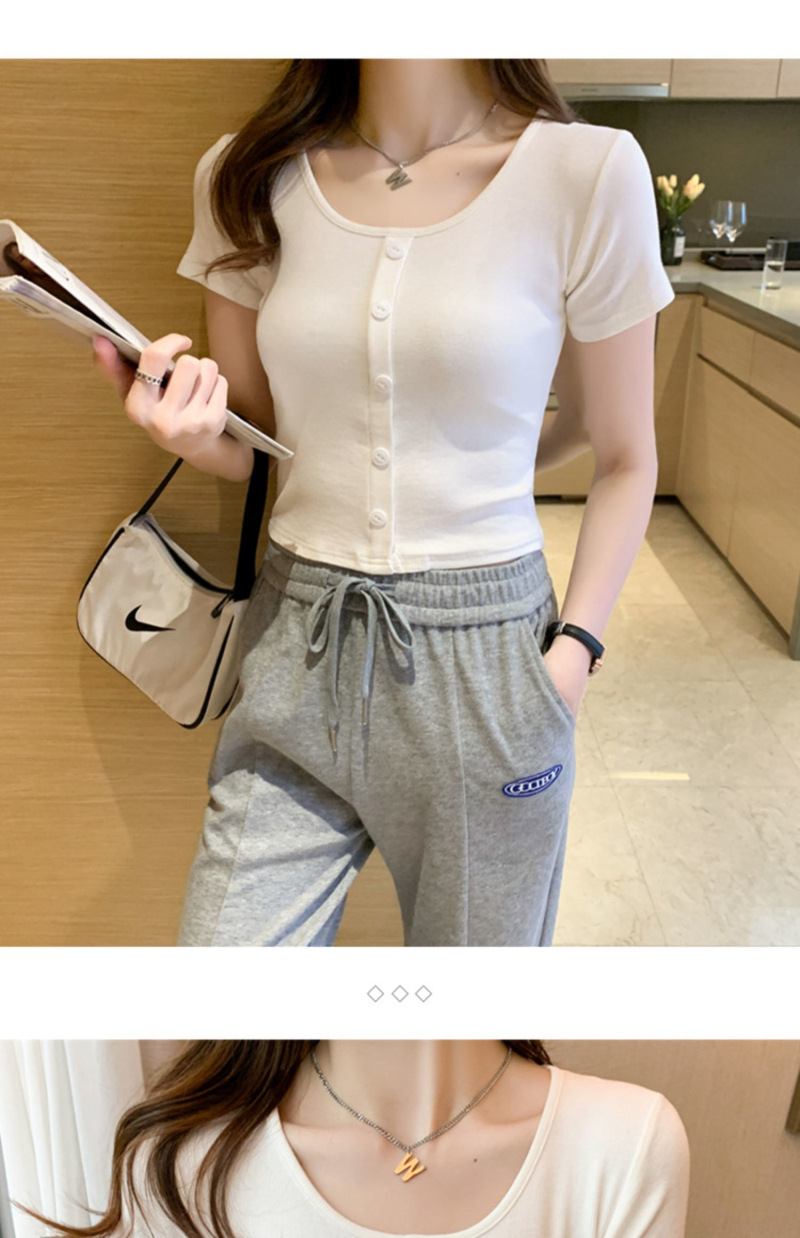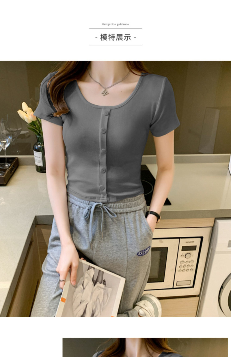 2025 여름 새로운 간단한 캐주얼 솔리드 컬러 짧은 반팔 티셔츠 여성 최고 슬림 핏 슬리밍 Instagram 유행스토어 가기