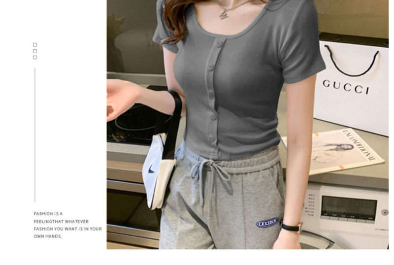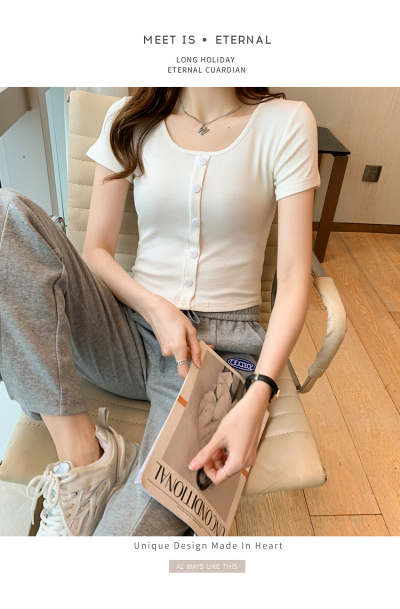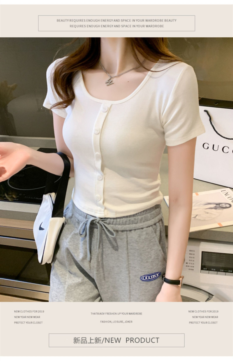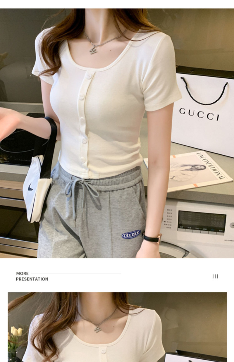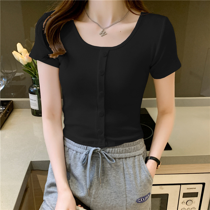 2025 여름 새로운 간단한 캐주얼 솔리드 컬러 짧은 반팔 티셔츠 여성 최고 슬림 핏 슬리밍 Instagram 유행스토어 가기