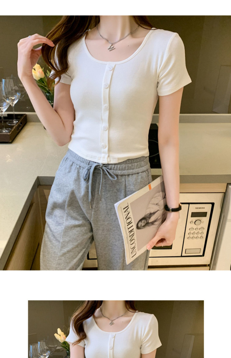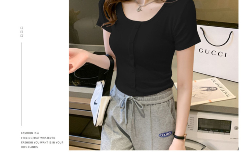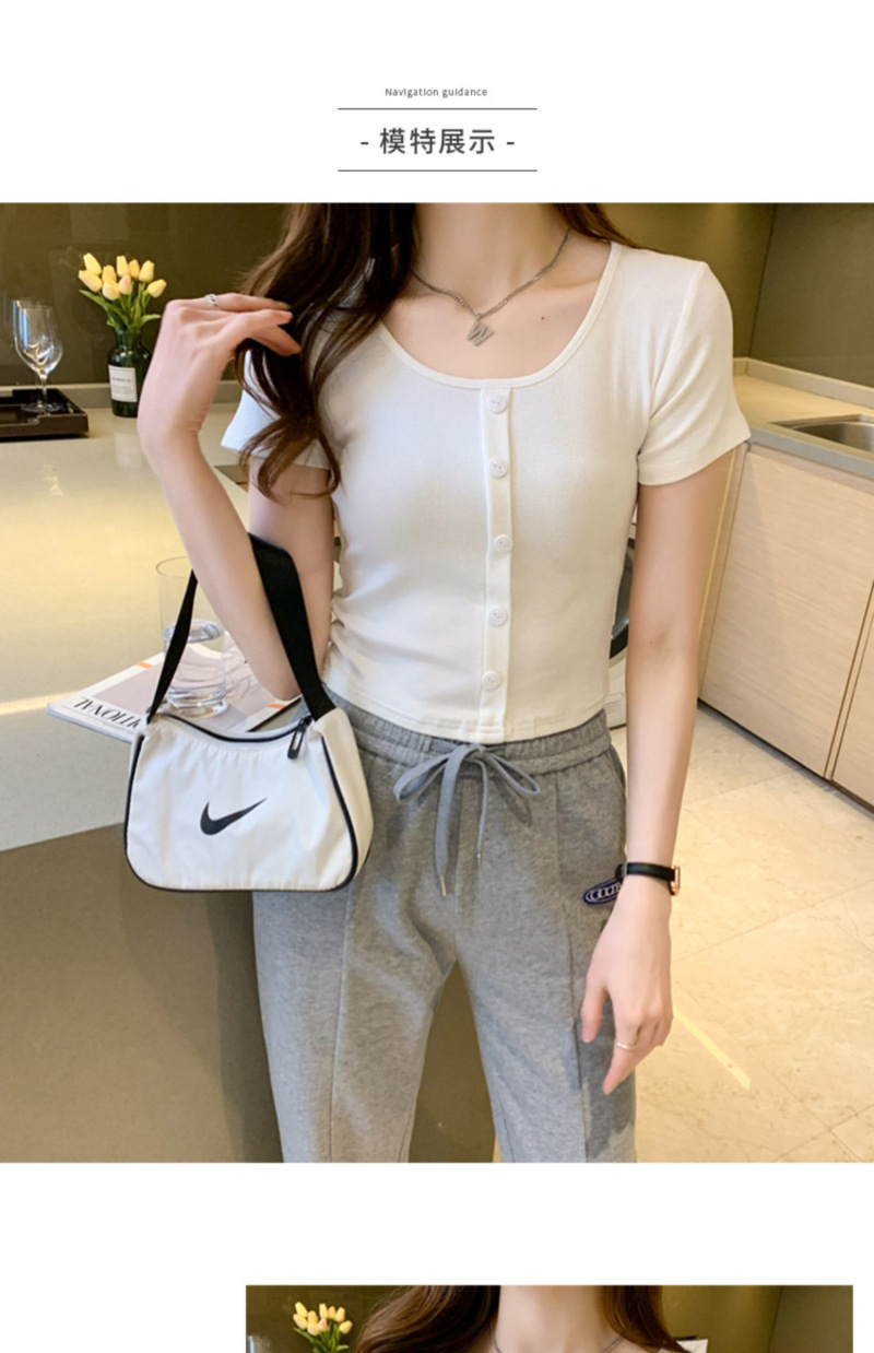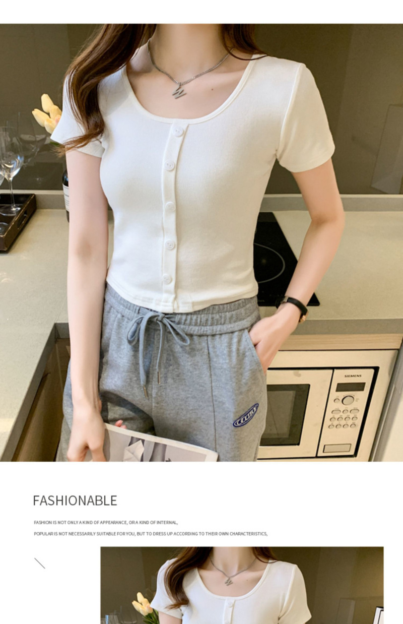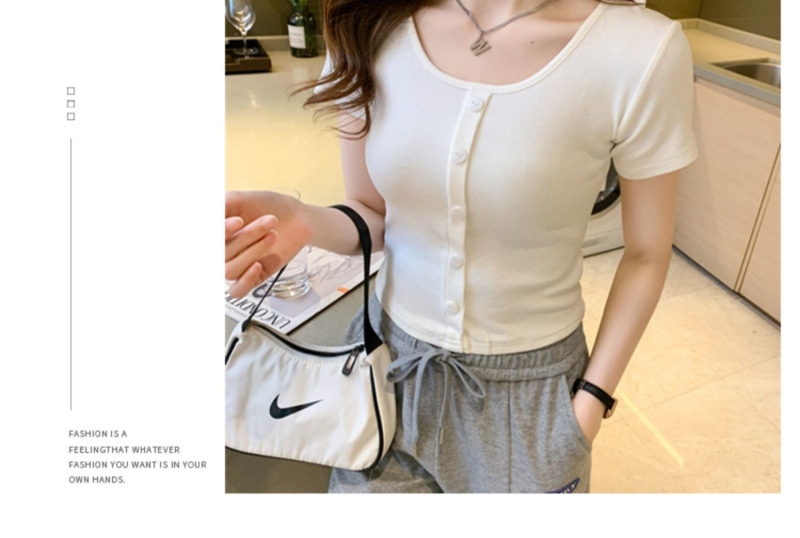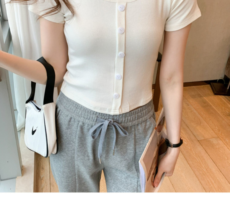 2025 여름 새로운 간단한 캐주얼 솔리드 컬러 짧은 반팔 티셔츠 여성 최고 슬림 핏 슬리밍 Instagram 유행스토어 가기