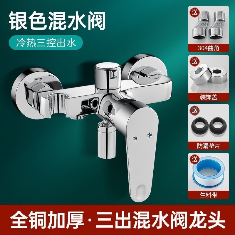• 냉온수 혼합 밸브 3제어 물 배출구 원형 샤워기 - 리프팅 로드 포함