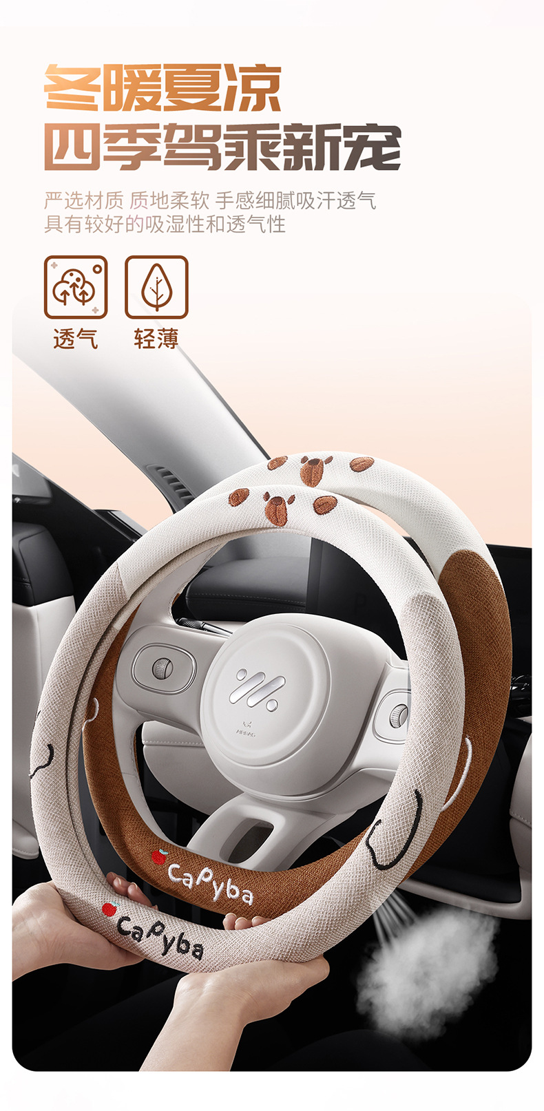 스티어링 휠 커버 아이스 실크 통기성 자동차 핸들 커버 사계절 보편적 인 땀 흡수성 하이 엔드 초박형 미끄럼 방지 커버 도매
