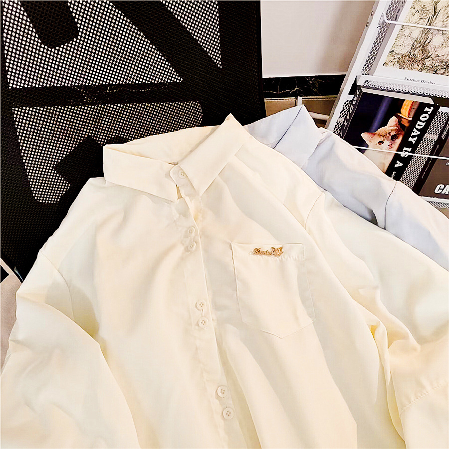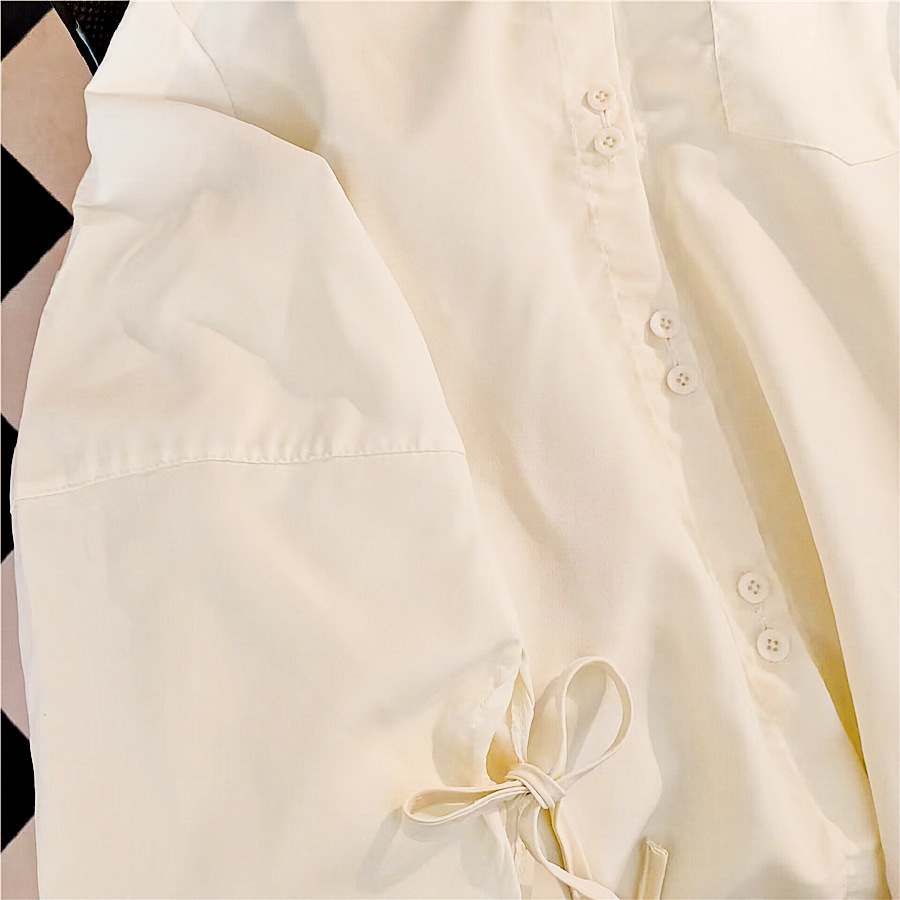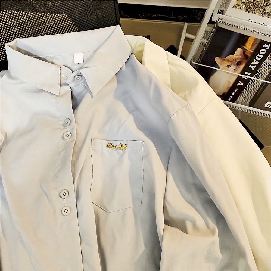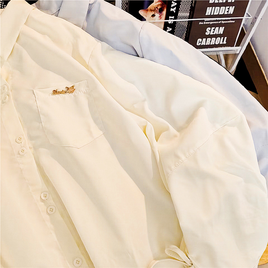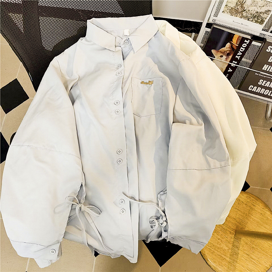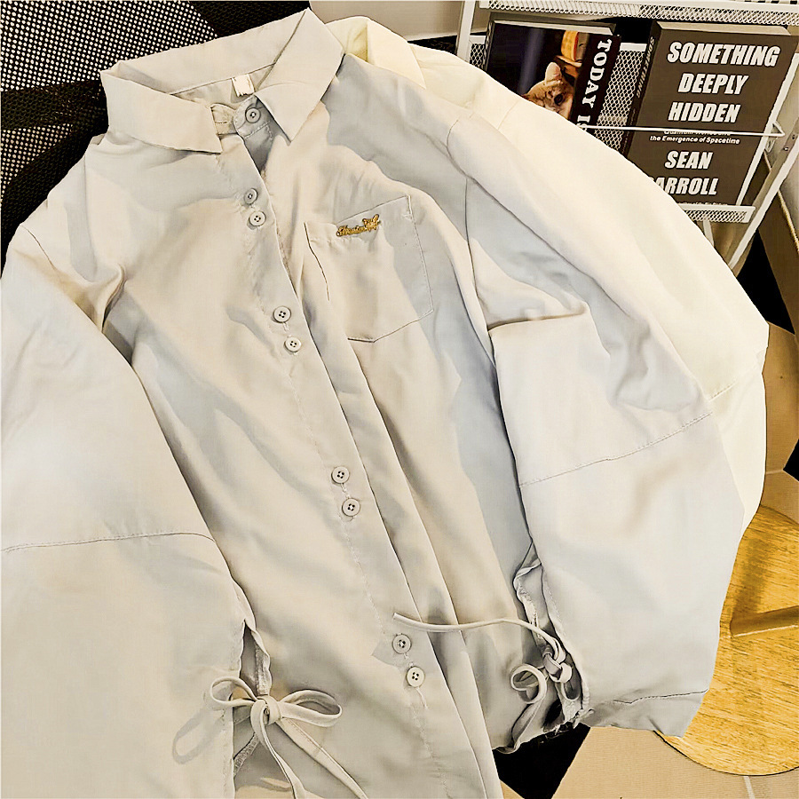 실제 샷 재고 봄과 가을 여성 의류 대학 스타일 나이를 줄이는 긴팔 셔츠 여성용 루즈 스트랩 게으른 스타일 탑 셔츠스토어 가기
