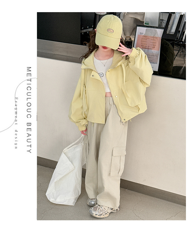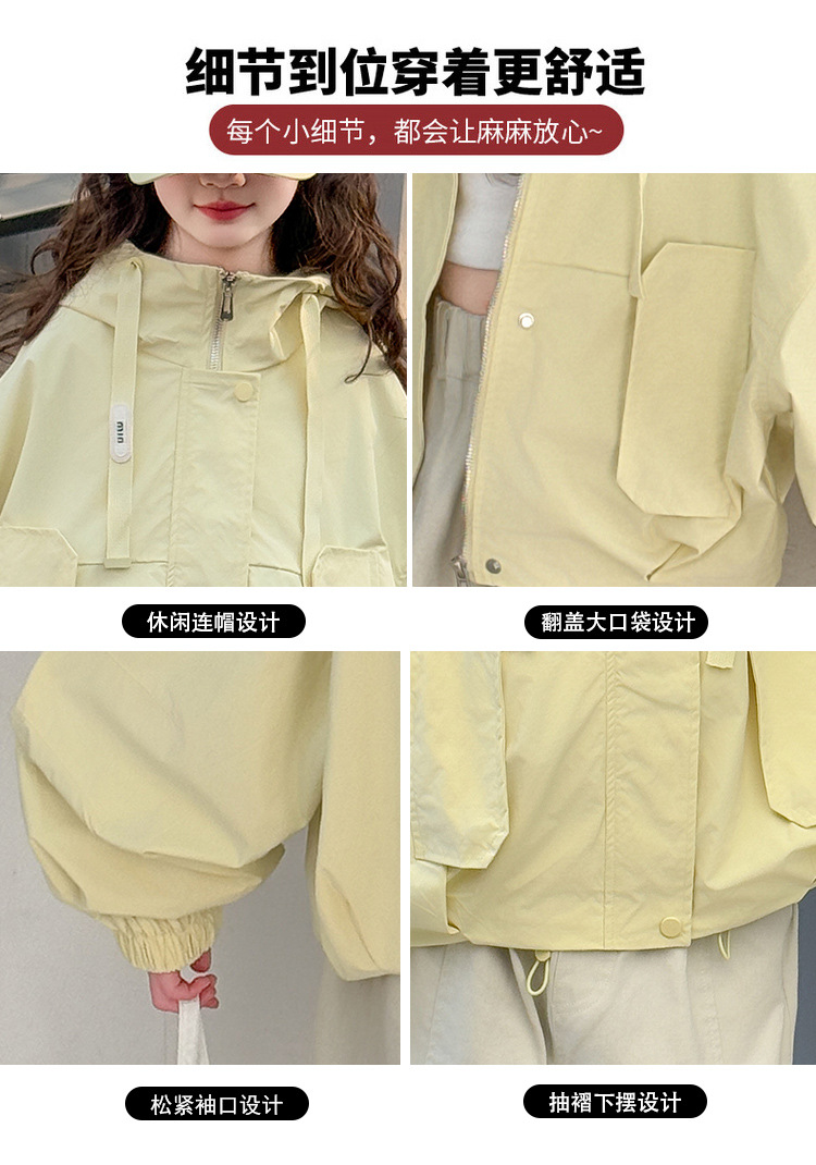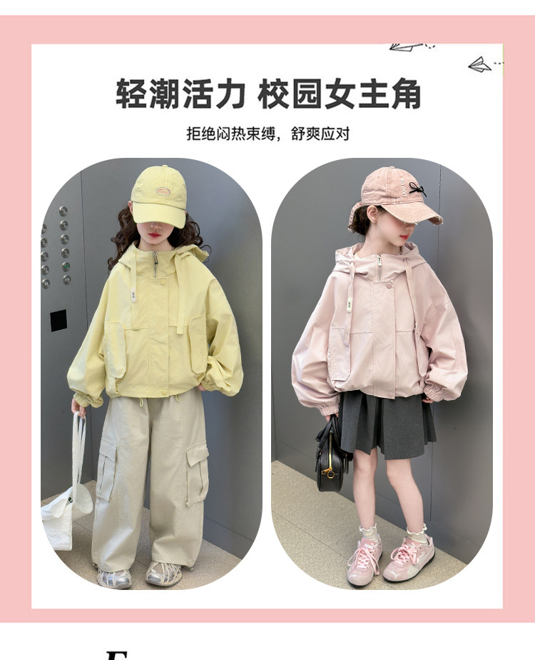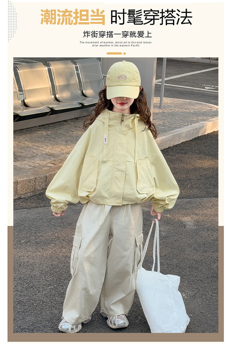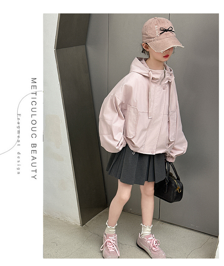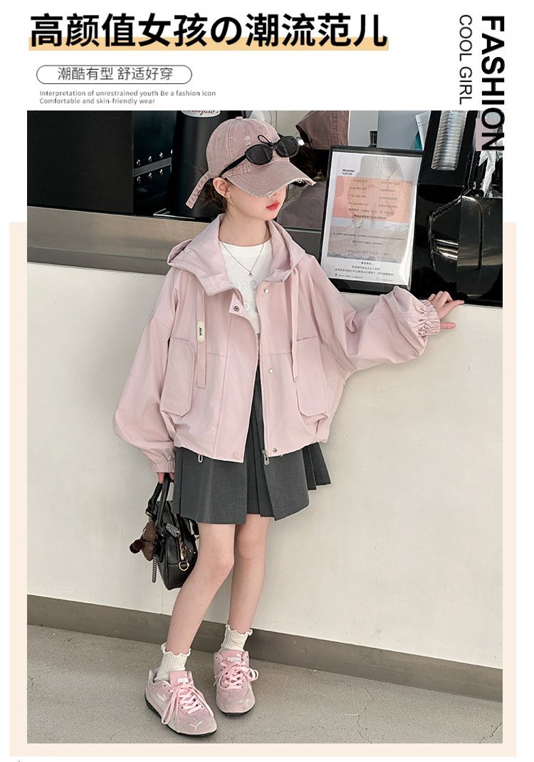 소녀의 큰 소년의 봄 코트 2025 새로운 스타일 유행 후드 러시 옷 소녀의 한국 스타일 러시 옷 중학생