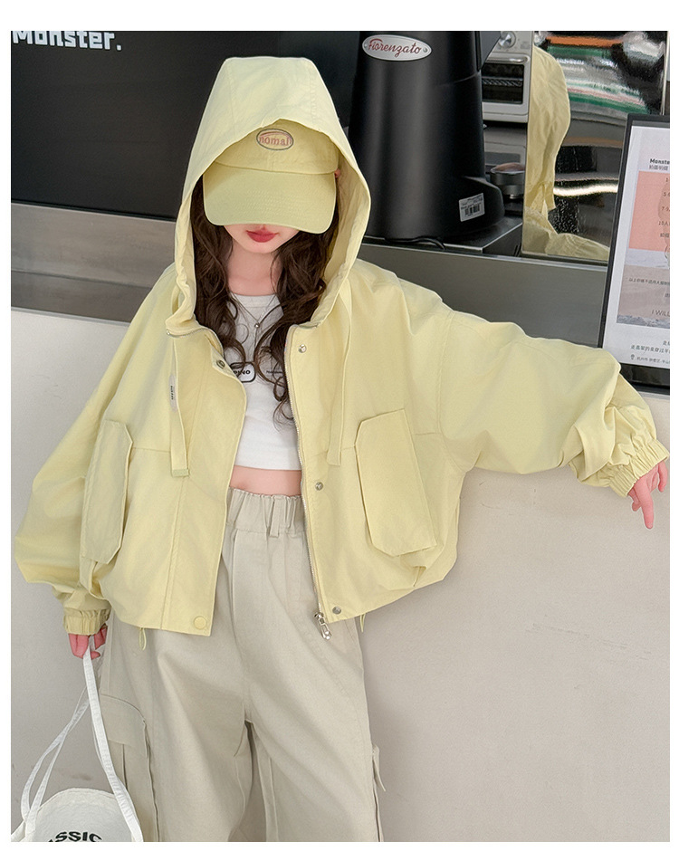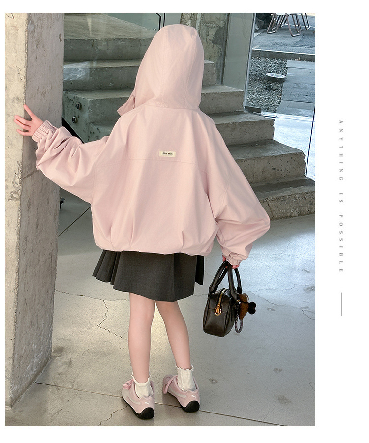 소녀의 큰 소년의 봄 코트 2025 새로운 스타일 유행 후드 러시 옷 소녀의 한국 스타일 러시 옷 중학생스토어 가기