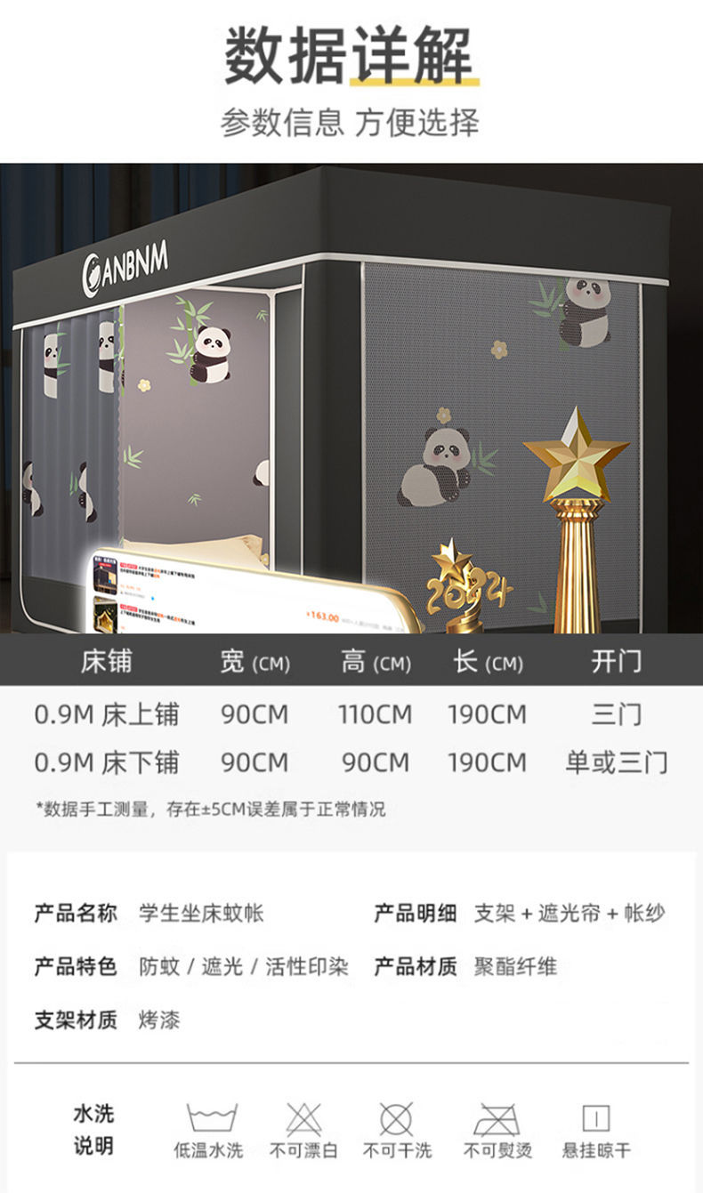 Nanjiren 설치 무료 지퍼 광장 계정 학생 기숙사 음영 침대 커튼 3 도어 완전 동봉 된 침대 맨틀 굵은 브래킷