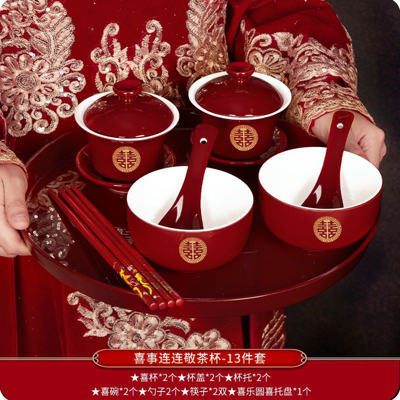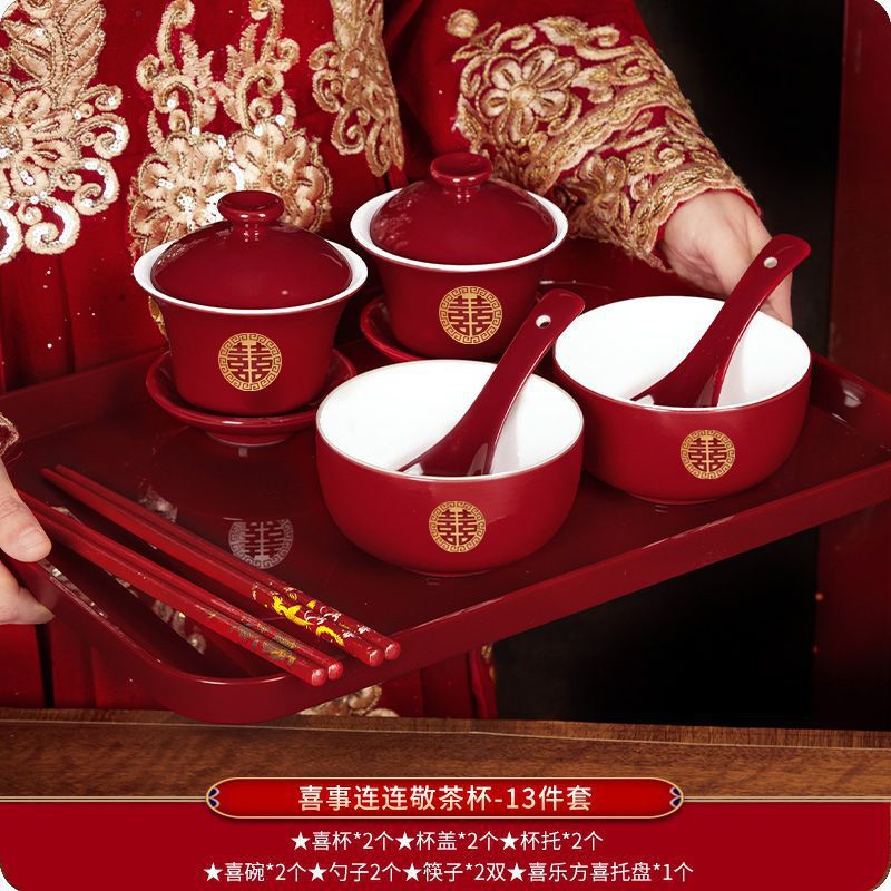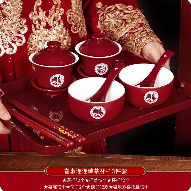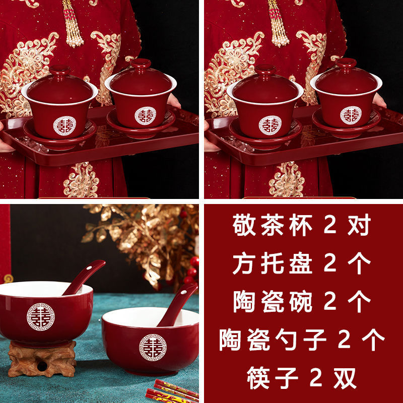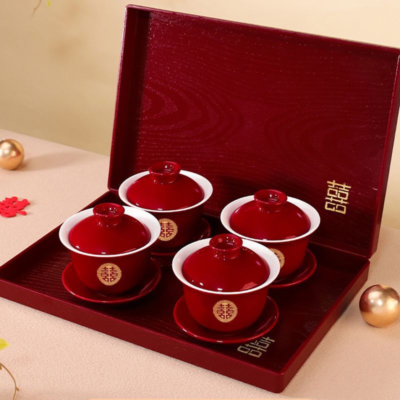 개조 된 토스트 티 컵 웨딩 티 세트 세트 가정용 4 개의 해피 볼 토스트 티 보울 토스트 주전자 신혼용 선물스토어 가기