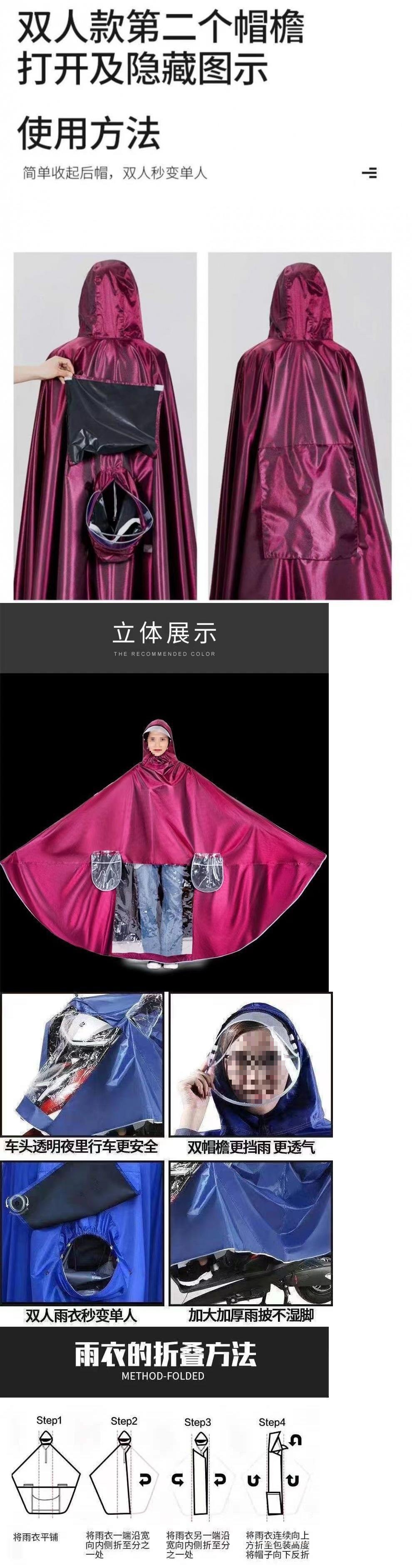 새로운 폭풍우 방지 비옷 성인 초대형 두꺼운 페달 전기 자동차 판초 얼굴 보호 비옷 여성 더블 비옷스토어 가기