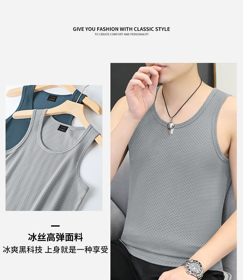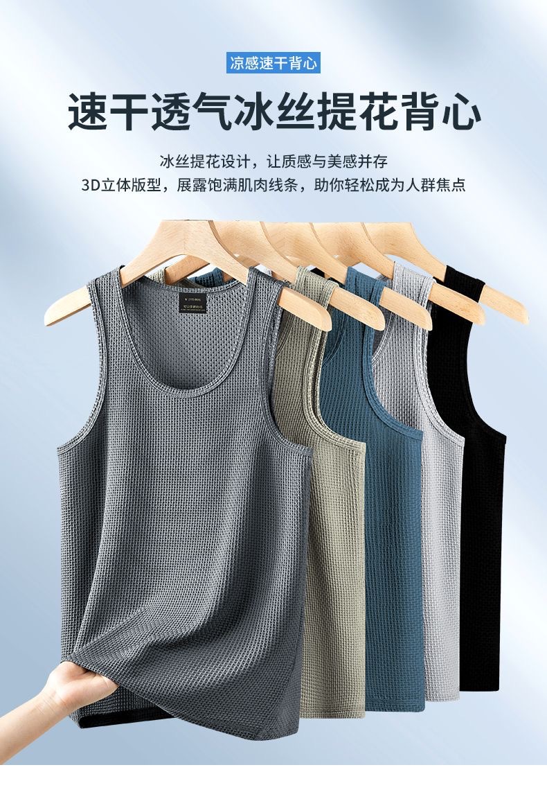 대외 무역 아이스 실크 조끼 남자 여름 슬럽 빠른 건조 자카드 울트라 얇은 쿨 민소매 피트니스 스포츠 허리 코트