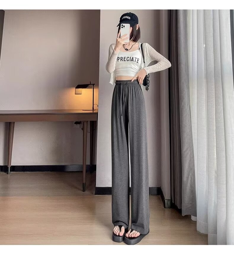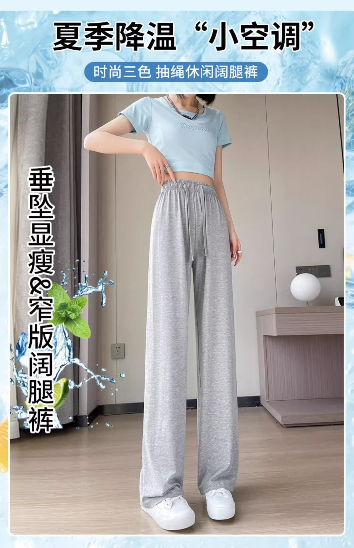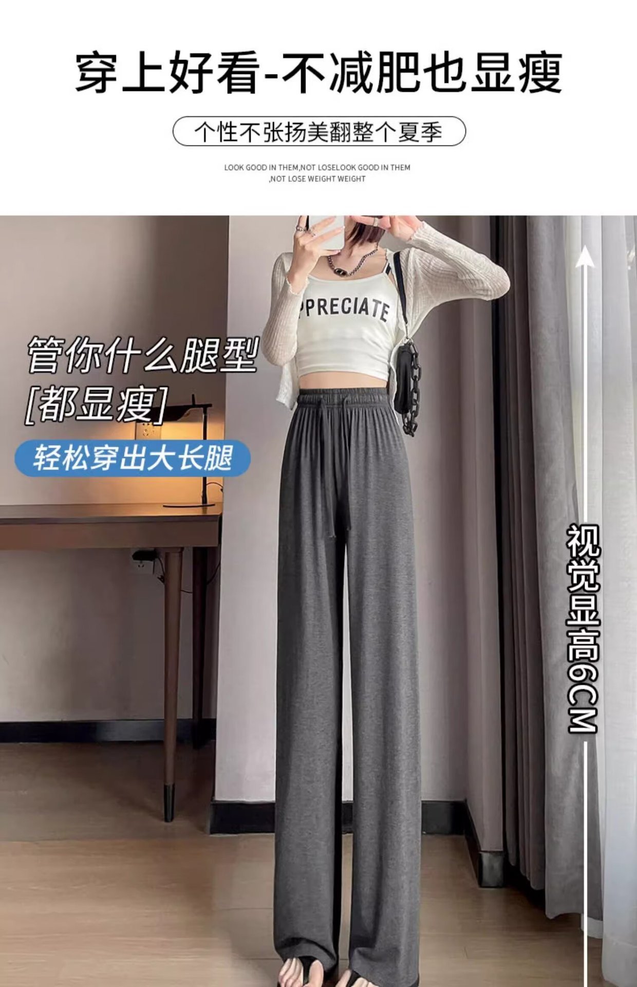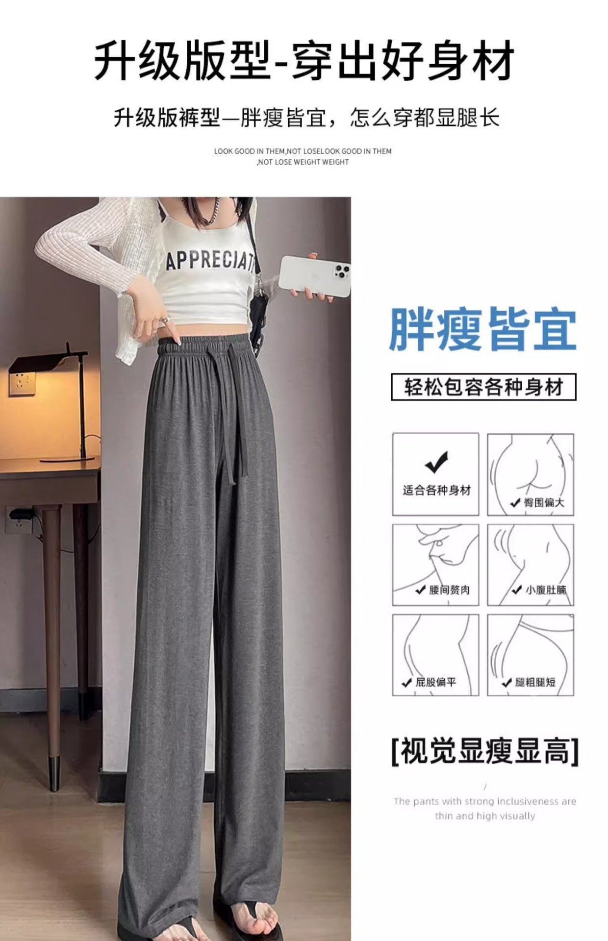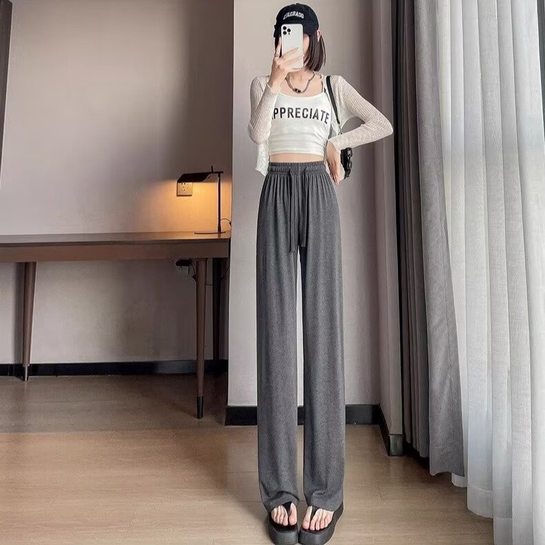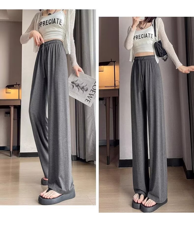 모달 그레이 아이스 실크 넓은 다리 바지 여성 여름 새로운 얇은 높은 허리 투약 좁은 버전 작은 쿨 스트레이트 바지스토어 가기