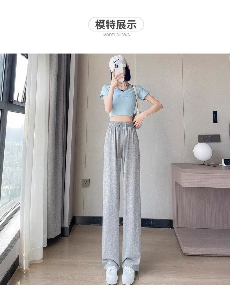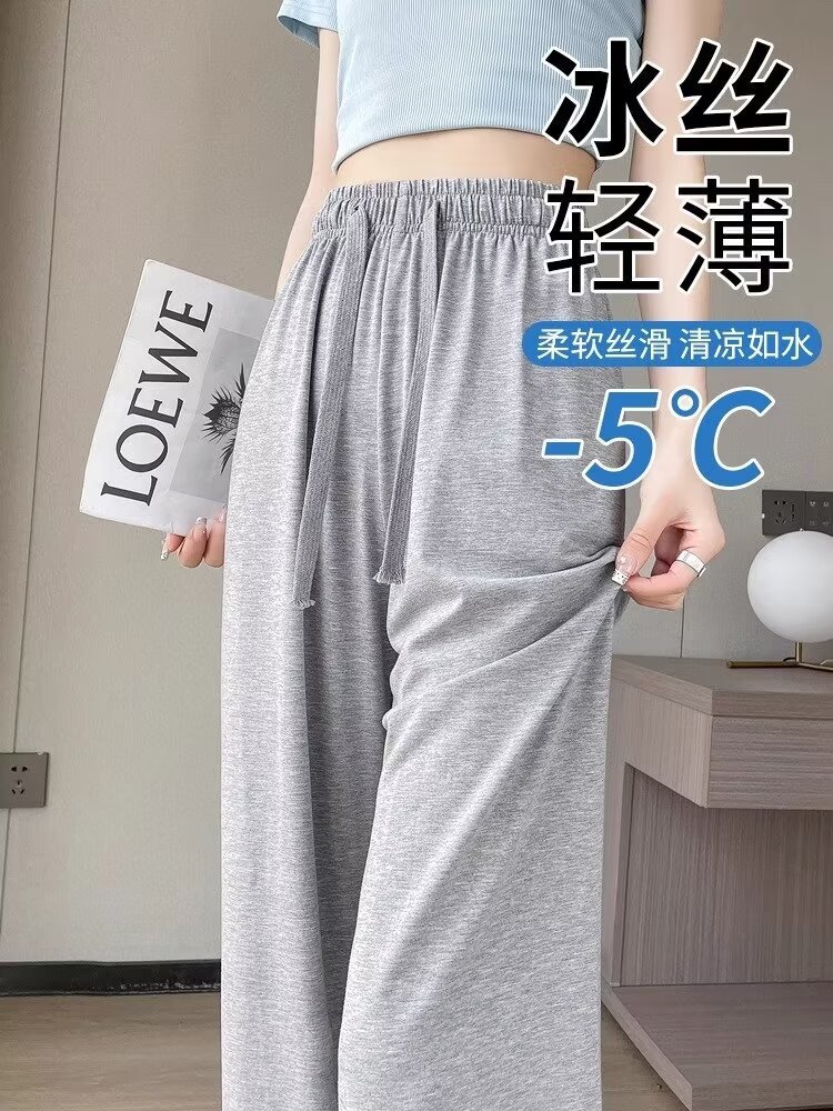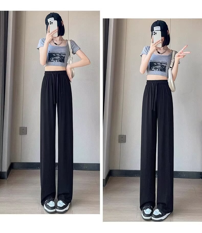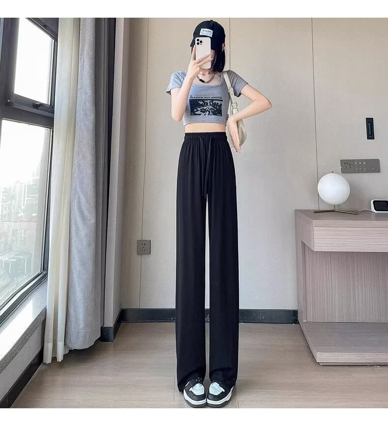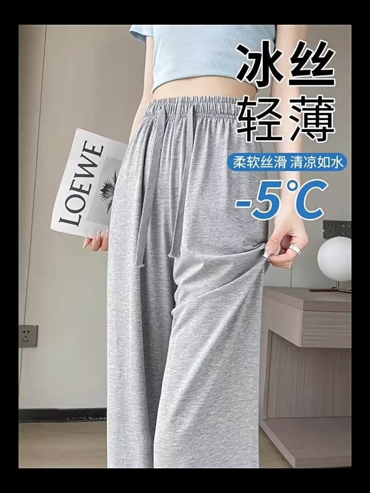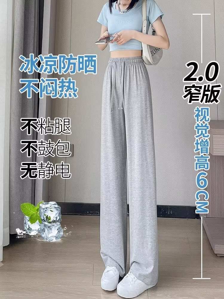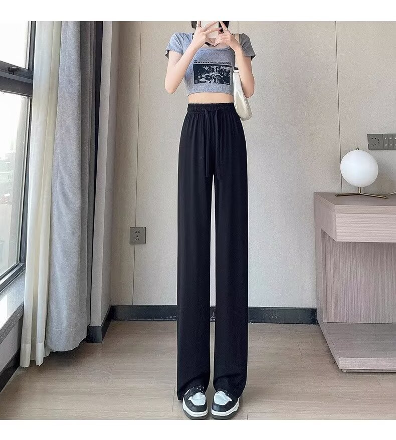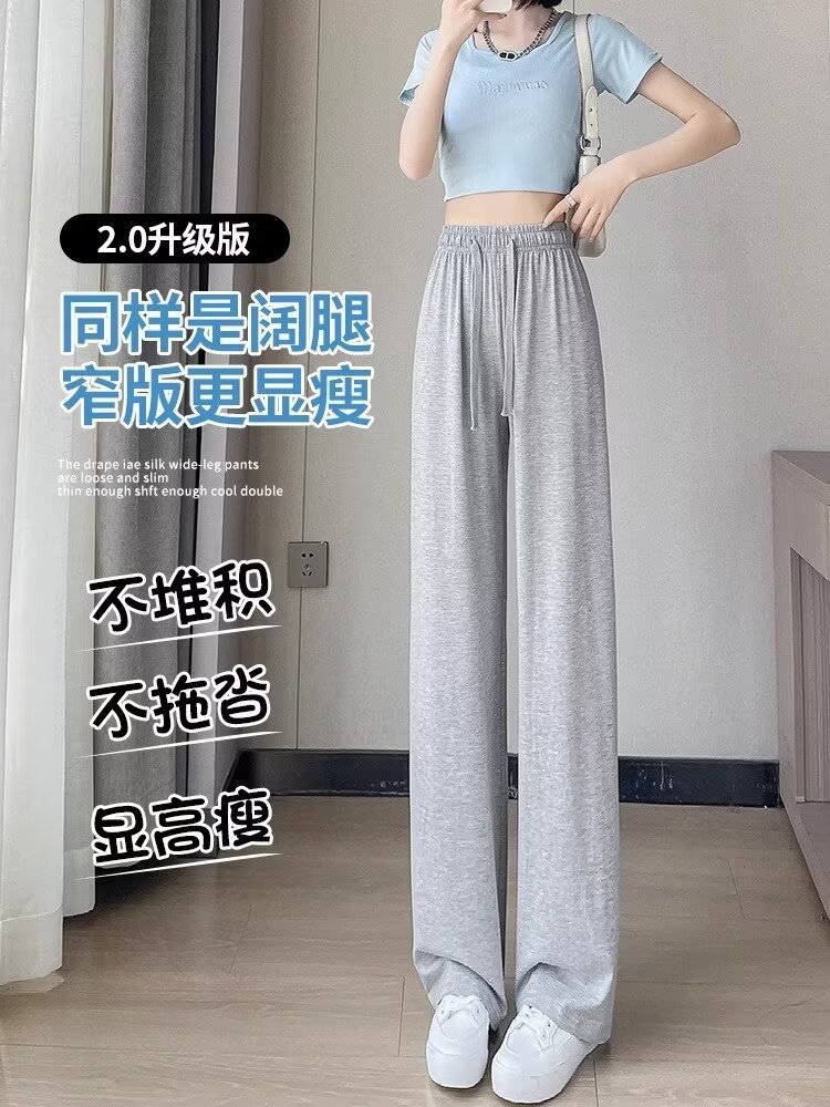 모달 그레이 아이스 실크 넓은 다리 바지 여성 여름 새로운 얇은 높은 허리 투약 좁은 버전 작은 쿨 스트레이트 바지스토어 가기