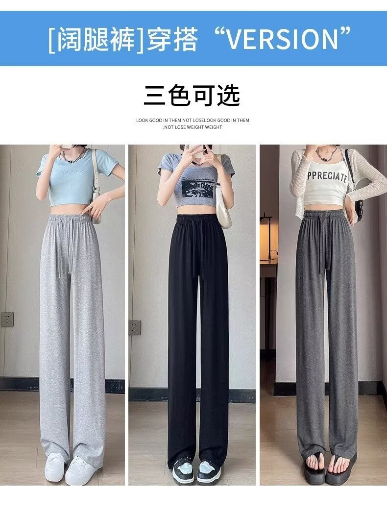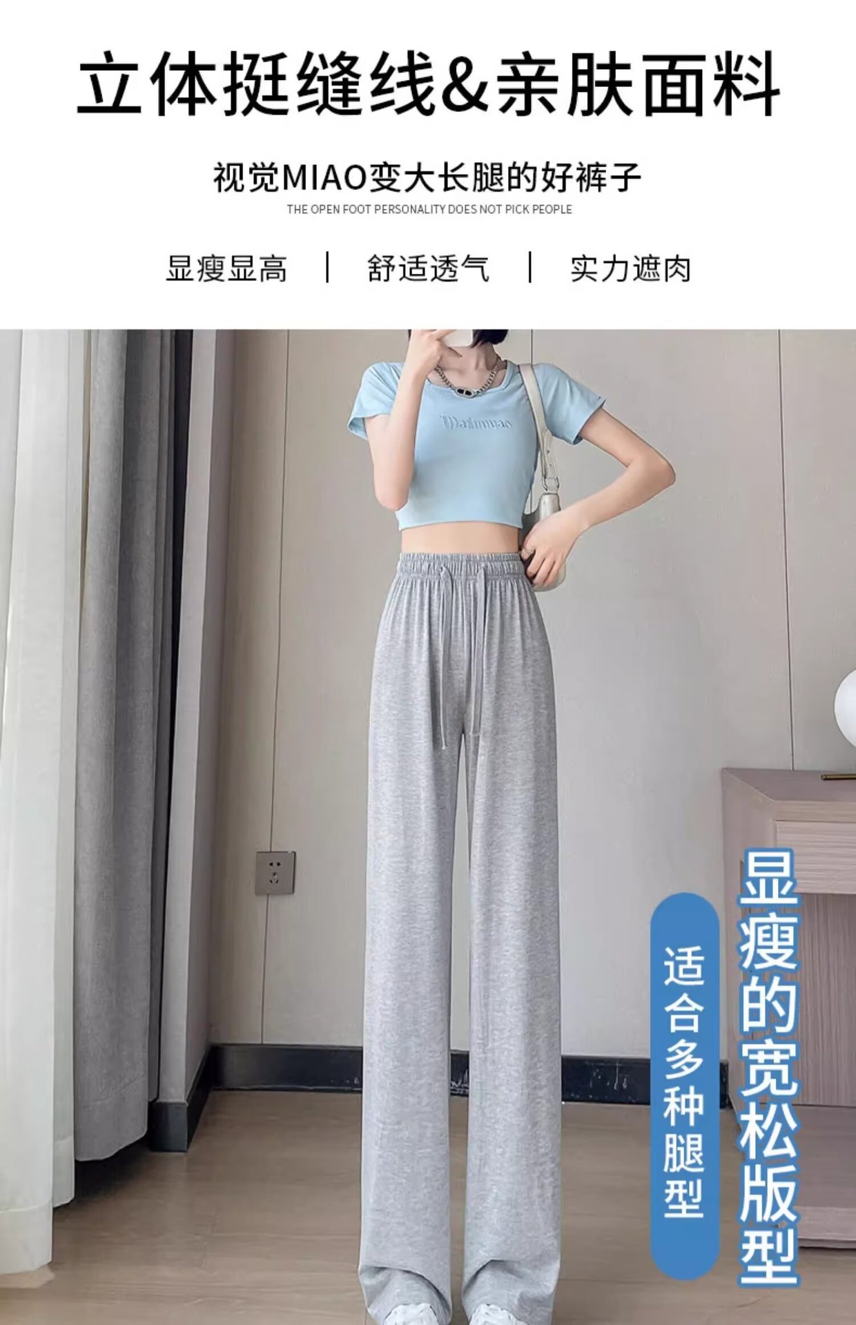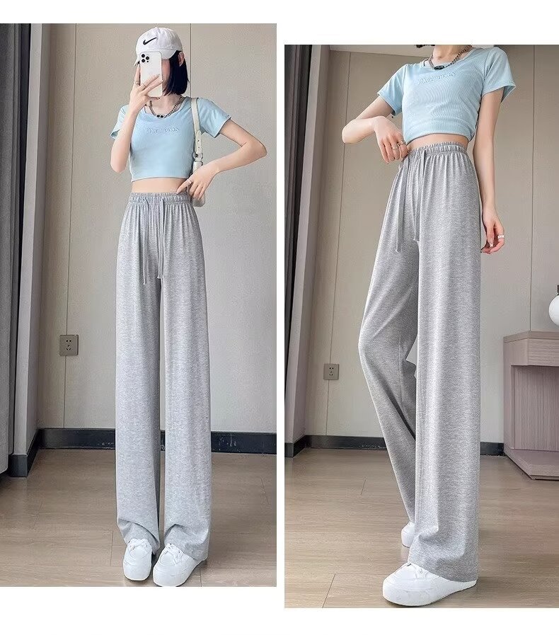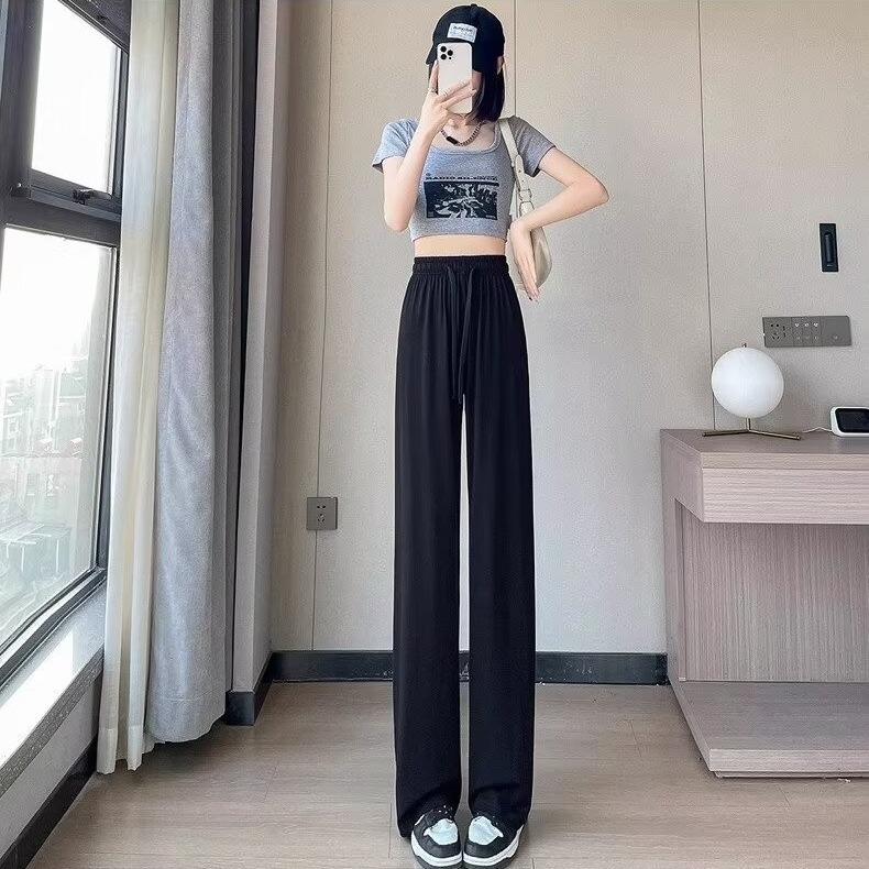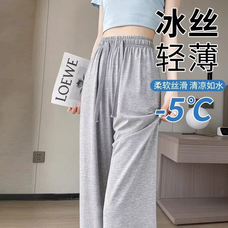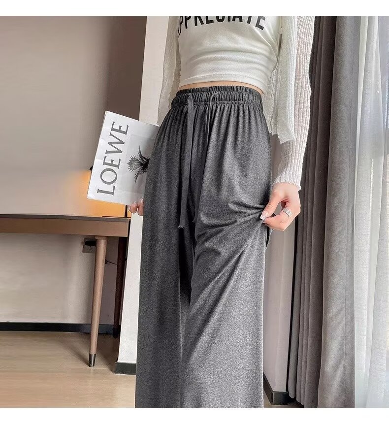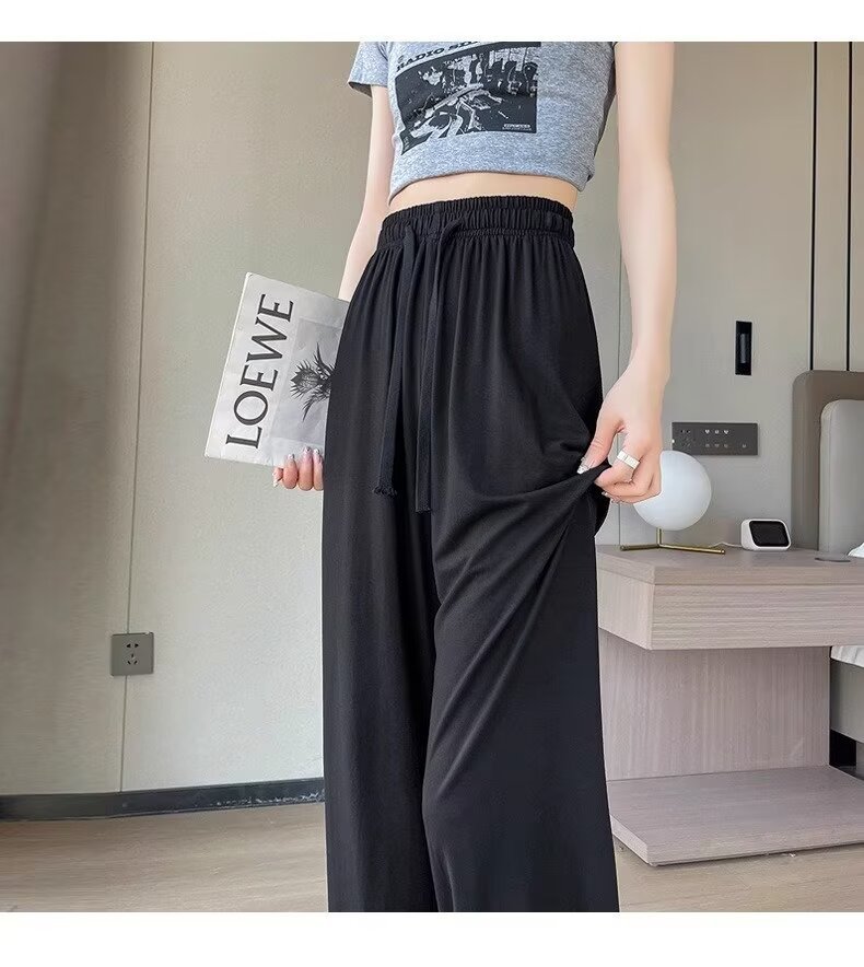 모달 그레이 아이스 실크 넓은 다리 바지 여성 여름 새로운 얇은 높은 허리 투약 좁은 버전 작은 쿨 스트레이트 바지스토어 가기