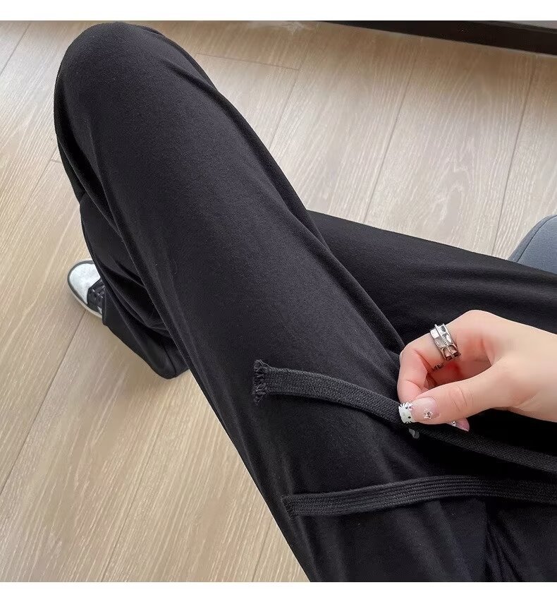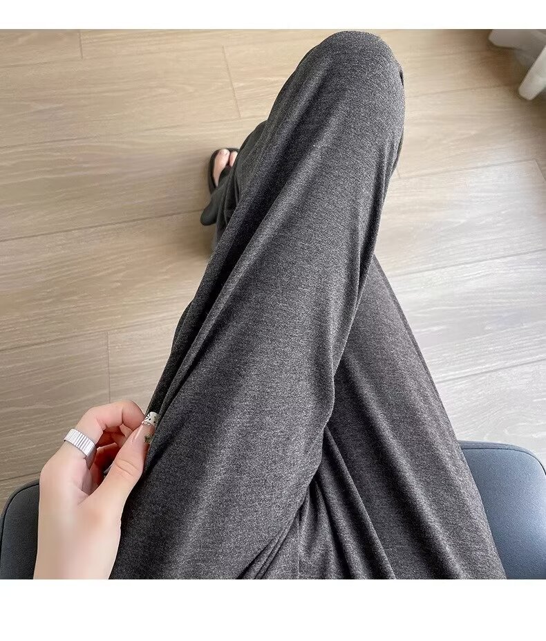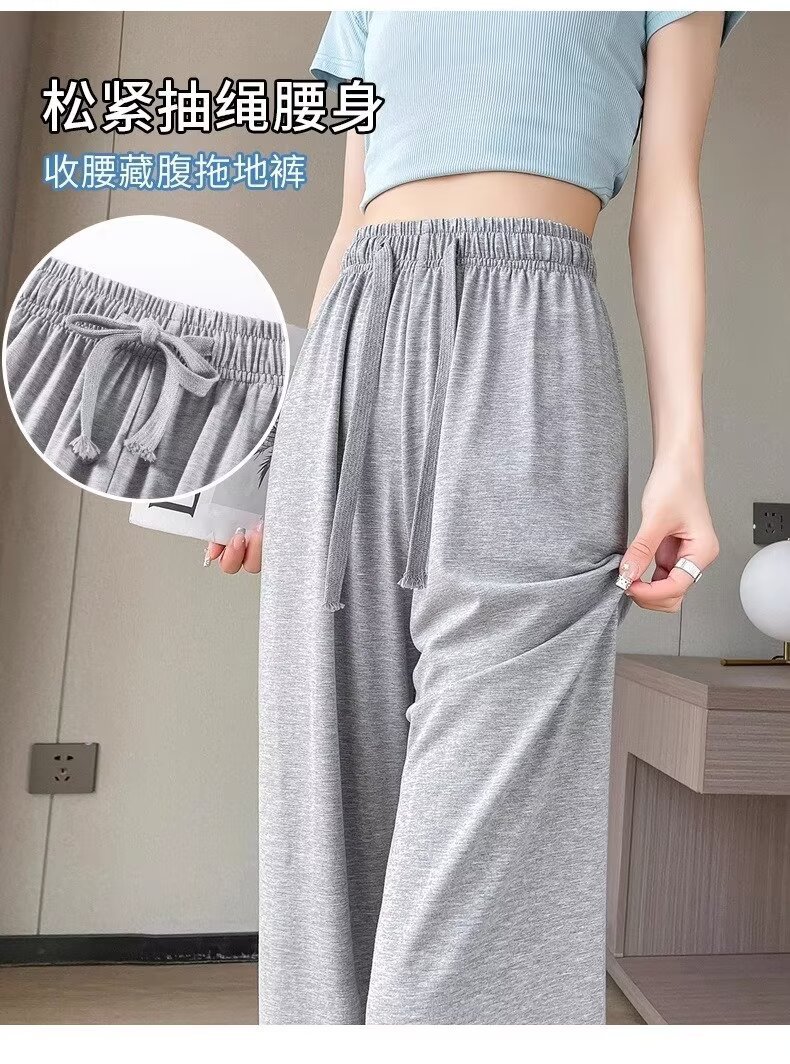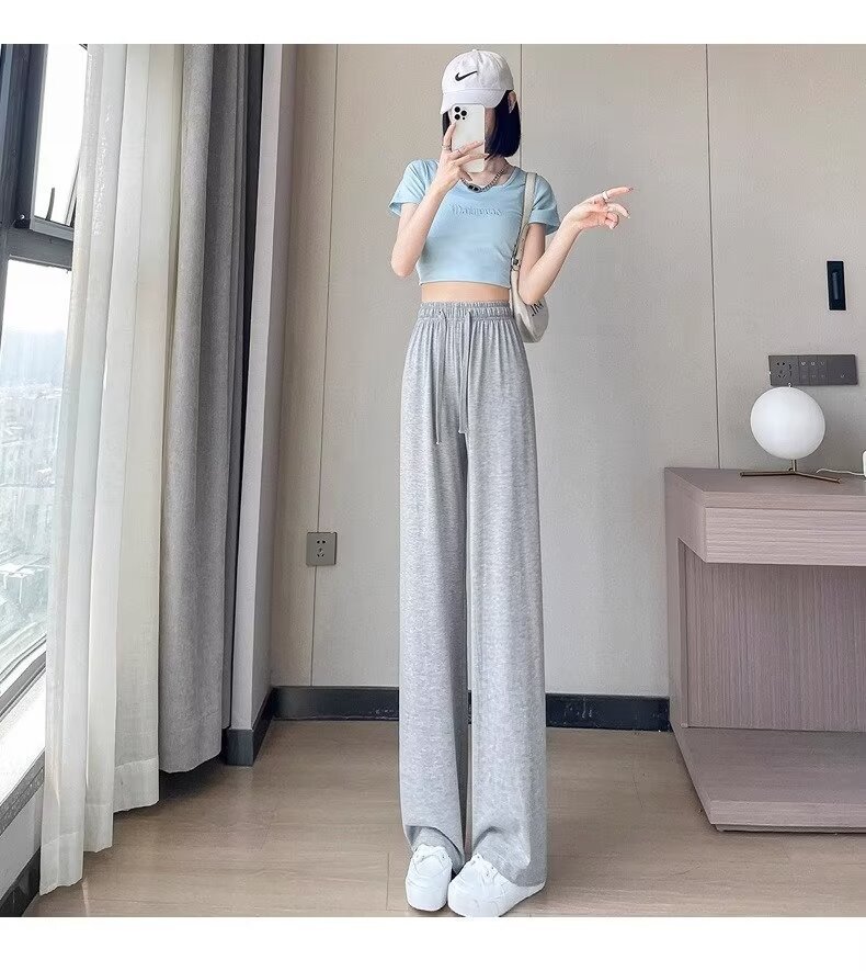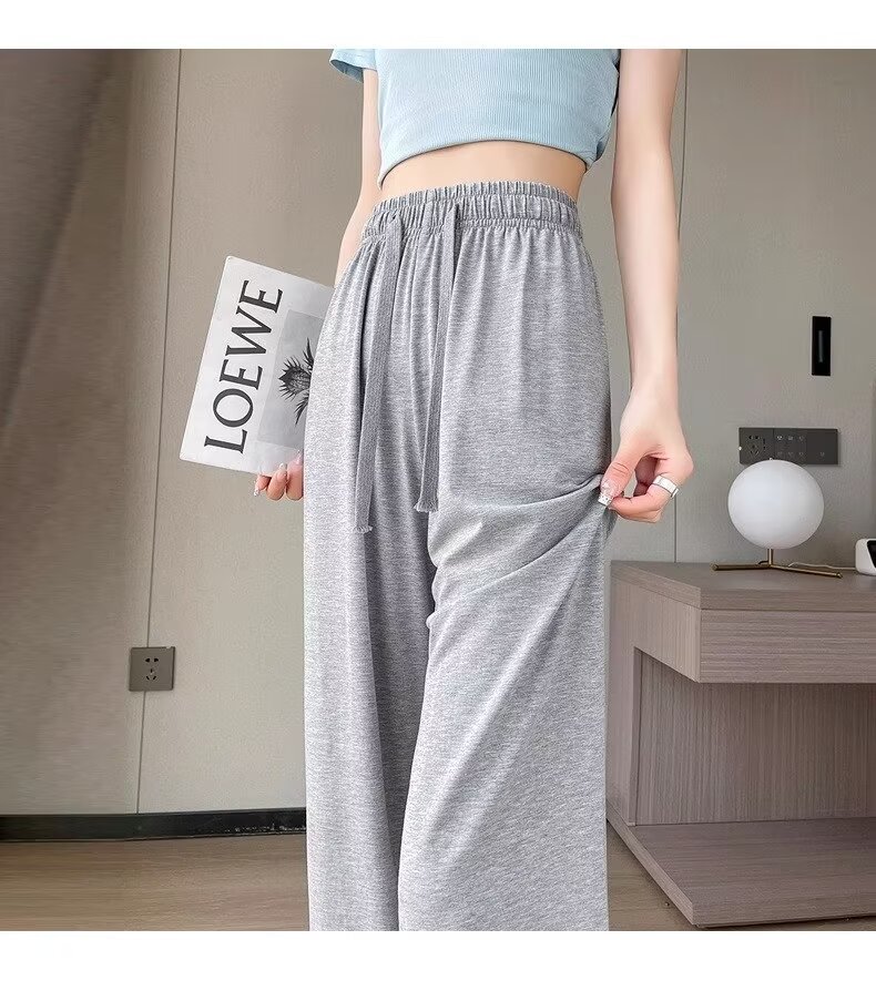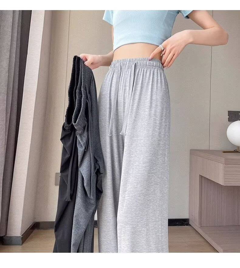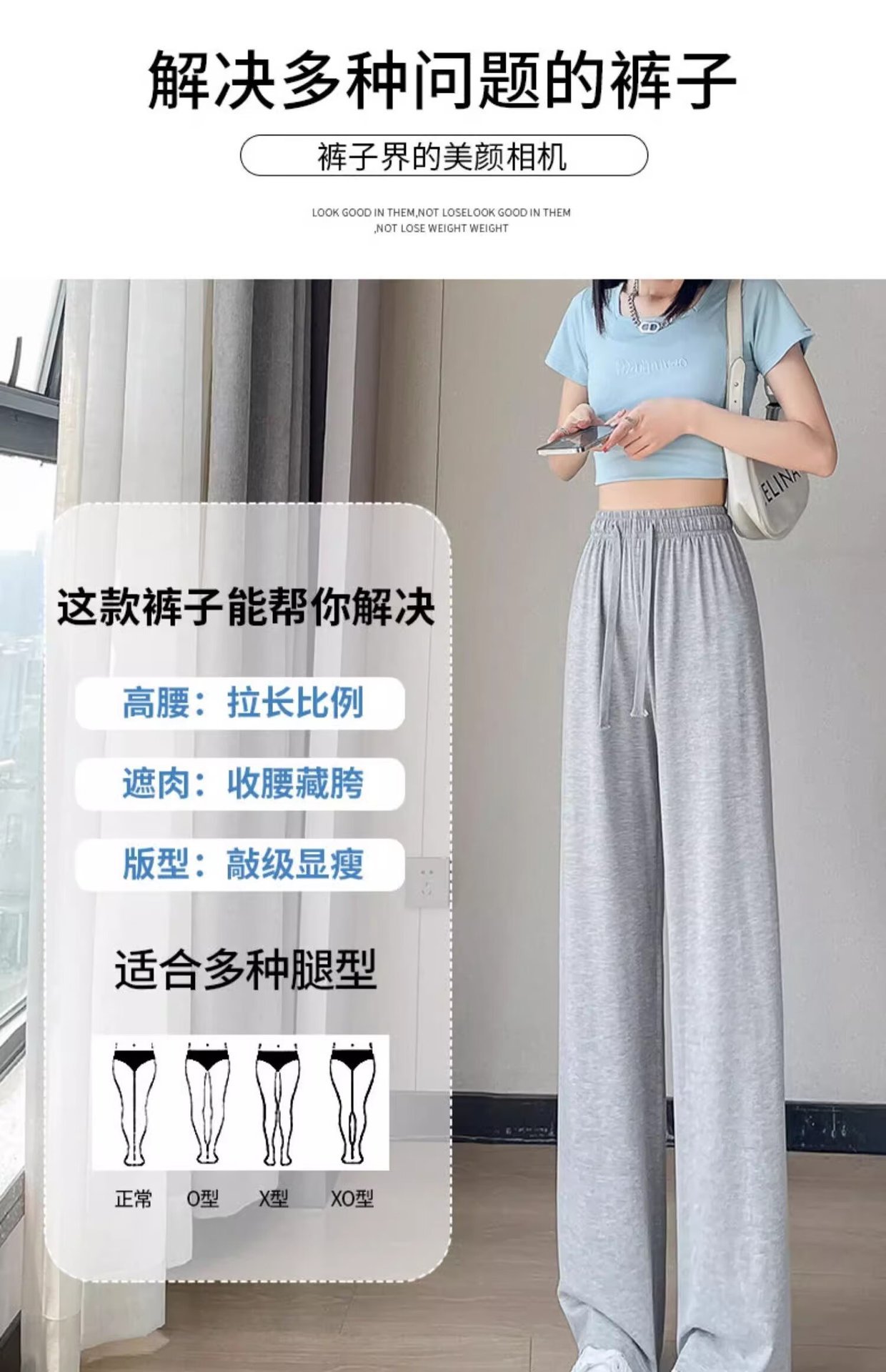모달 그레이 아이스 실크 넓은 다리 바지 여성 여름 새로운 얇은 높은 허리 투약 좁은 버전 작은 쿨 스트레이트 바지스토어 가기