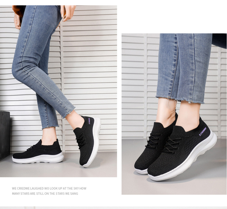 국경 2025 봄과 가을 새로운 여성 신발 캐주얼 운동화 통기성 메쉬 로우 탑 소프트 하단 플라이 짠 신발 트렌디 신발스토어 가기