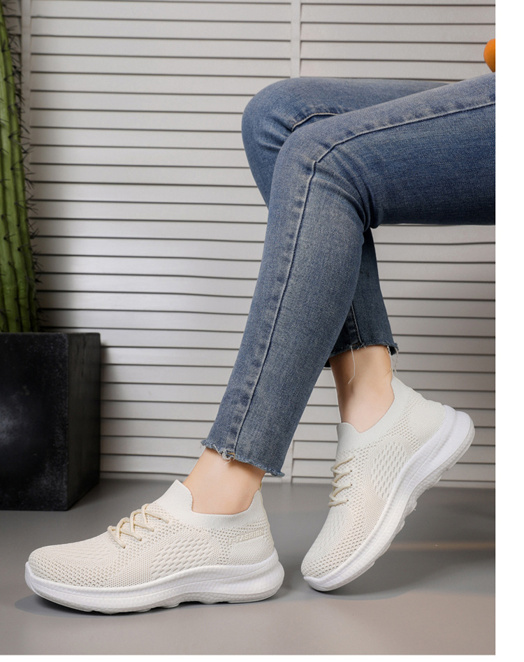 국경 2025 봄과 가을 새로운 여성 신발 캐주얼 운동화 통기성 메쉬 로우 탑 소프트 하단 플라이 짠 신발 트렌디 신발