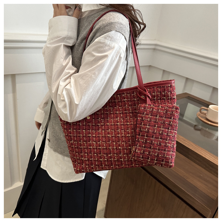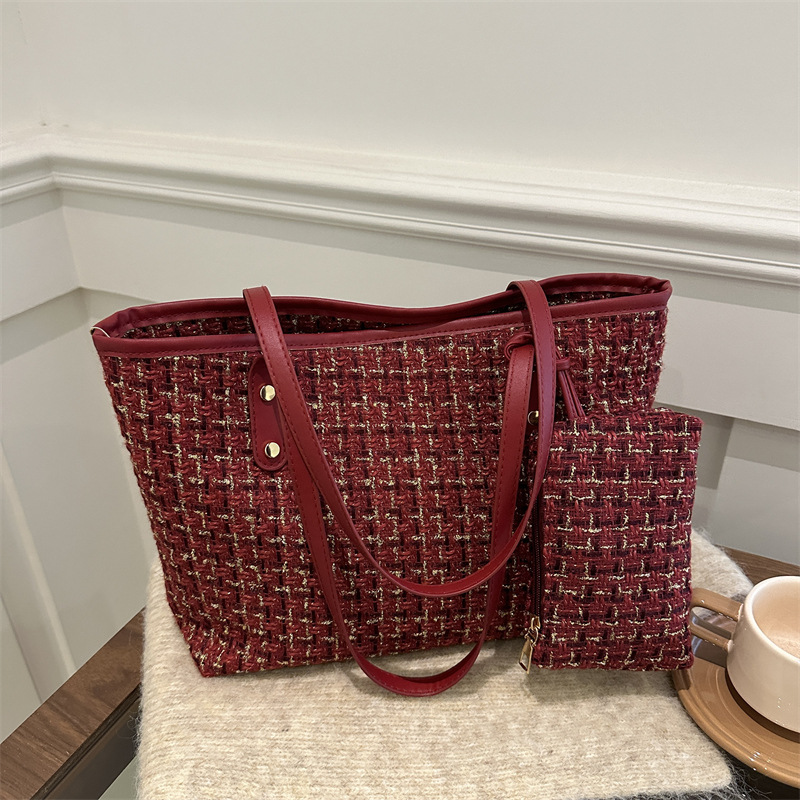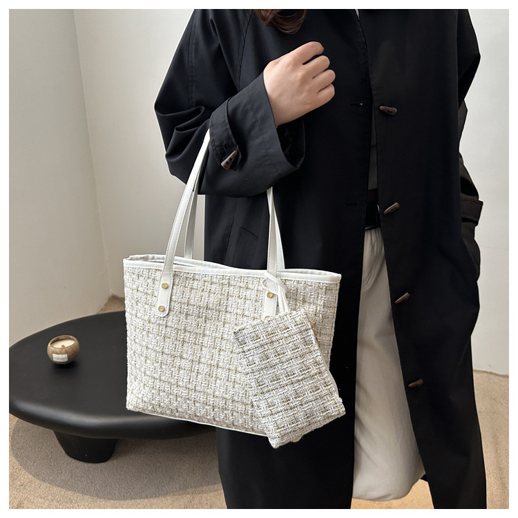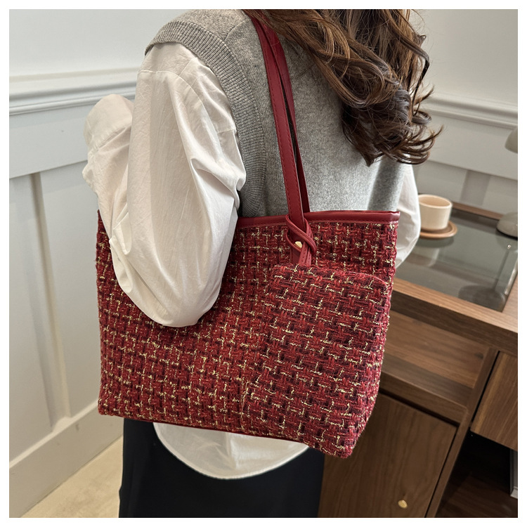 인기있는 모직 가방 여성 가방 2025 새로운 캔버스 하이 엔드 센스 틈새 크로스 바디 백 패션 핸드백 버킷 백