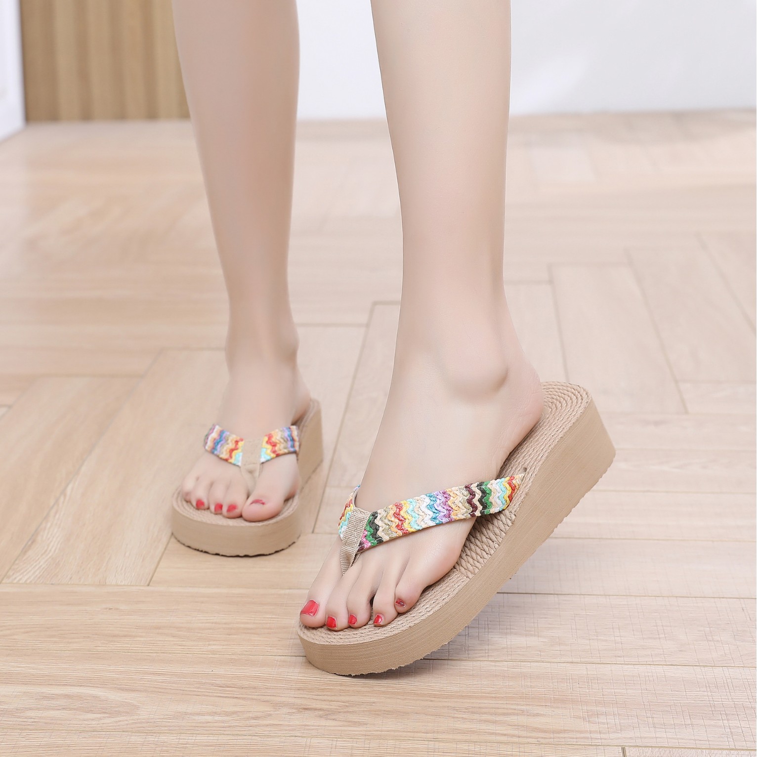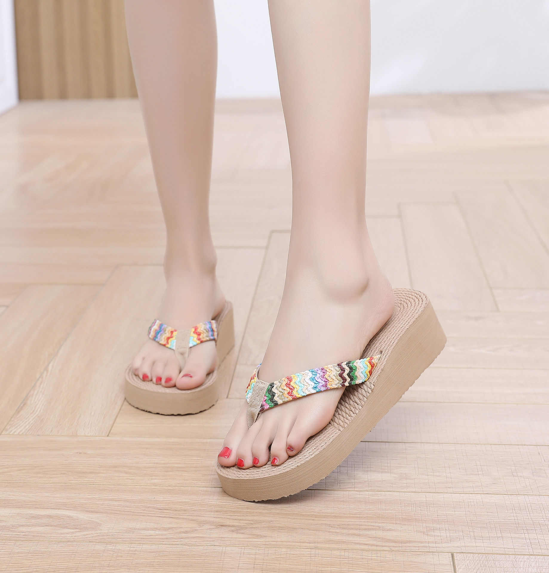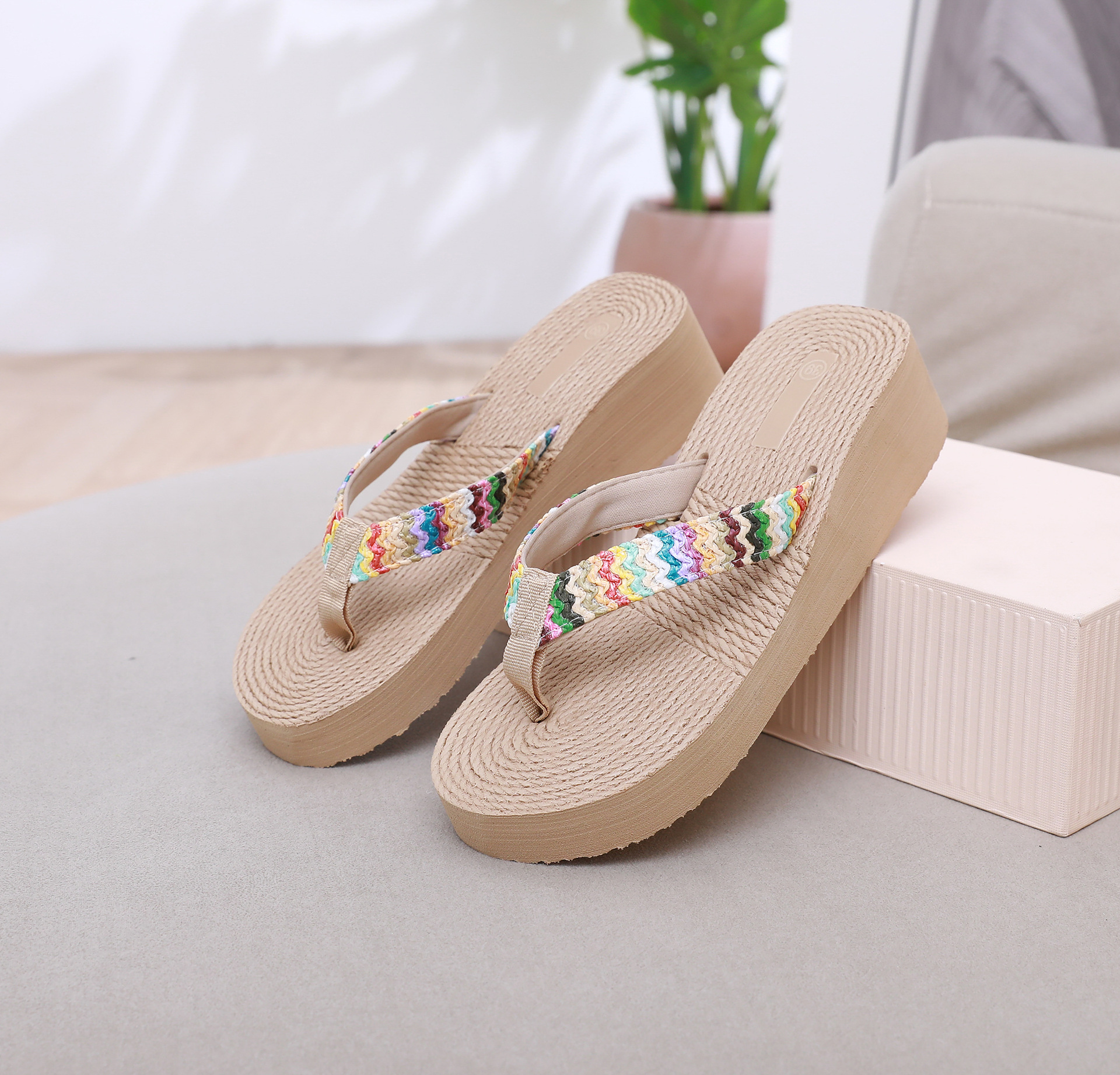 국경 간 여름 새로운 모조 대마 로프 여행 대마 바닥 여성 플립 플롭 여성 비치 플립 플롭스토어 가기