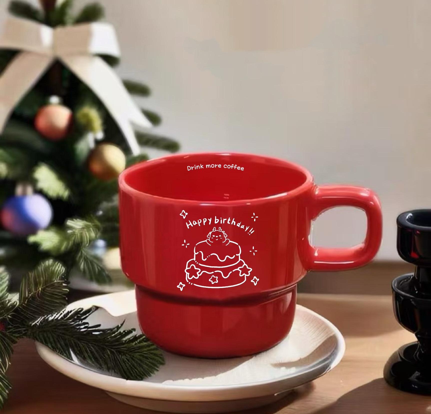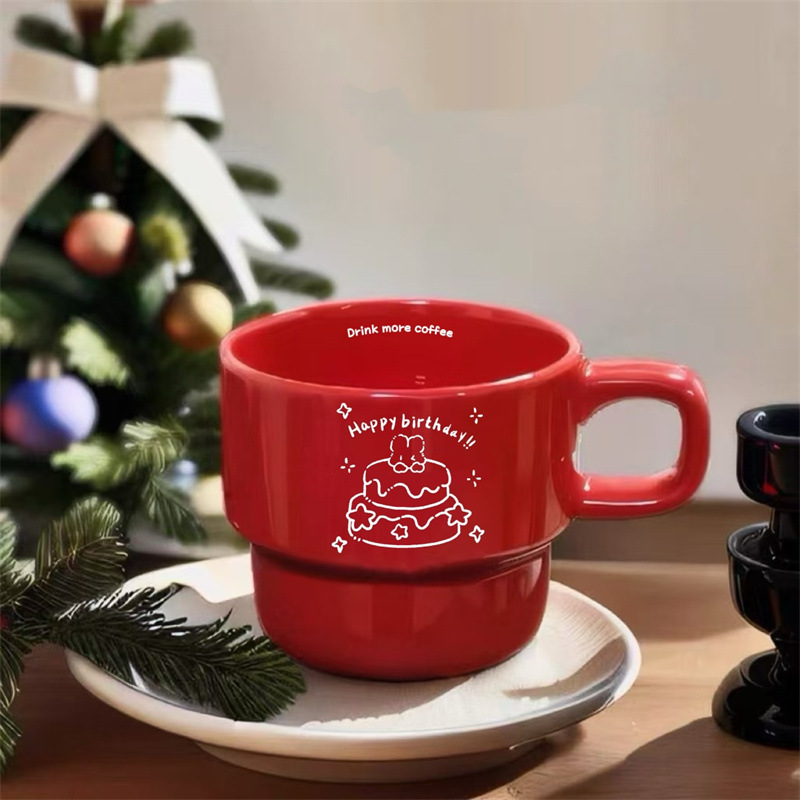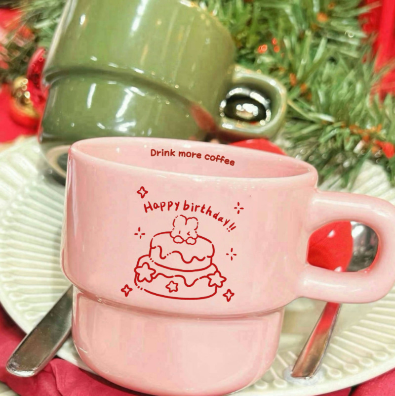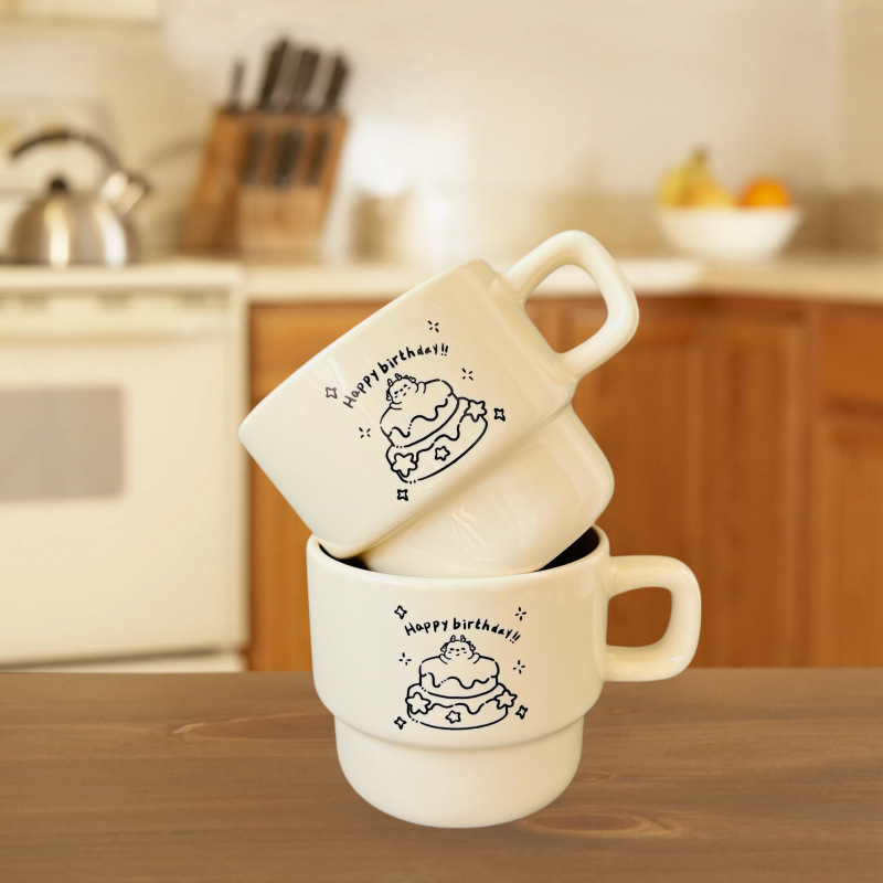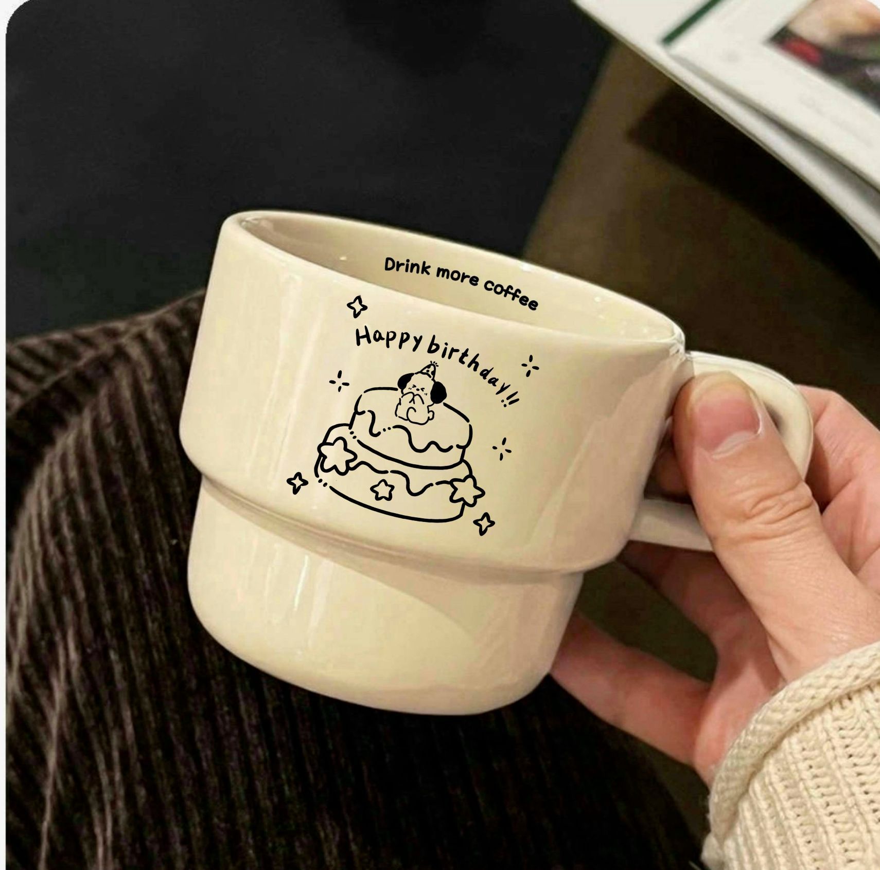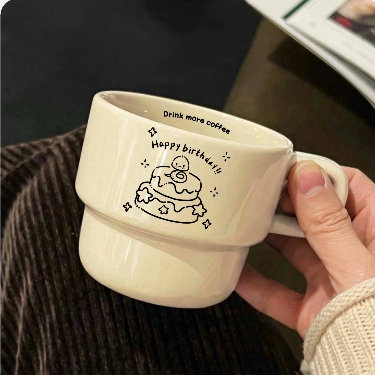 Ins 스타일 귀여운 세라믹 스태킹 컵 머그잔 아침 우유 컵 커플 커피 컵 선물 컵 백자