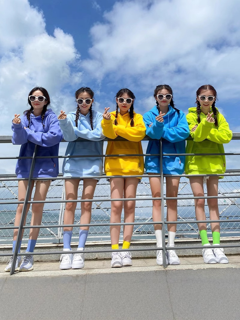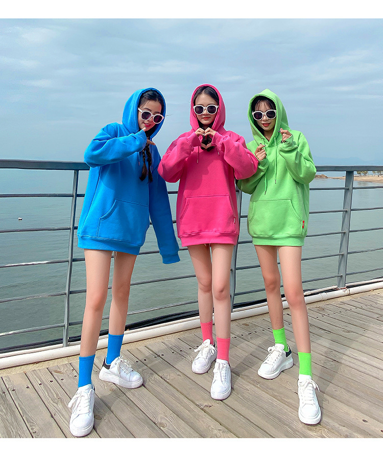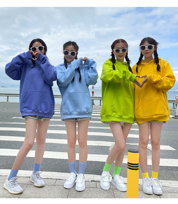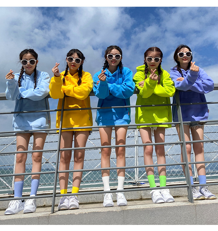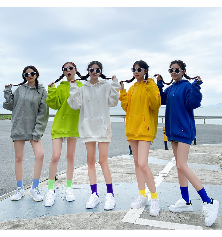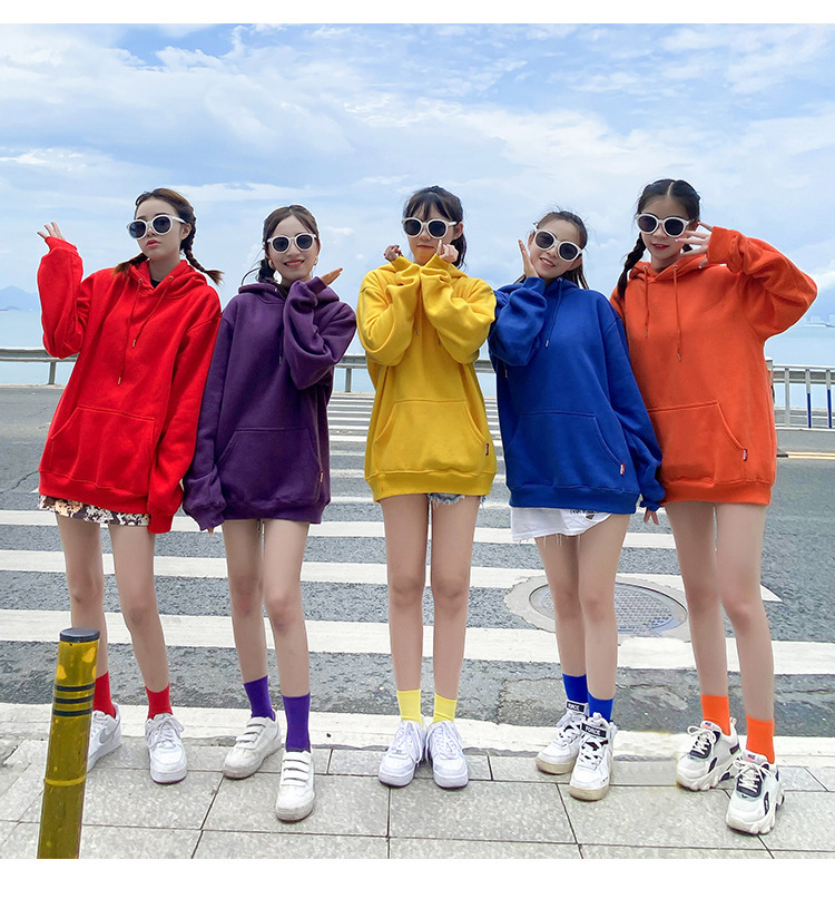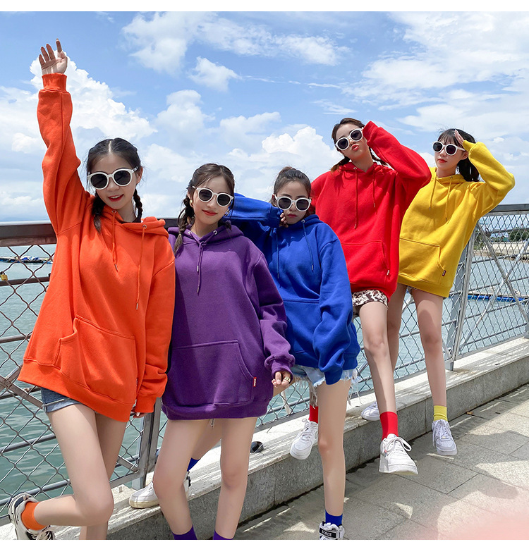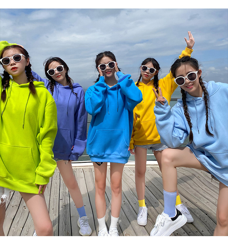 캔디 컬러 자매 커플 느슨한 후드 솔리드 컬러 스웨터 여성 클래스 원피스 여자 친구 원피스 그룹 여행 사진 자켓스토어 가기