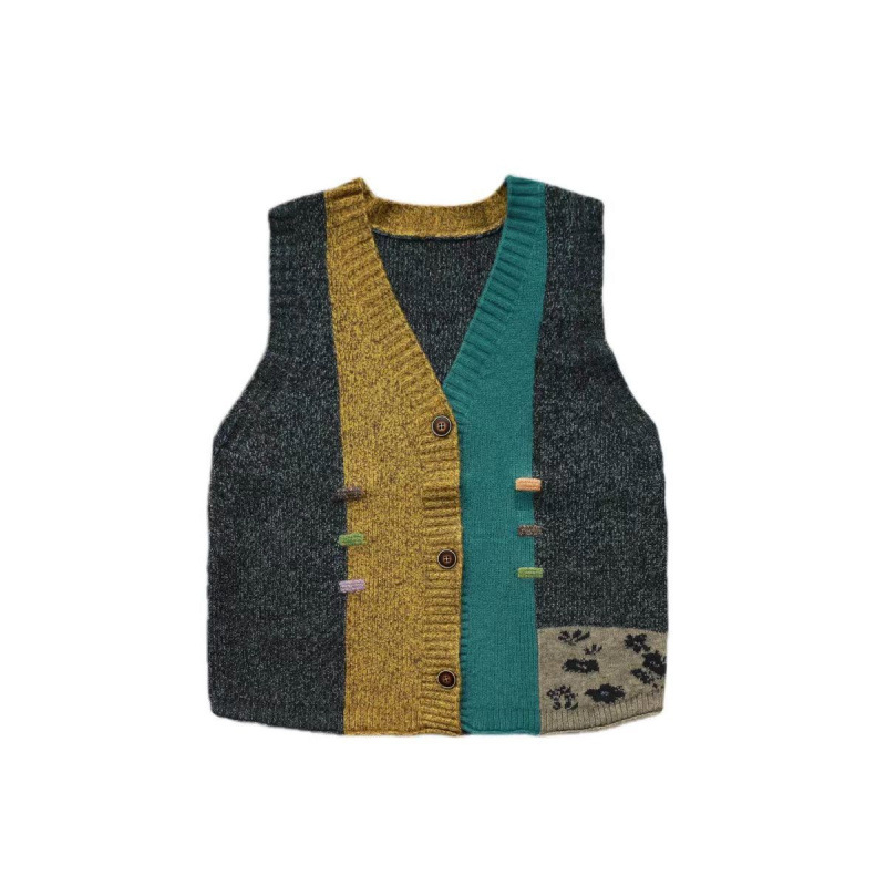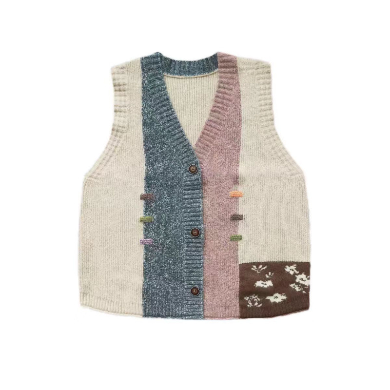 민족 스타일 빈티지 조끼 니트웨어 여성 패치 워크 조끼 최고의 대학 스타일 루즈 스택 짧은 웨이스트 코트 스웨터