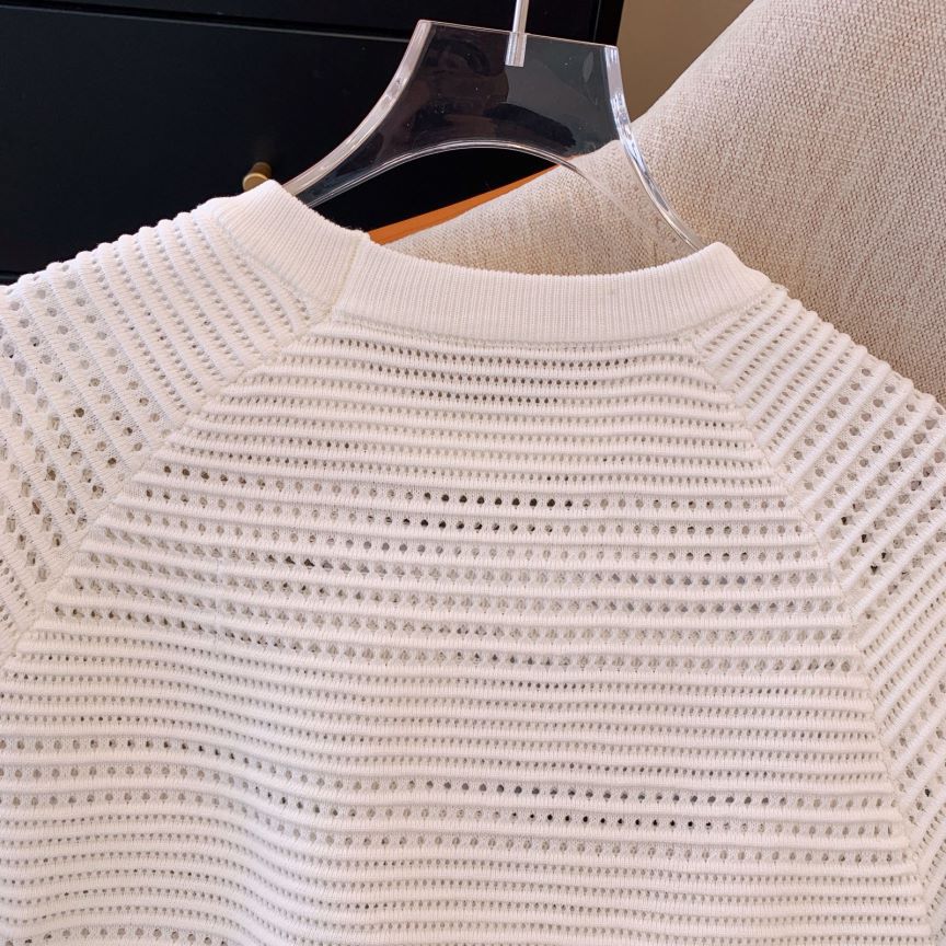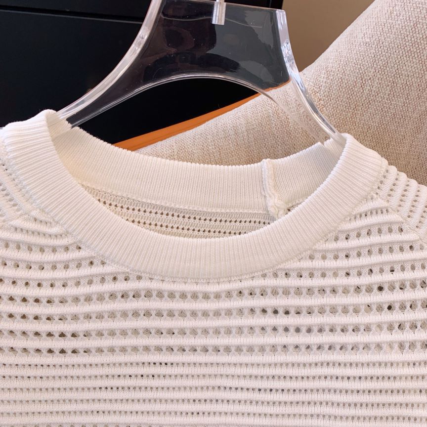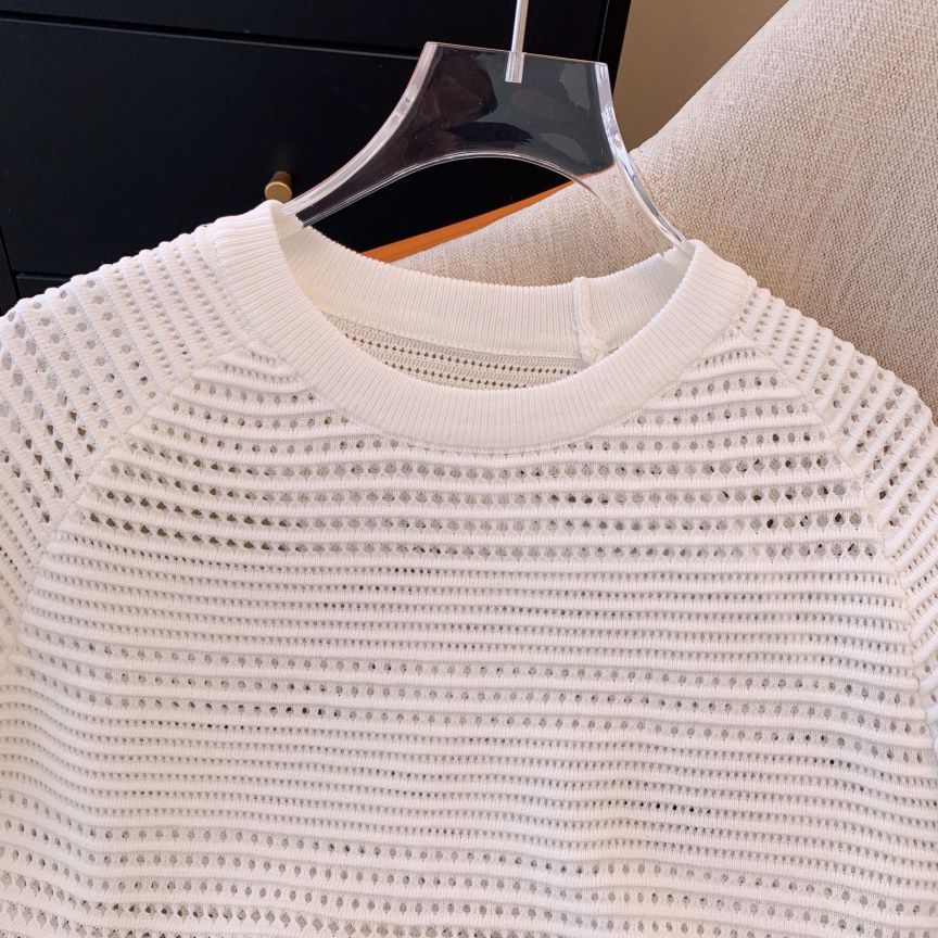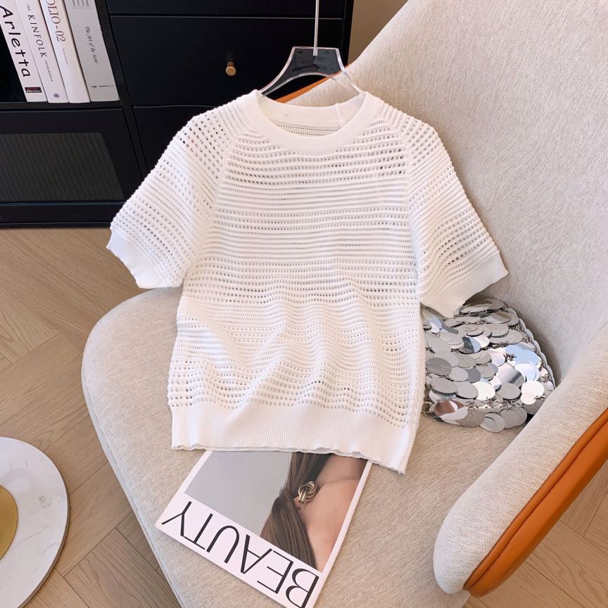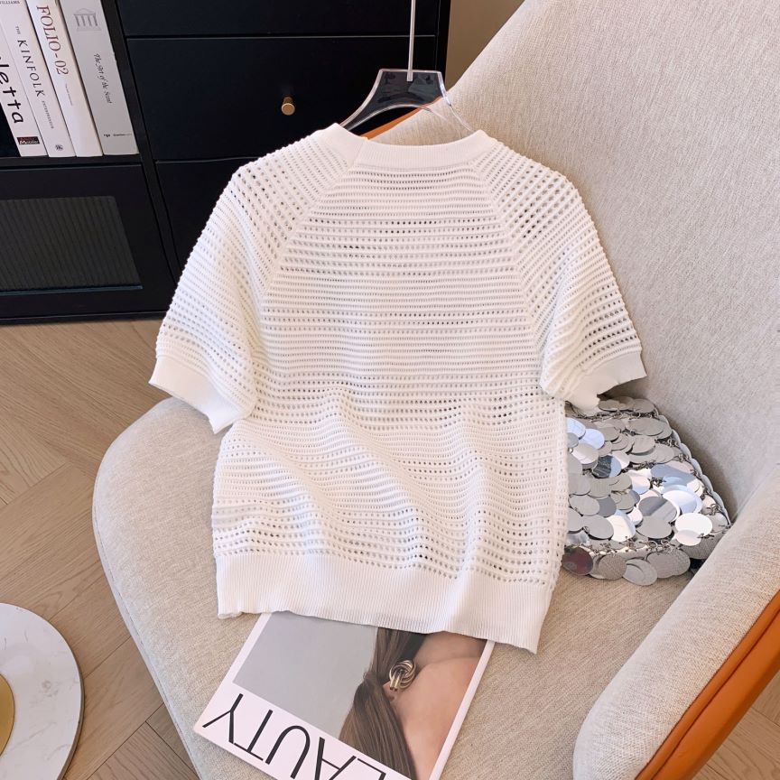봄과 여름 2025 새로운 프랑스 고급 중공업 크로 셰 뜨개질 할로우 니트 셔츠 탑 캐주얼 반팔 티셔츠 여성용 여름스토어 가기