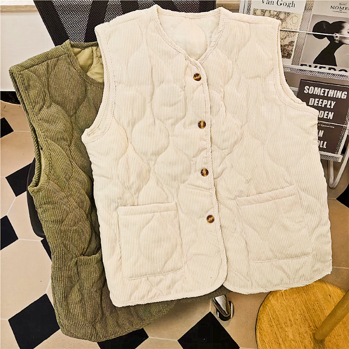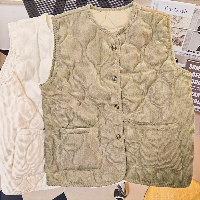 리얼 샷 재고 코튼 의류 작은 조끼 재킷 여성 가을 겨울 한국 스타일 외부 조끼 코튼 코튼 패딩 재킷 민소매스토어 가기