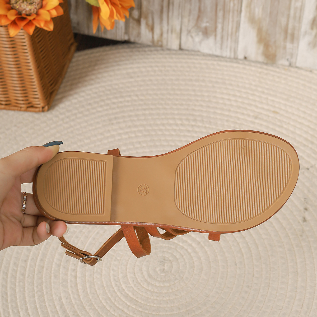 대외 무역 여성 샌들 플러스 사이즈 2025 새로운 스타일 통 레트로 버클 플랫 크로스 스트랩 비치 여성 신발 샌들