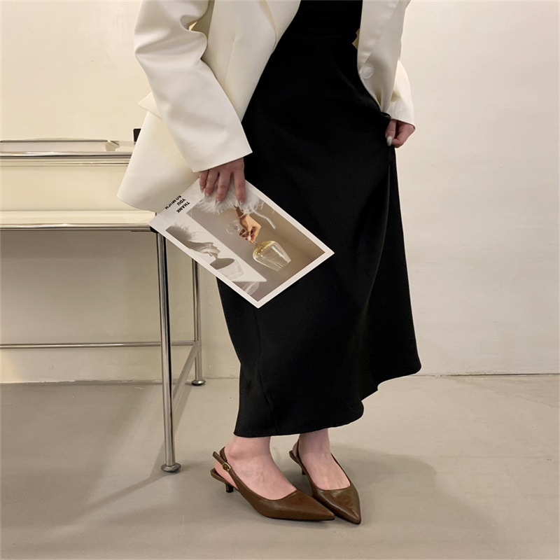 하이힐 싱글 레이어 신발 여성 신발 2025 새로운 우아한 기질 얇은 힐 통근 빈 샌들 프렌치 뾰족한 발가락 실버스토어 가기