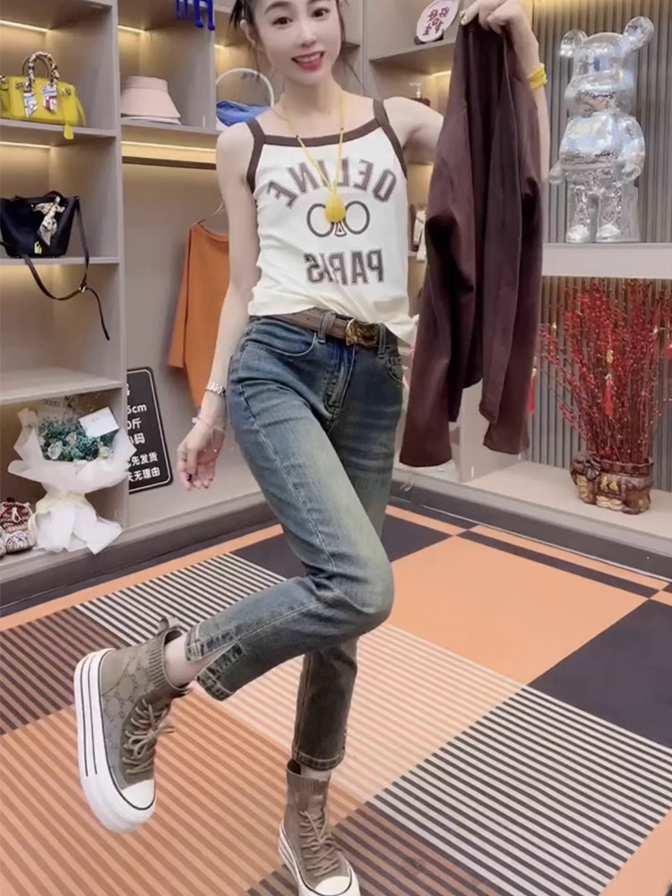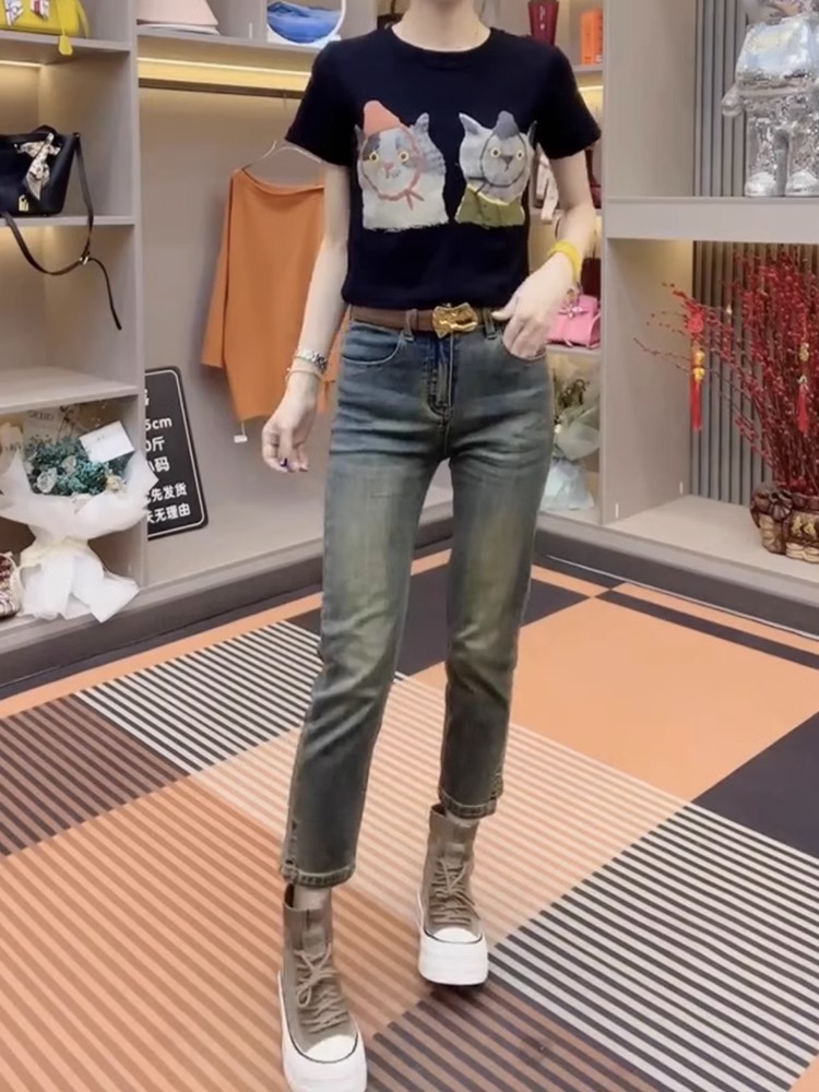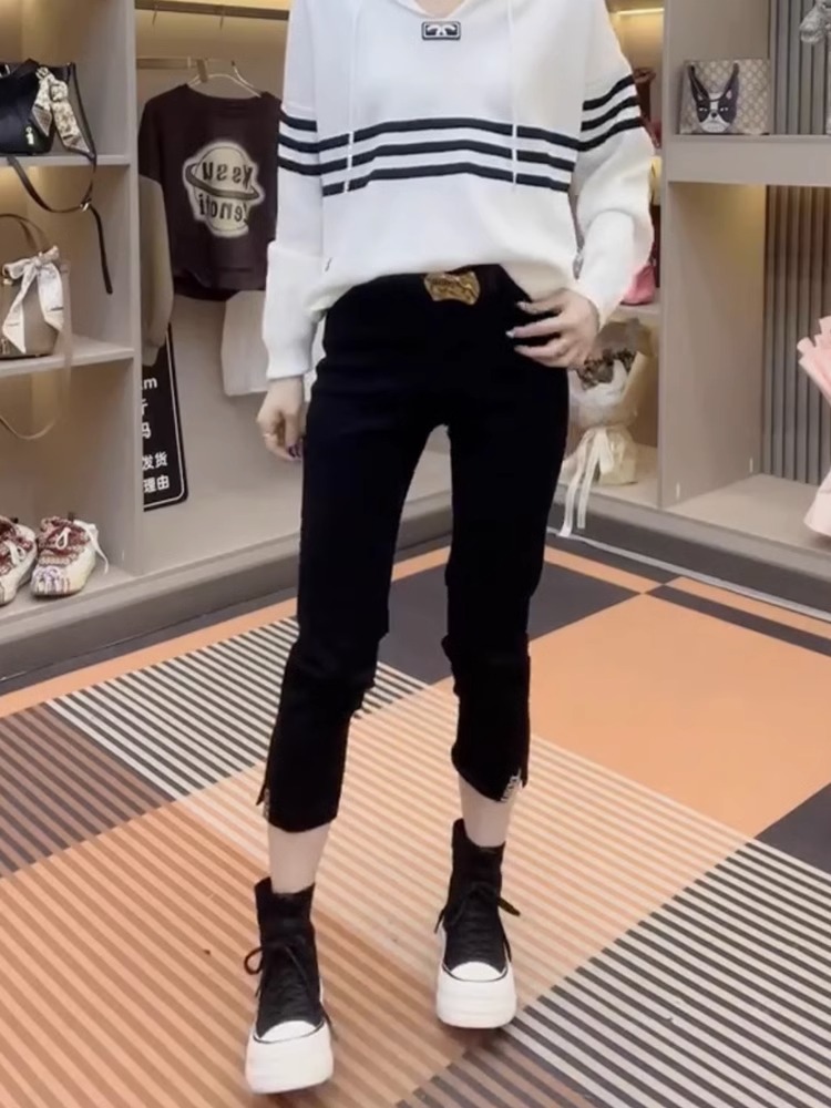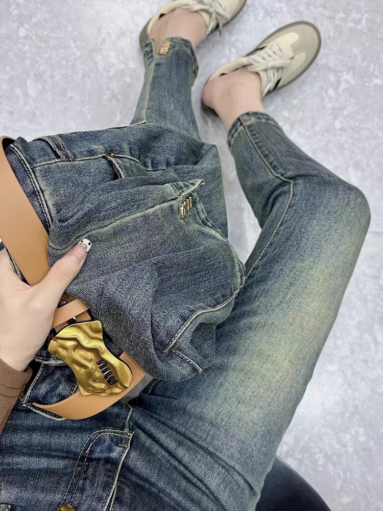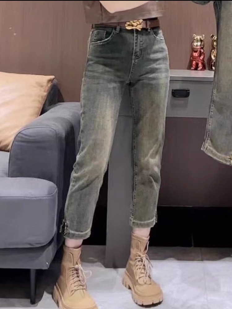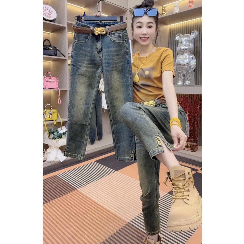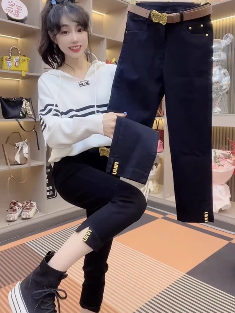 플러스 사이즈 높은 허리 탄성 분할 자른 청바지 여성의 봄 통통한 자매 mm 배 모양의 몸 슬리밍 스트레이트 파이프 바지스토어 가기
