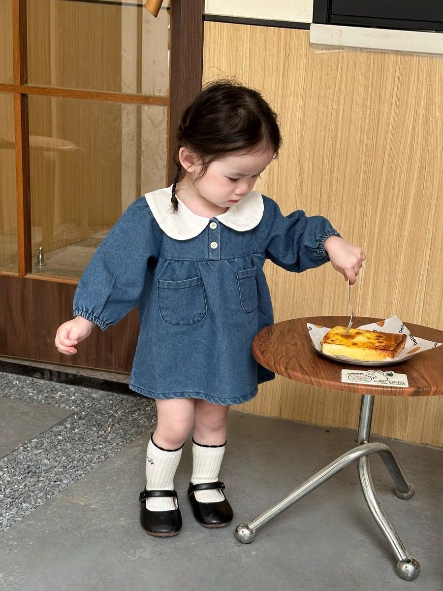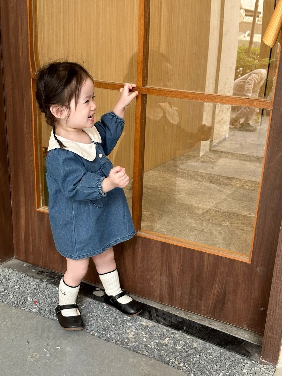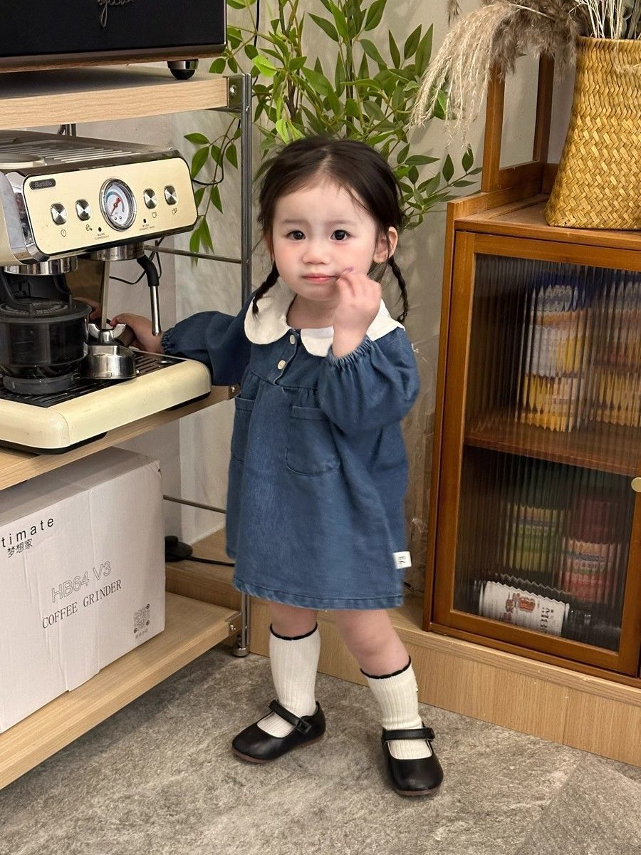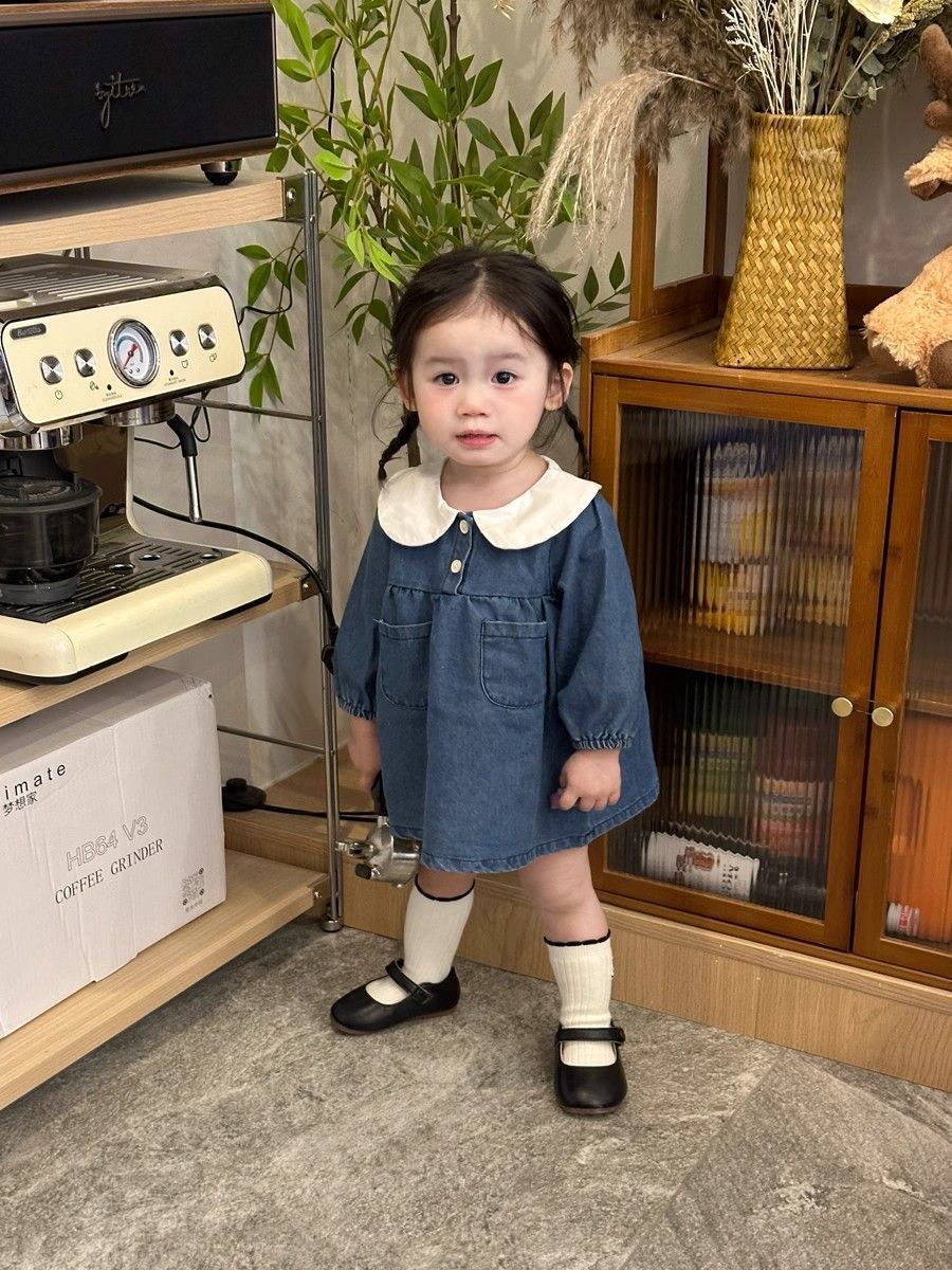 아기 귀여운 인형 긴팔 부드러운 데님 드레스 봄 가을 스타일 여자아이 한국 스타일 공주 드레스스토어 가기