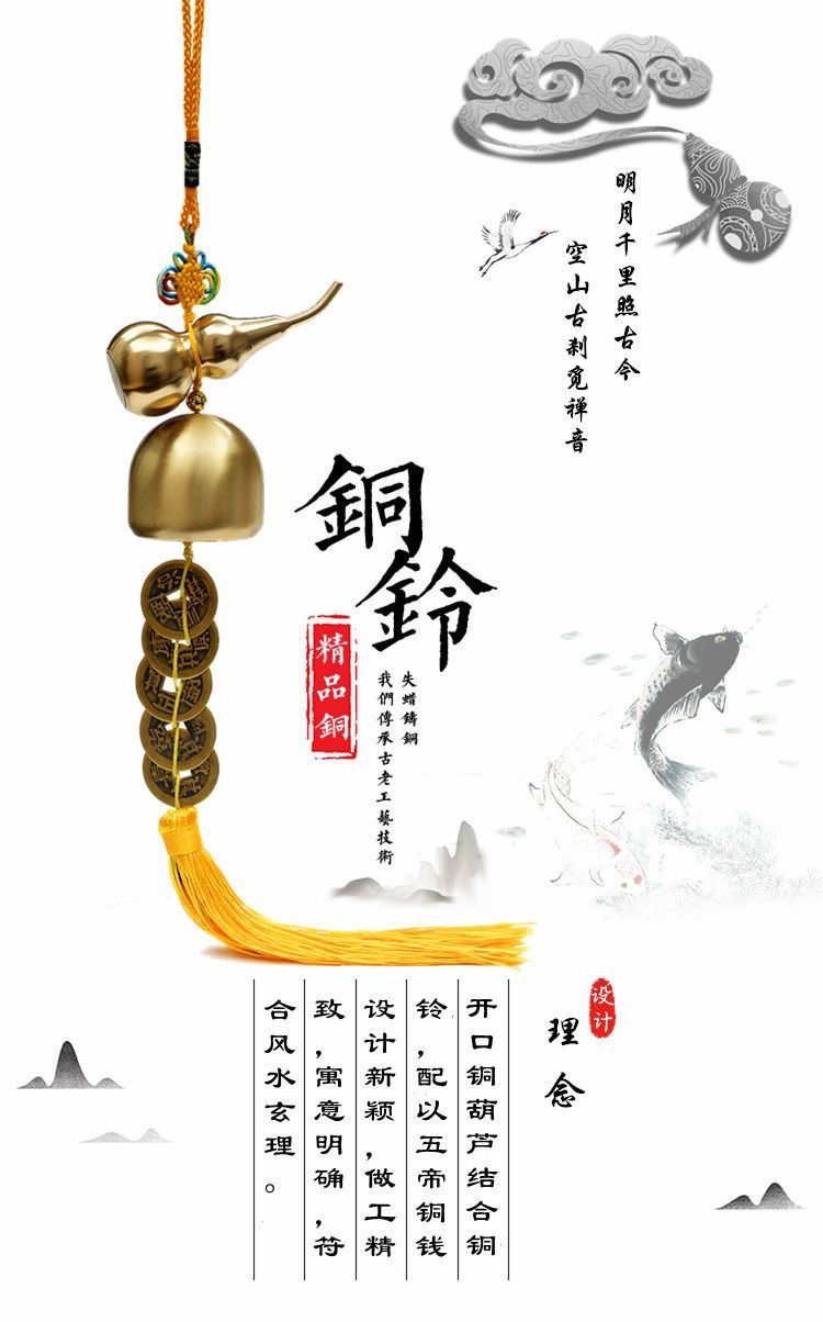 오픈 조롱박 광택 다섯 황제 순수 구리 벨 바람 벨 펜던트 가게 장식 홈 액세서리 무료 배송