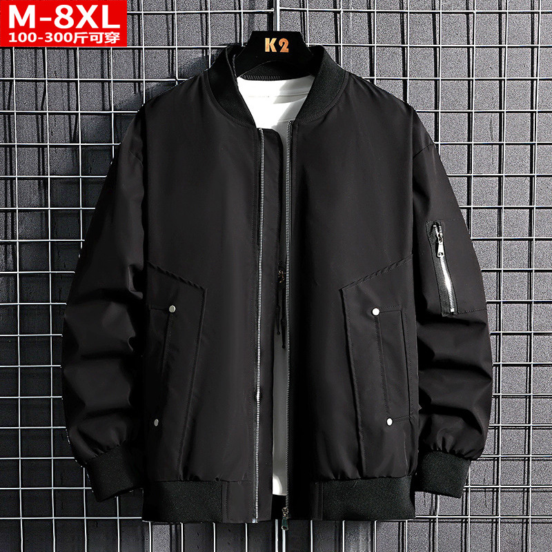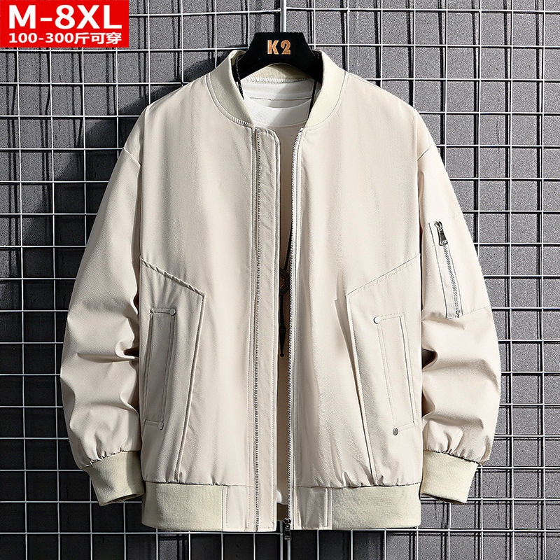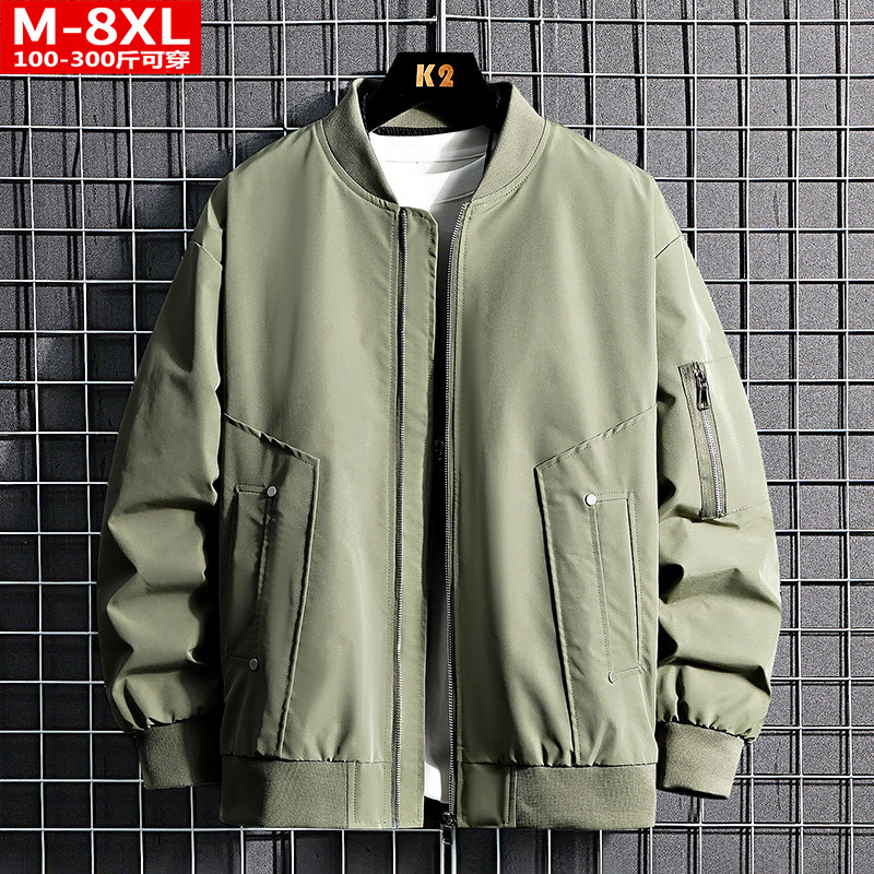 봄과 가을 트렌디 한 홍콩 스타일 남자 잘 생긴 야구 칼라 폭격기 재킷 뚱뚱한 남자 플러스 사이즈 느슨한 캐주얼 재킷
