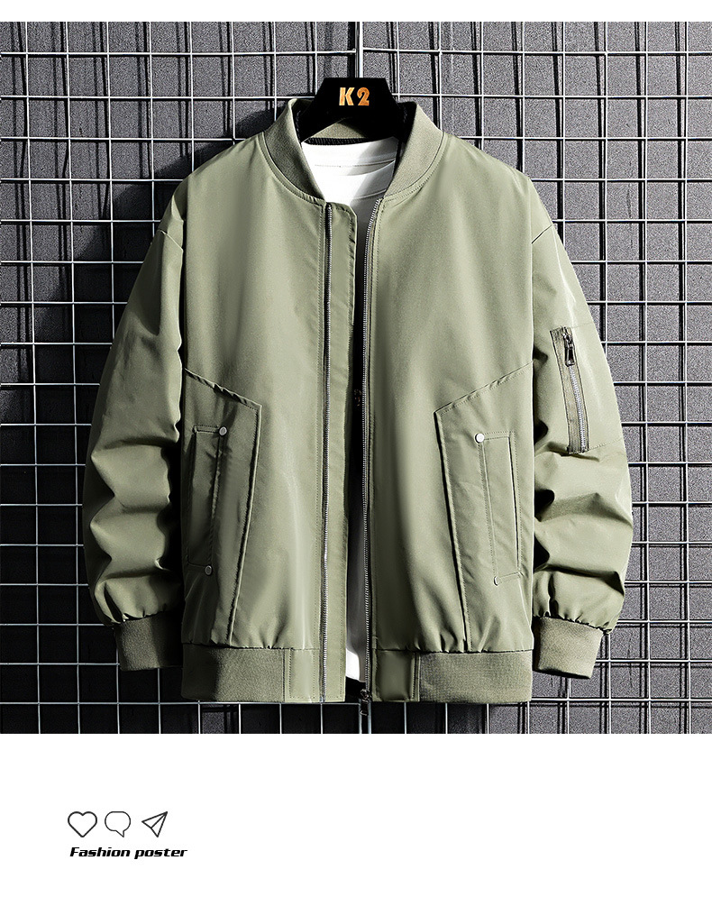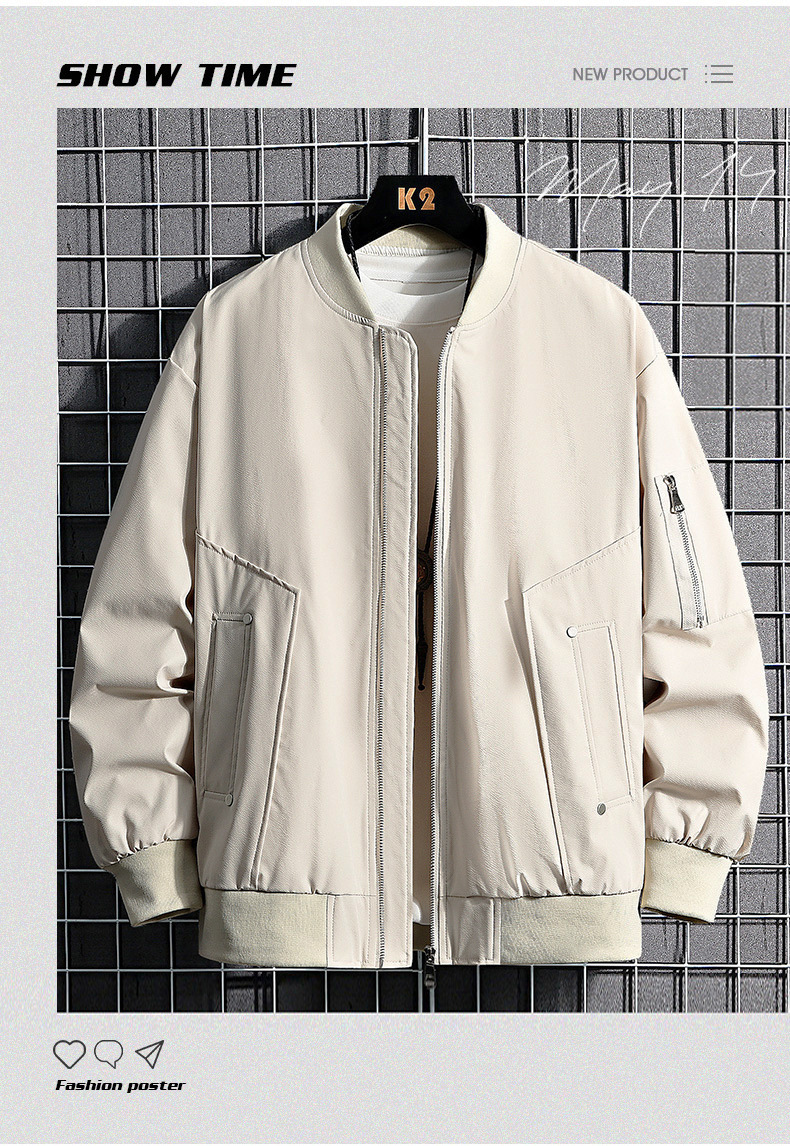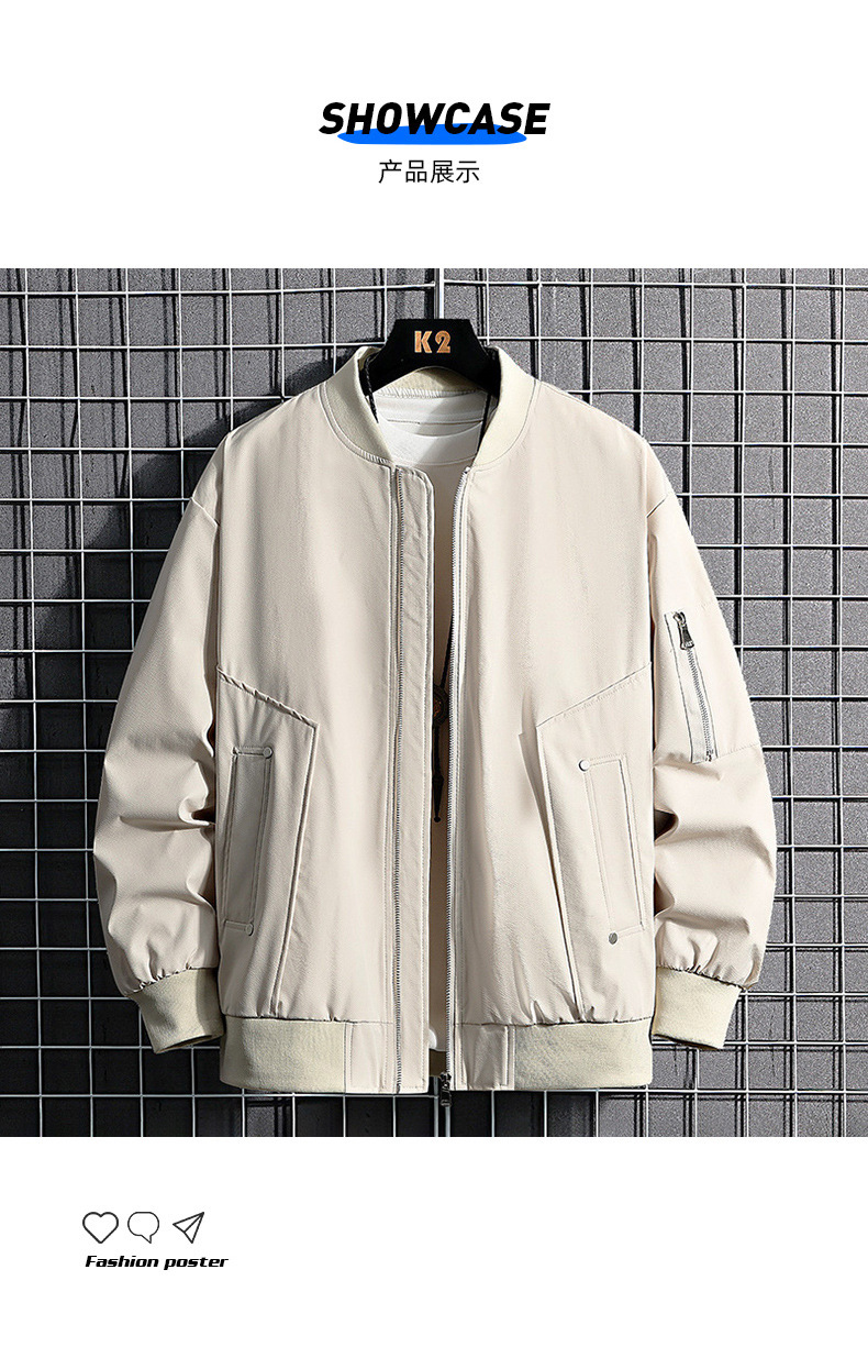 봄과 가을 트렌디 한 홍콩 스타일 남자 잘 생긴 야구 칼라 폭격기 재킷 뚱뚱한 남자 플러스 사이즈 느슨한 캐주얼 재킷스토어 가기