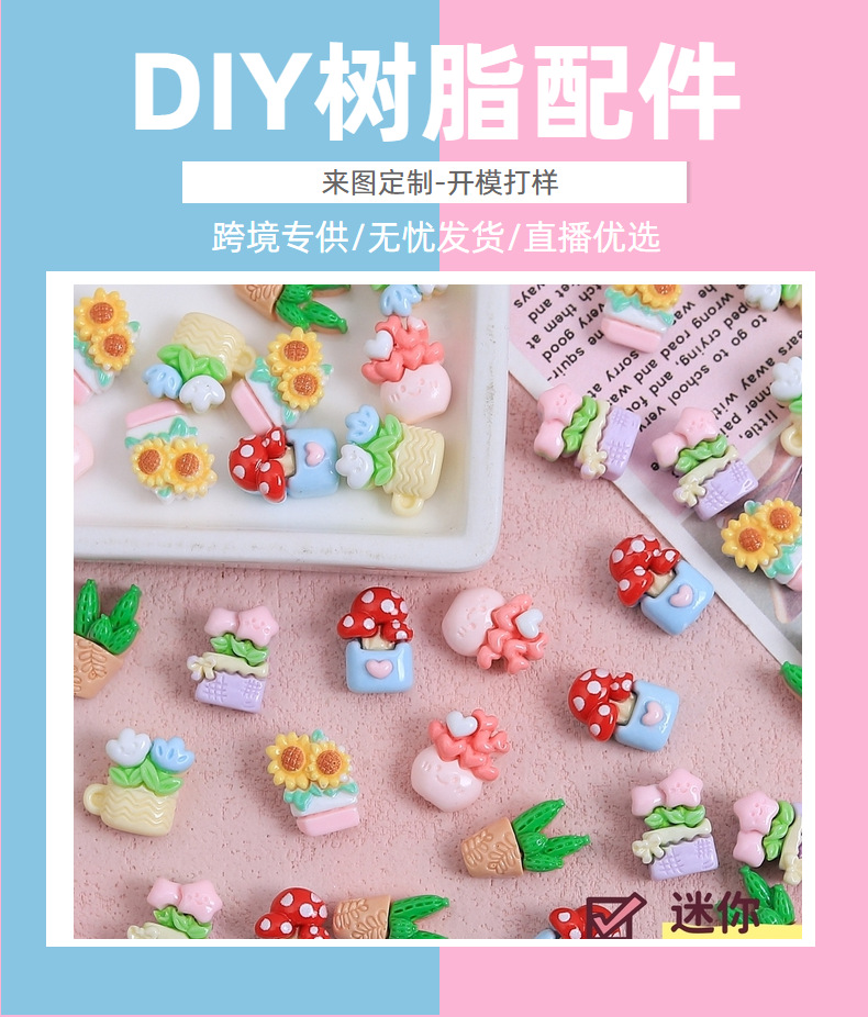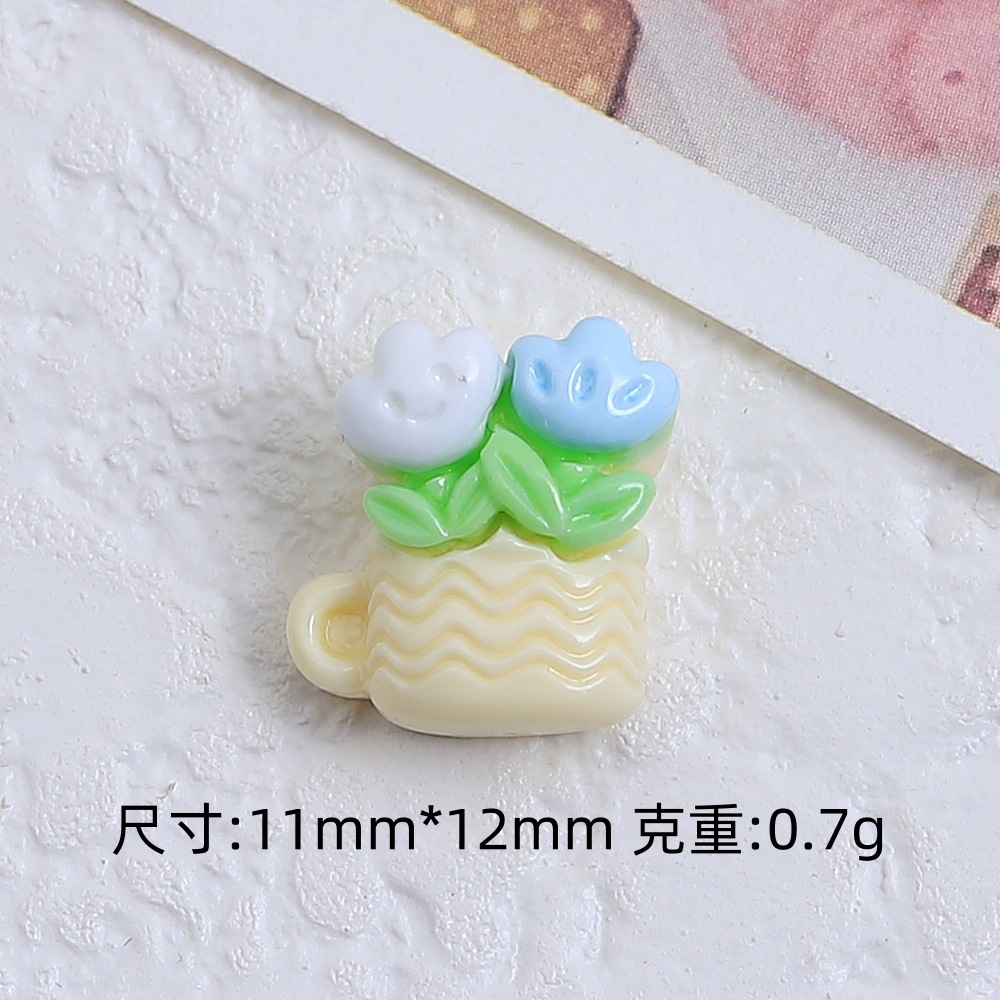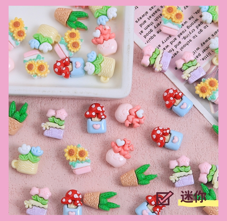 미니 쌍둥이 꽃 화분 만화 크림 접착제 DIY 수제 머리핀 냉장고 스티커 소재 가방 수지 액세서리 도매