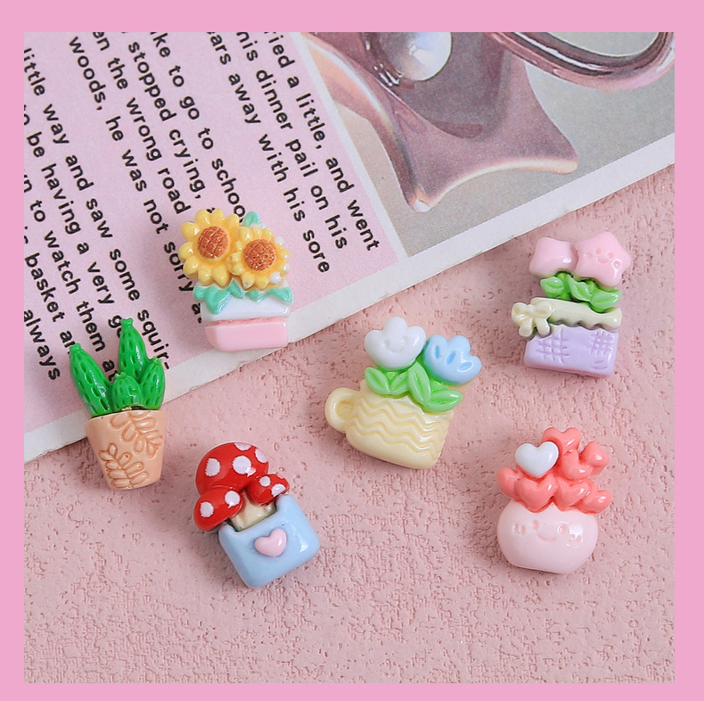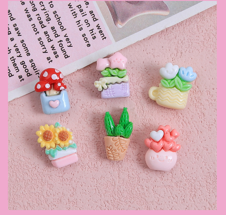 미니 쌍둥이 꽃 화분 만화 크림 접착제 DIY 수제 머리핀 냉장고 스티커 소재 가방 수지 액세서리 도매스토어 가기