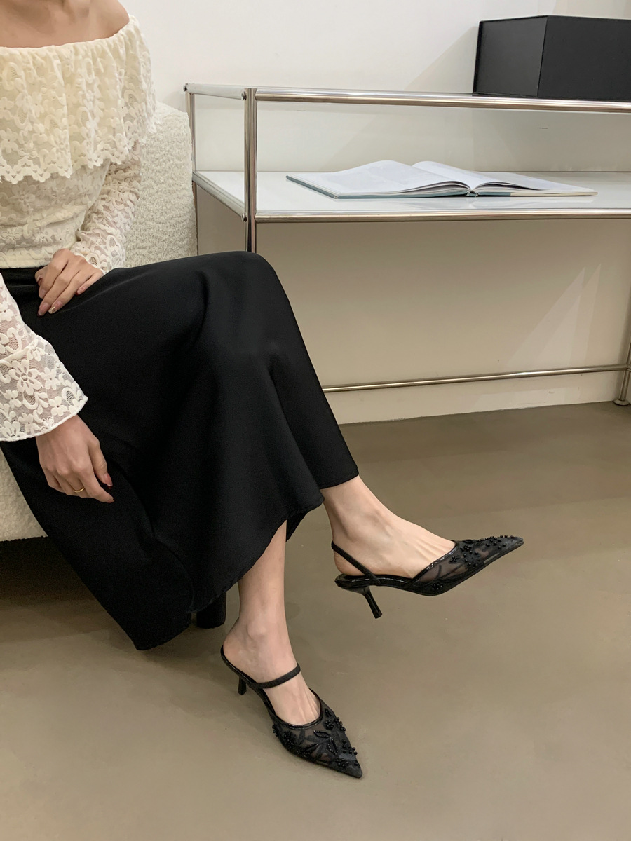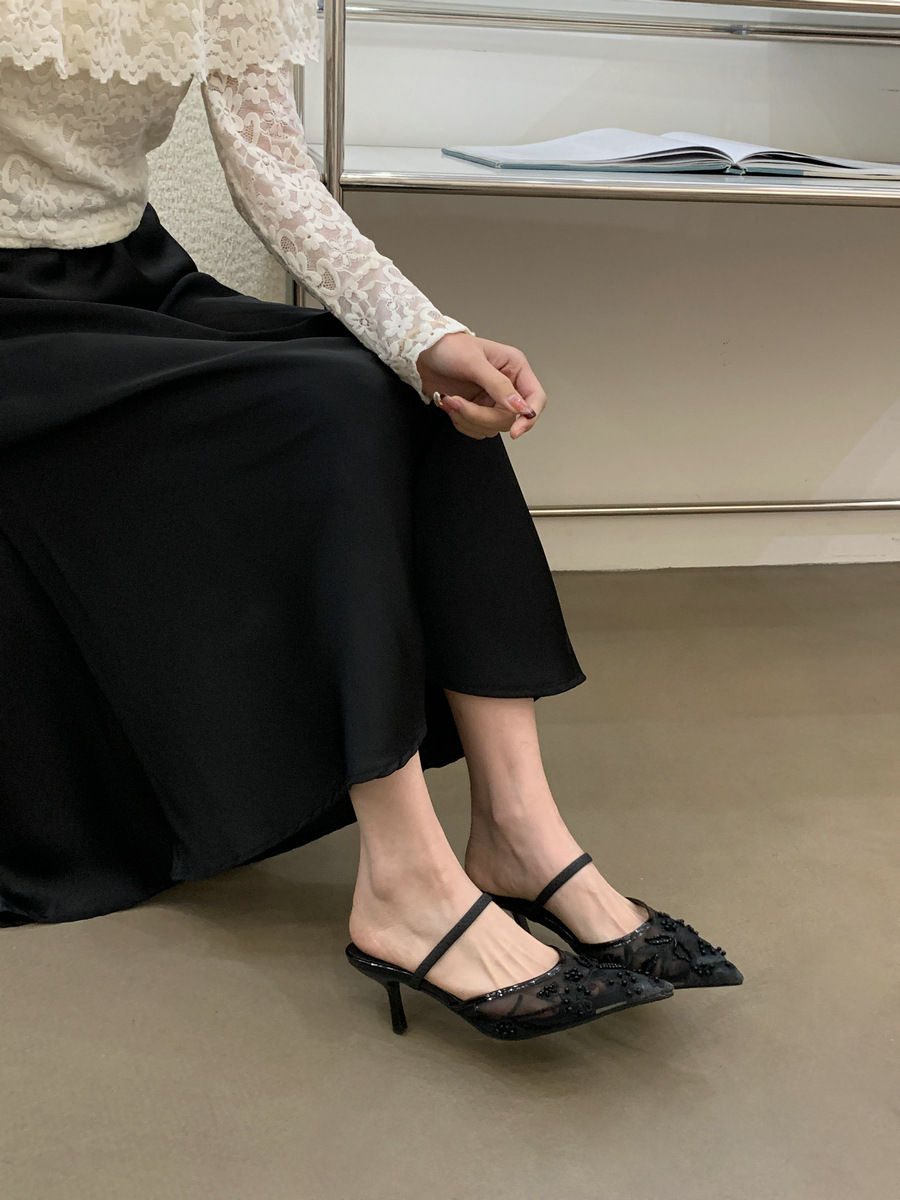 웨딩 슈즈 틈새 하이 엔드 느낌 Baotou 샌들 2025 새로운 도착 하이힐 하이힐 슈즈 (메쉬 포인트 포함)스토어 가기