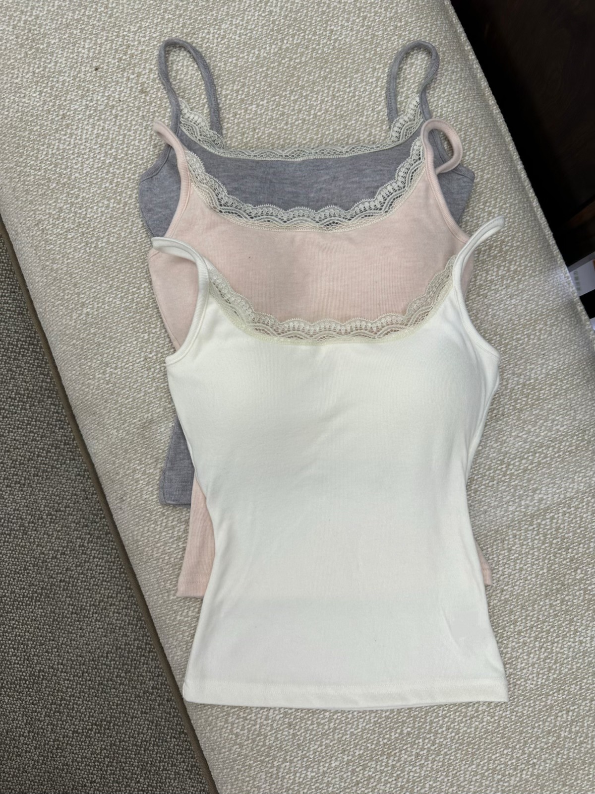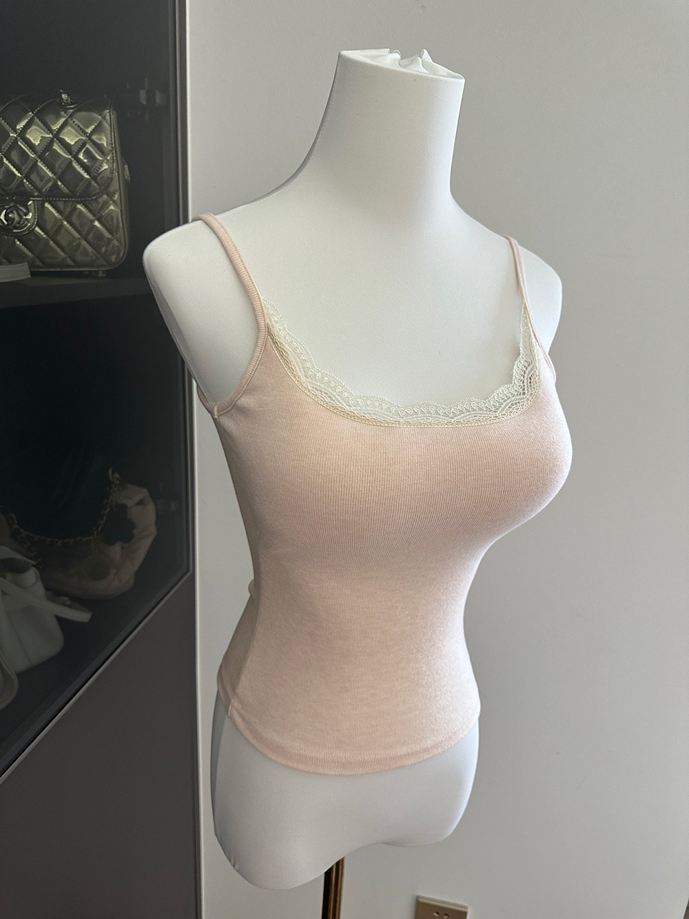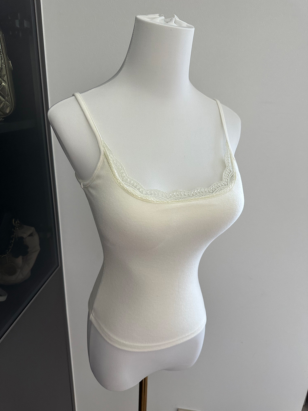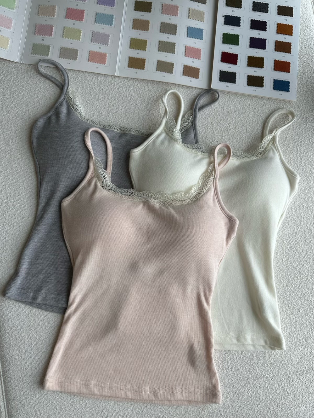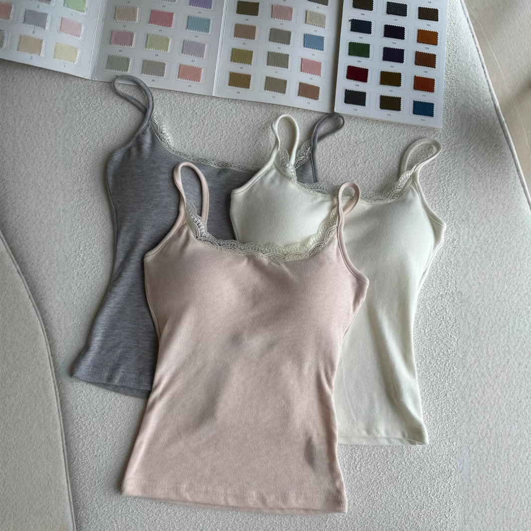 三色蕾丝拼接带胸垫吊带/可拆卸