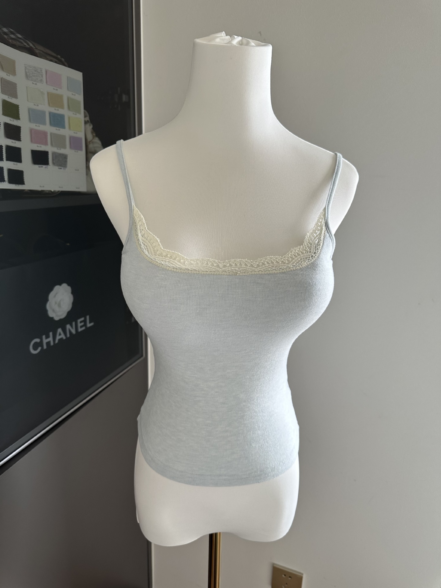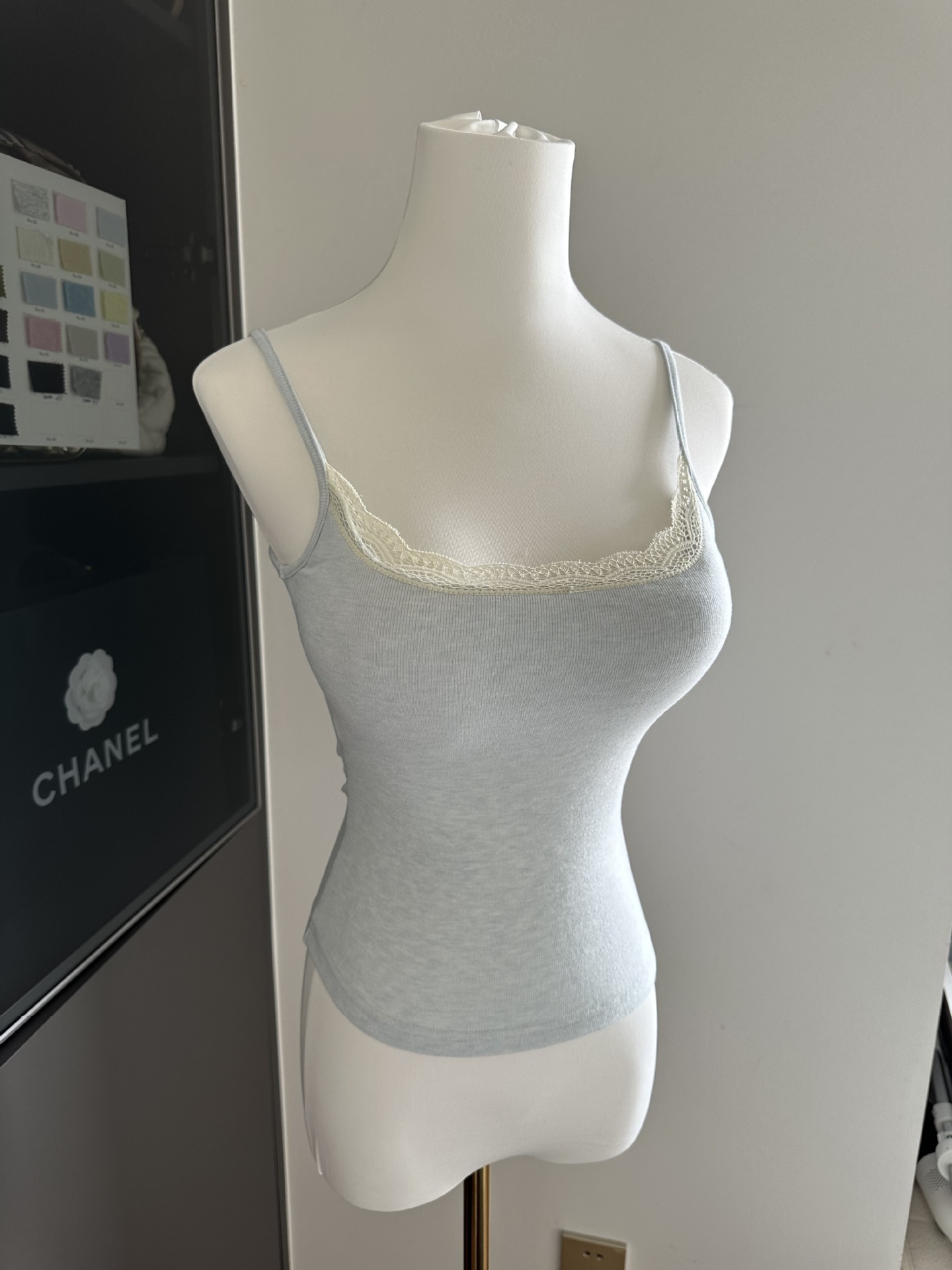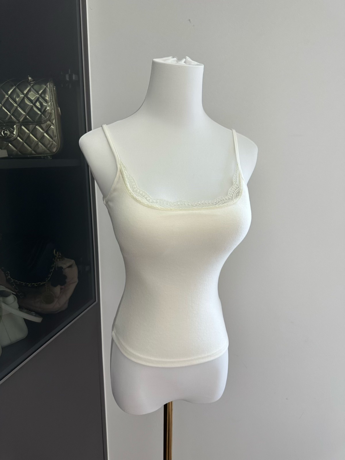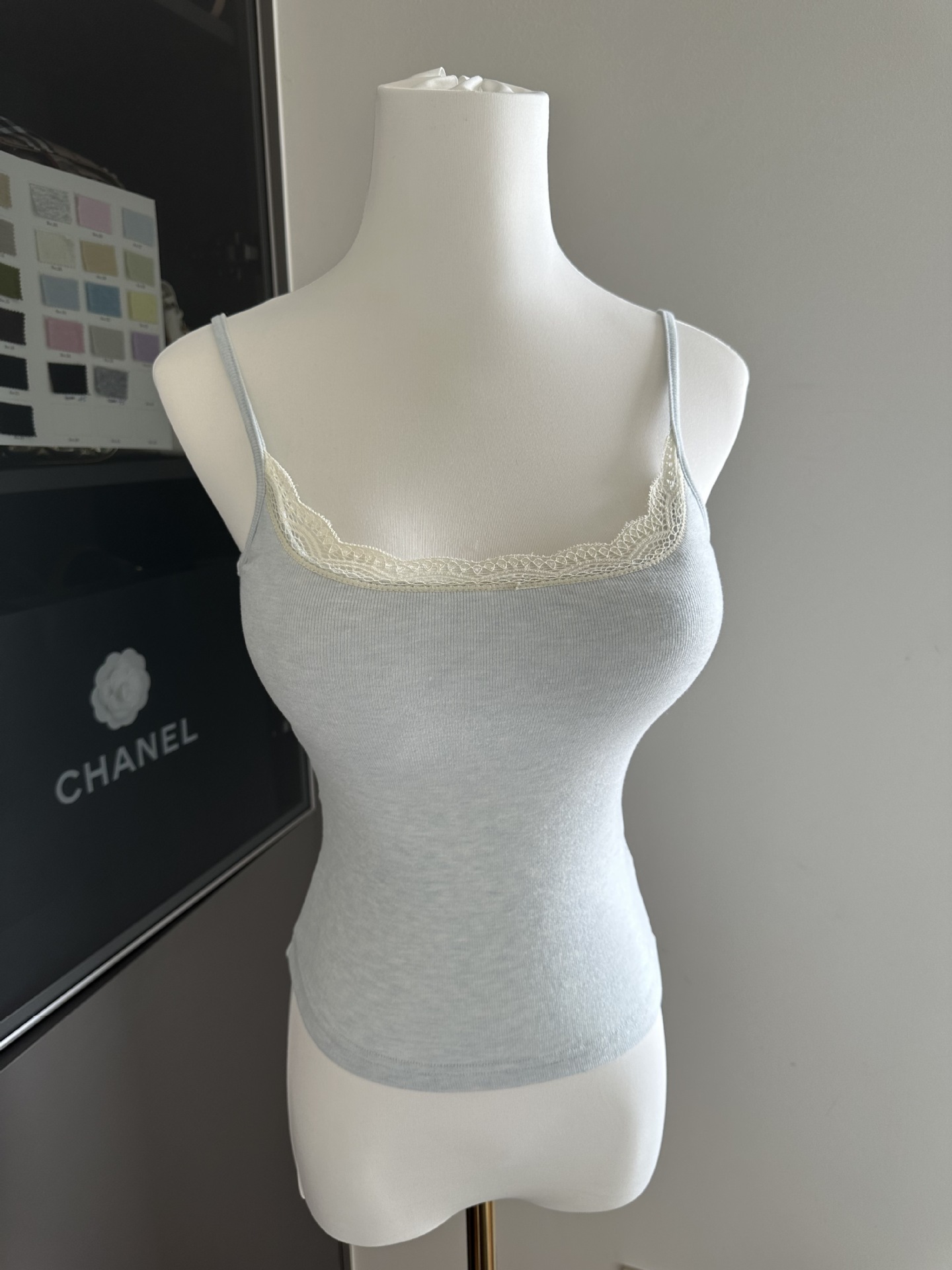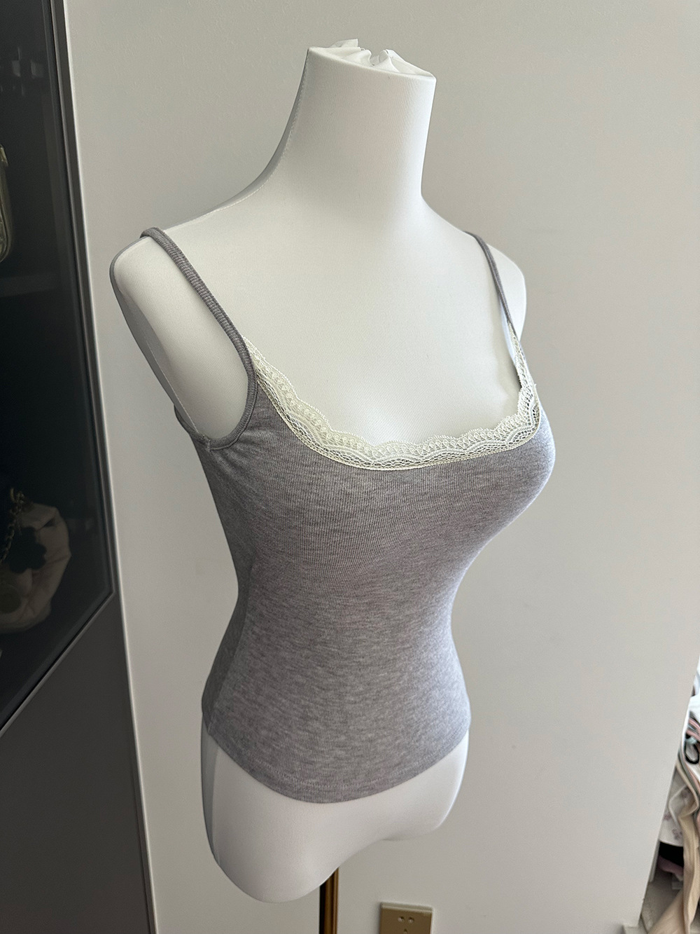 三色蕾丝拼接带胸垫吊带/可拆卸