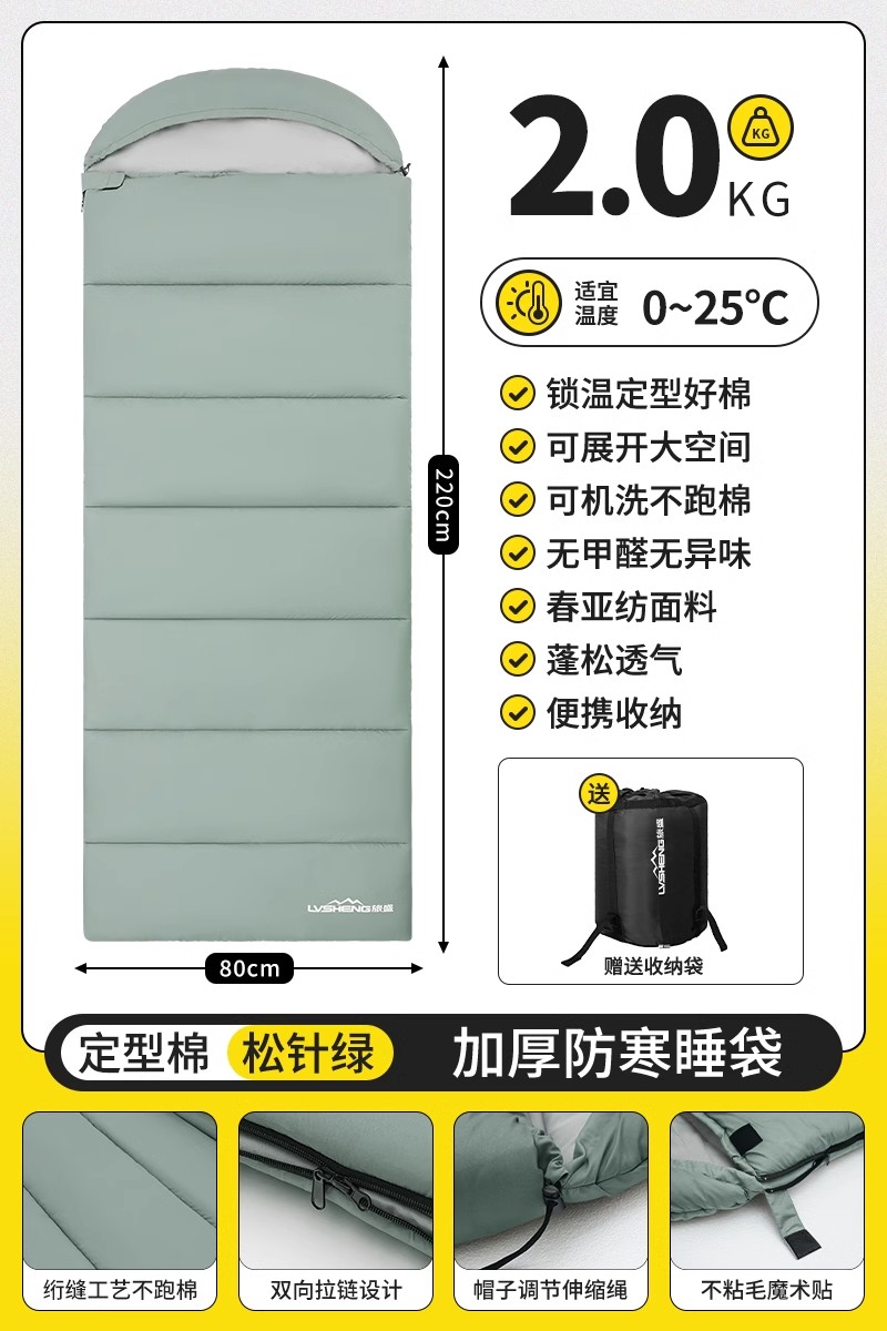 슬리핑 백 성인 야외 캠핑 점심 시간 휴식 사무실 의무 슬리핑 백을 위해 두꺼운 감기 방지 휴대용 싱글 코튼 슬리핑 백스토어 가기