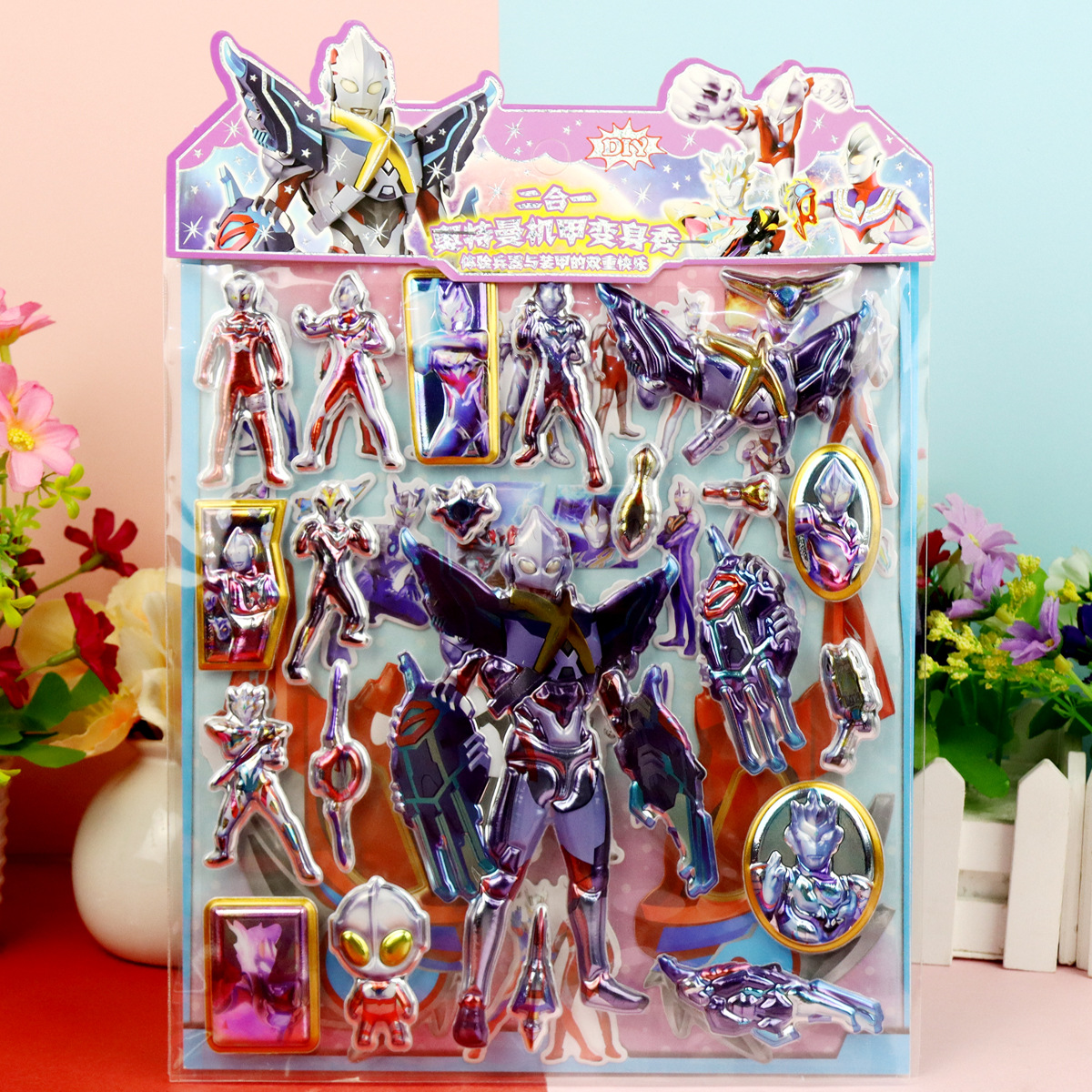 어린이 만화 스티커 더블 레이어 3 차원 재미 릴리프 울트라 맨 스티커 무기 검 장난감 괴물 버블 스티커