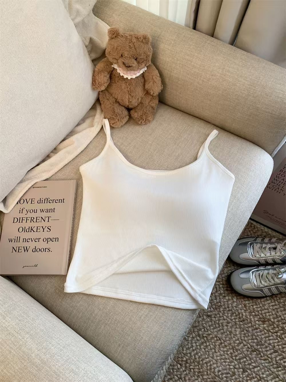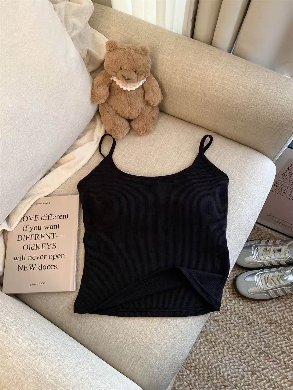 미국 스타일의 뜨거운 소녀 가슴 패드베이스 외부 착용 조정 가능한 어깨 스트랩 Camisole 여성의 여름 인테리어 착용 슬림 핏 탑