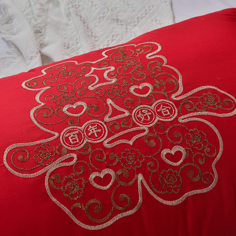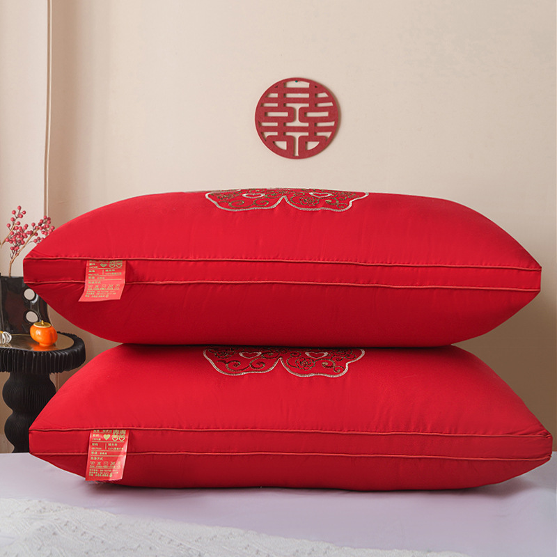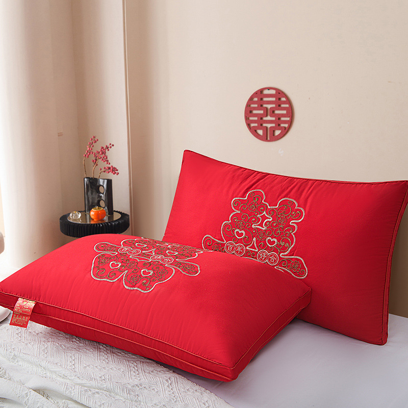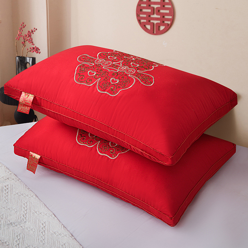• 면 자수 깃털 실크 베개 나비 베개 빨간색 높은 베개