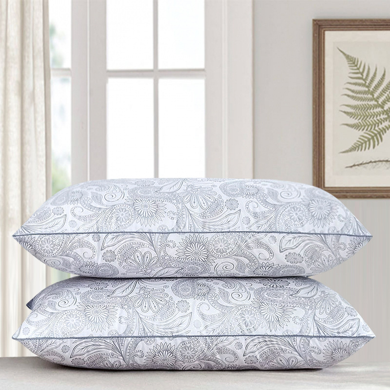 • 면 자수 깃털 실크 베개 나비 베개 회색 중간 베개