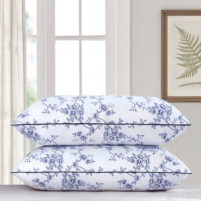 • 브러시드 Huizi 베개 블루 에지 로우 베개