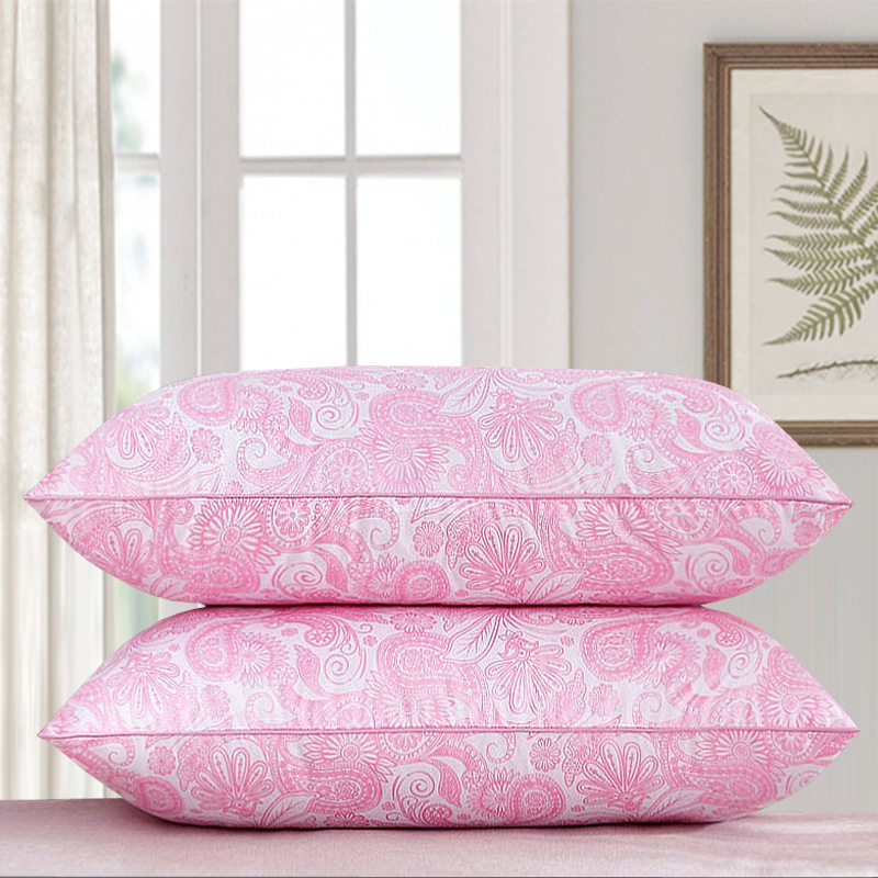 • 면 자수 깃털 실크 베개 나비 베개 핑크 중간 베개