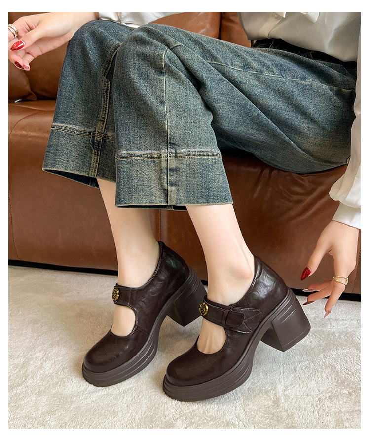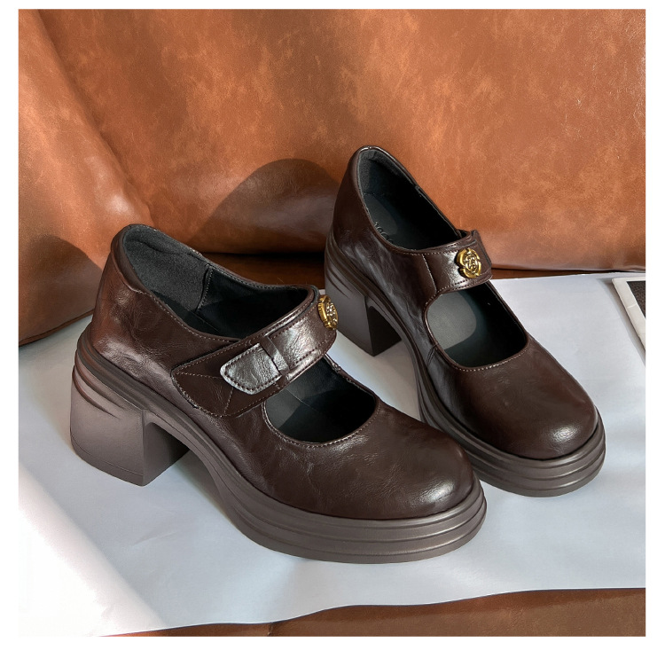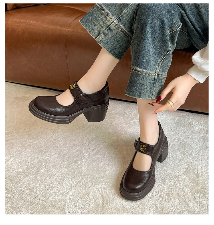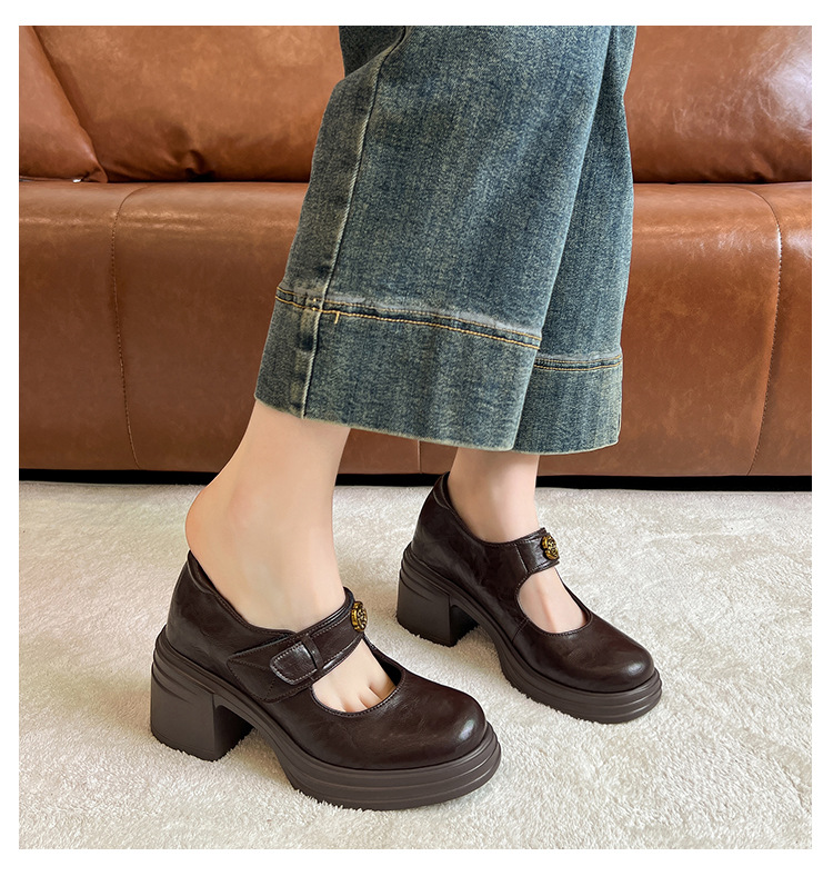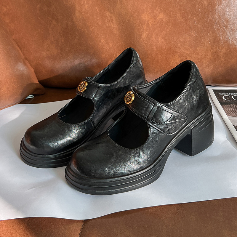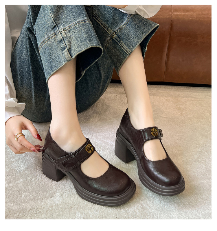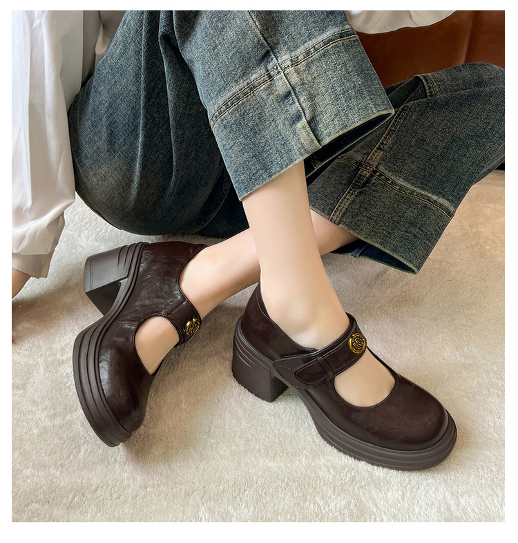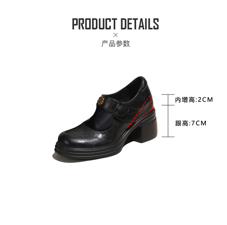 내부 높이 증가 메리 제인 신발 여성용 벨크로 얕은 입 두꺼운 밑창 작은 통근 신발 작은 가죽 신발 스몰 사이즈 323334스토어 가기