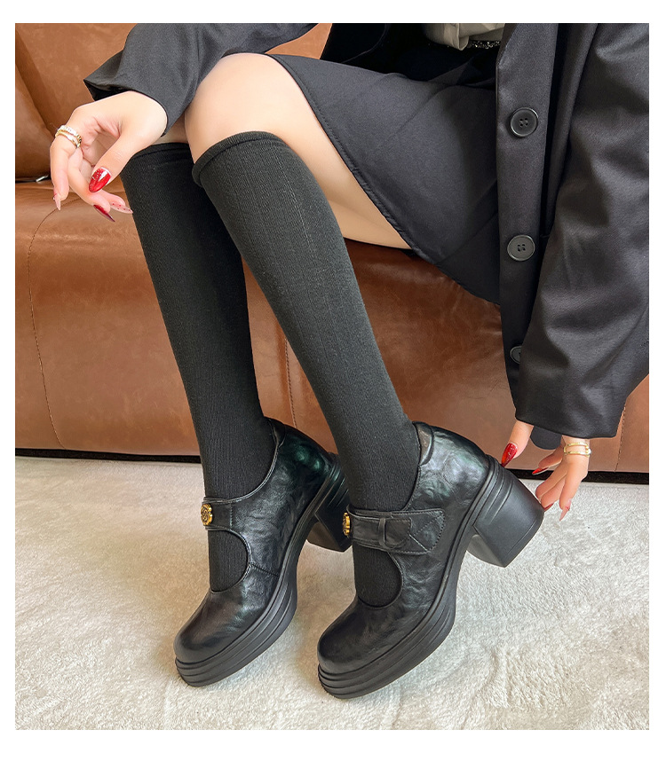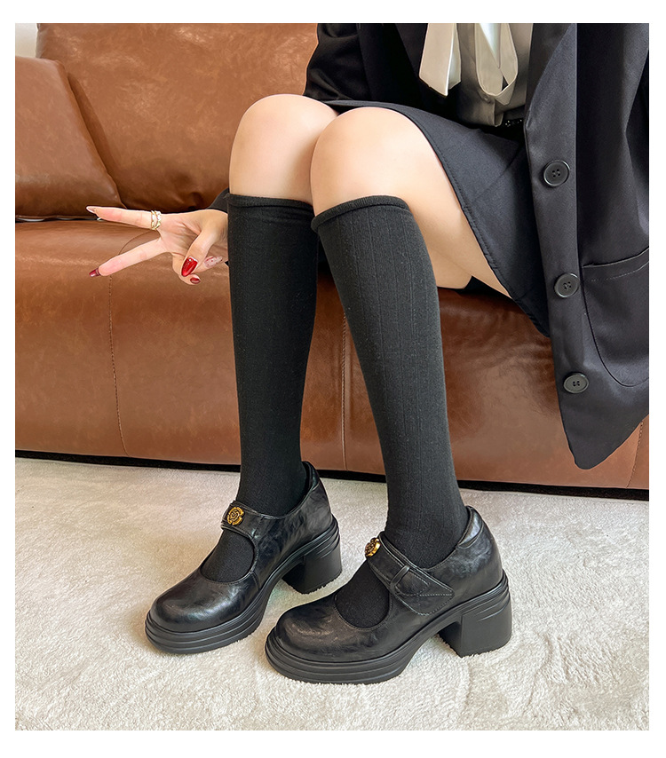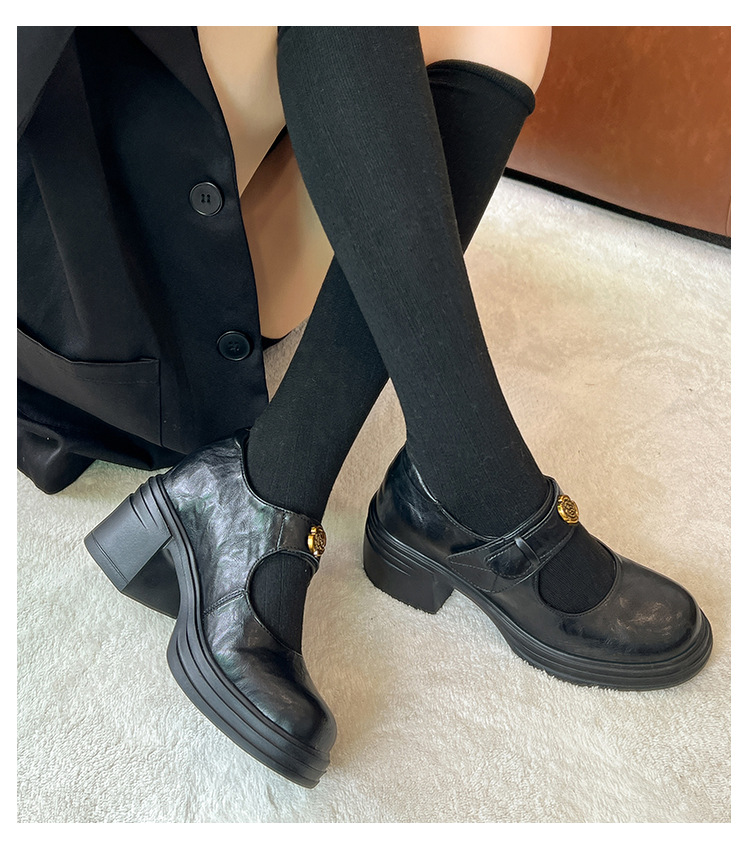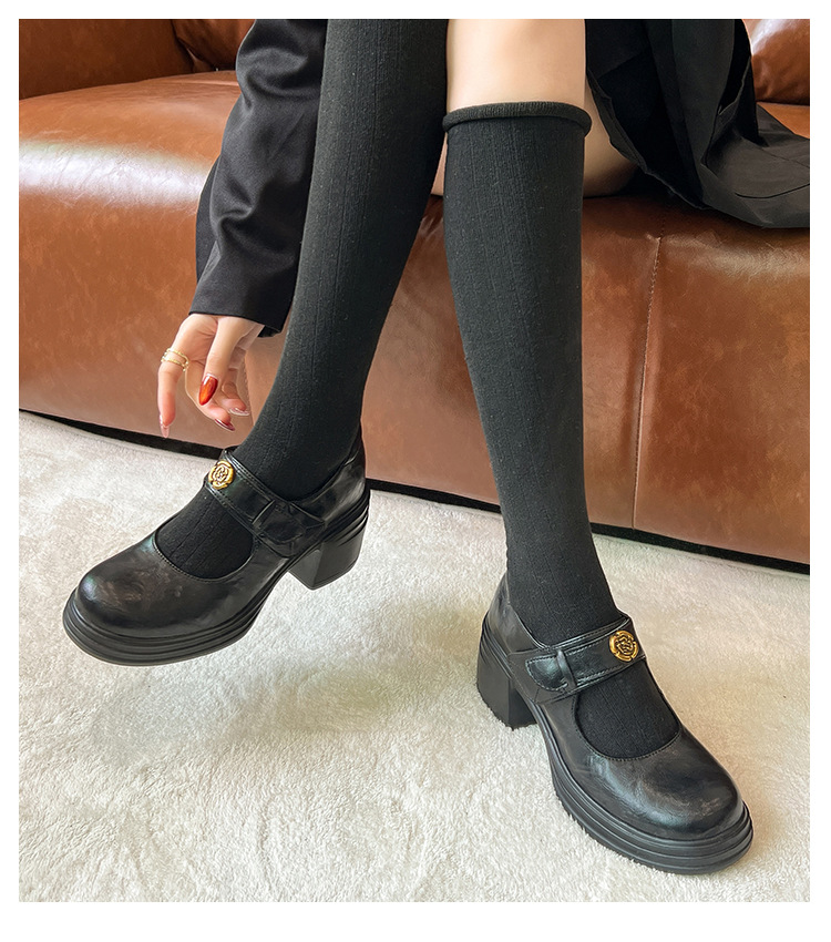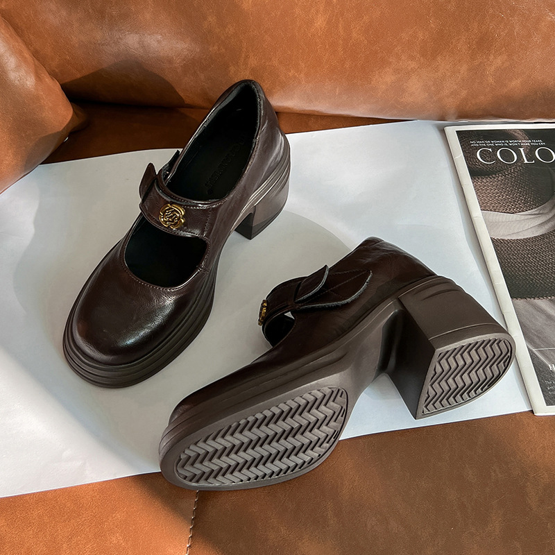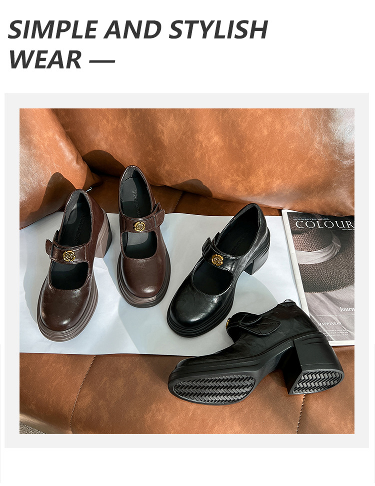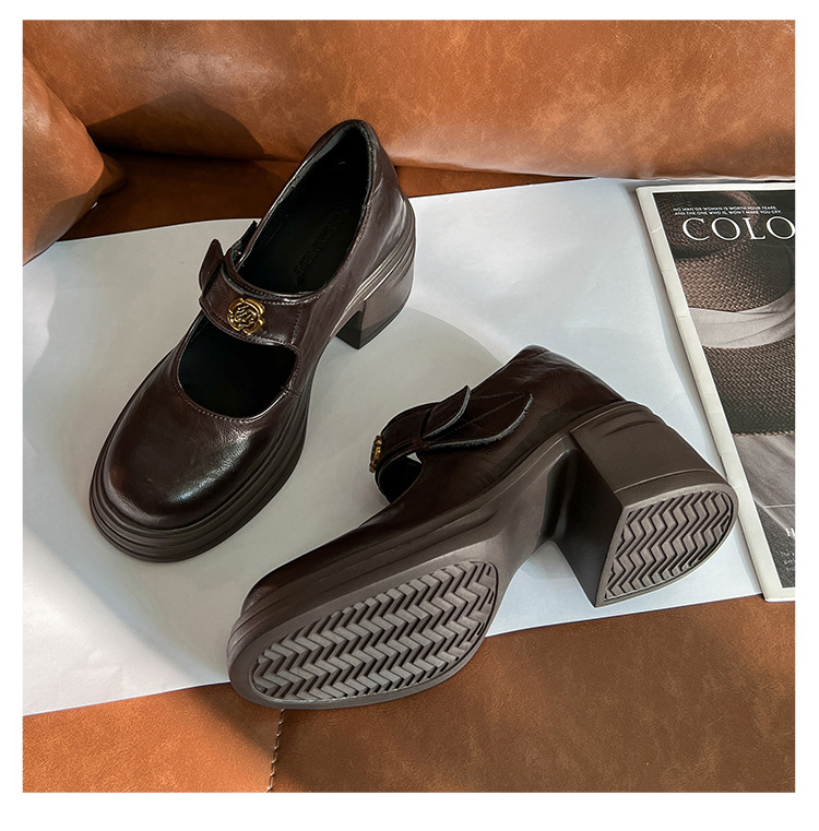 내부 높이 증가 메리 제인 신발 여성용 벨크로 얕은 입 두꺼운 밑창 작은 통근 신발 작은 가죽 신발 스몰 사이즈 323334스토어 가기