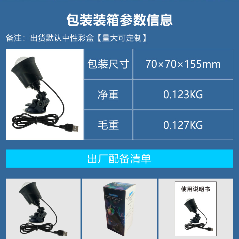 국경 간 다채로운 회전 랜턴 5Vusb 충전식 크리스탈 매직 볼 자동차 분위기 조명 음성 제어 깜박임 디스코 파티스토어 가기